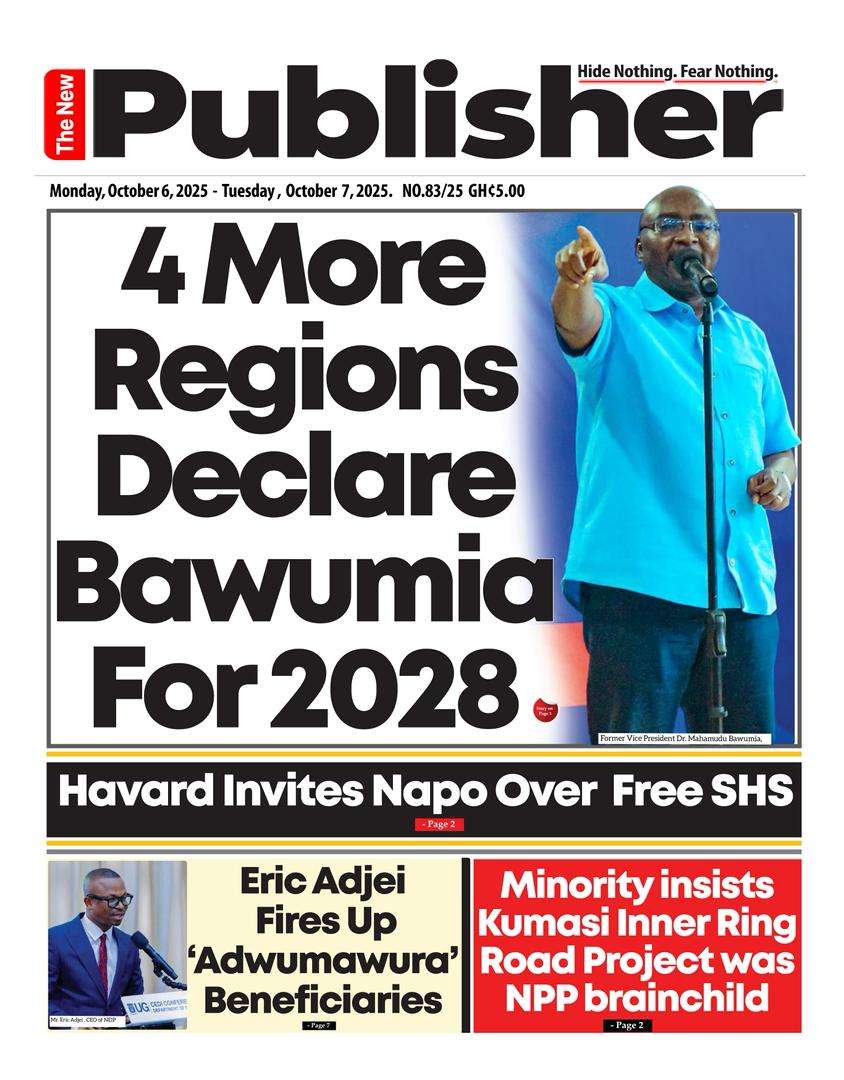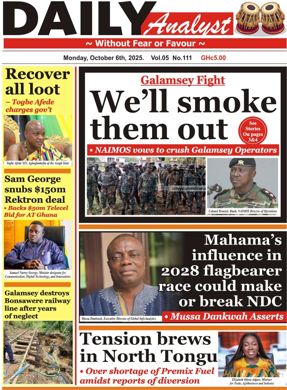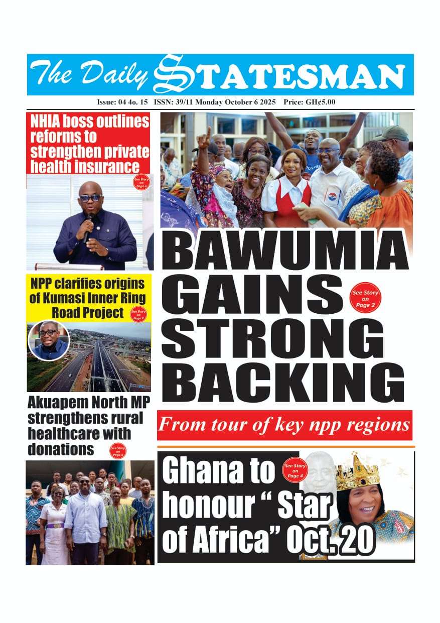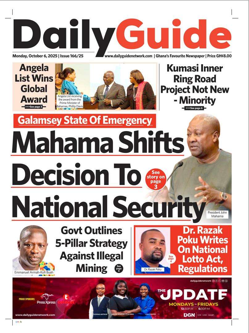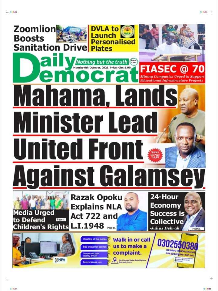 Newspaper headlines: Monday, October 6, 2025 Date: 06 October 2025 By Vincent Ashitey Category: general news Shares Share Tweet Email Share Here are the front pages of some of Ghana’s newspapers today.
