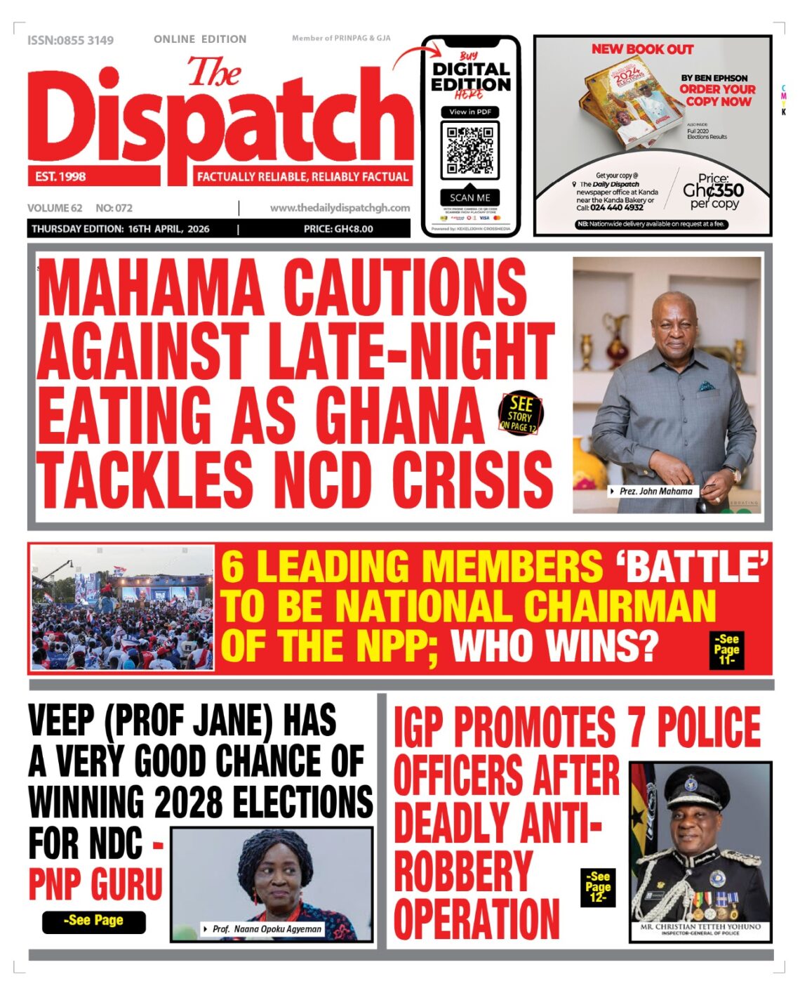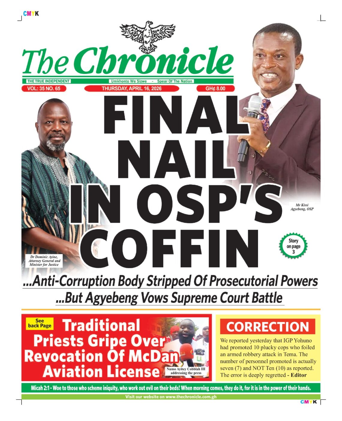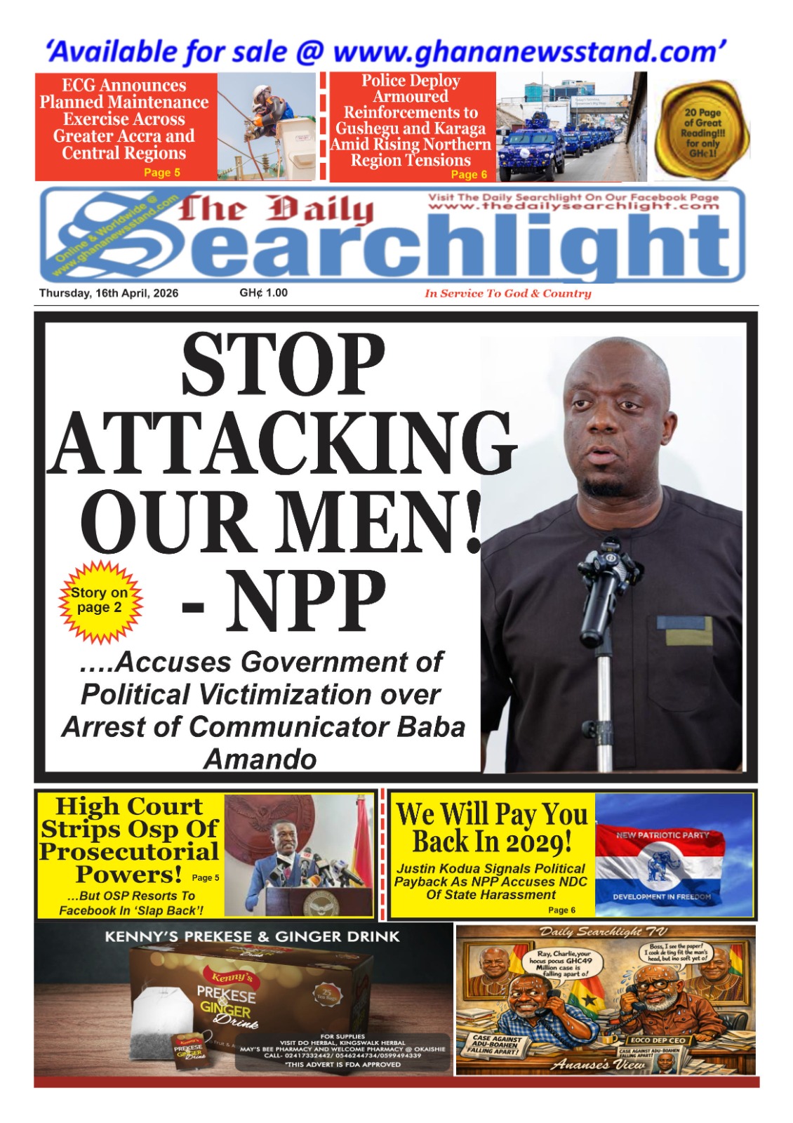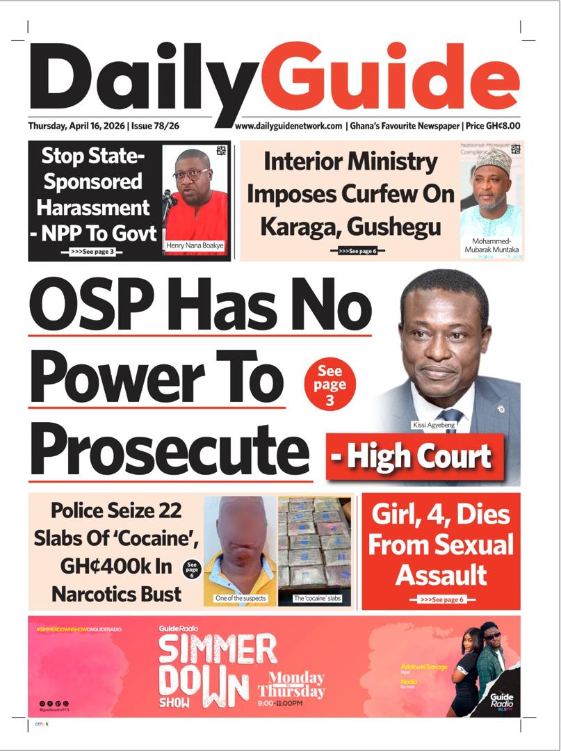 Newspaper headlines: Thursday, April 16, 2026 Date: 16 April 2026 By Vincent Ashitey Category: general news Shares Share Tweet Email Share Here are the front pages of some of Ghana’s newspapers today.