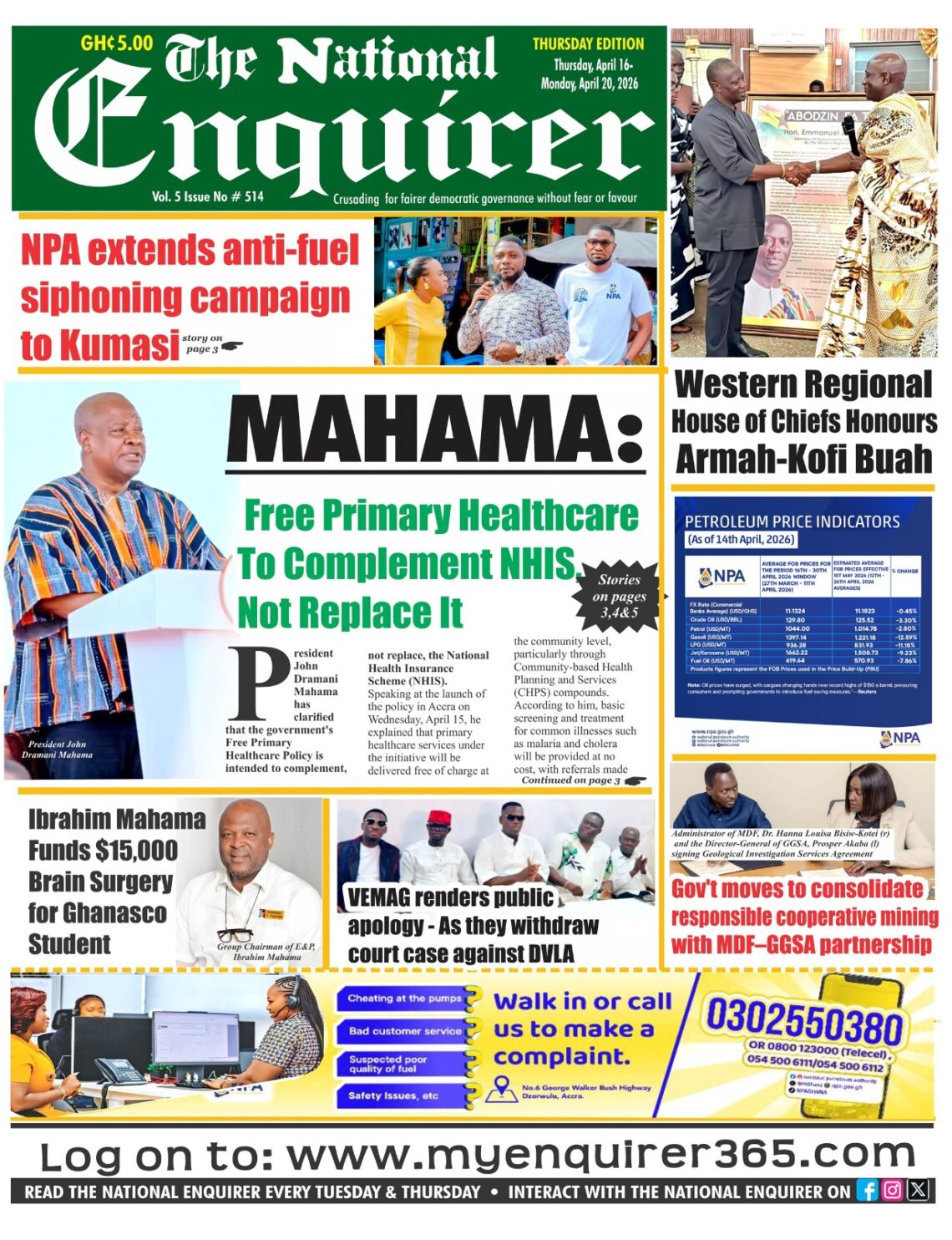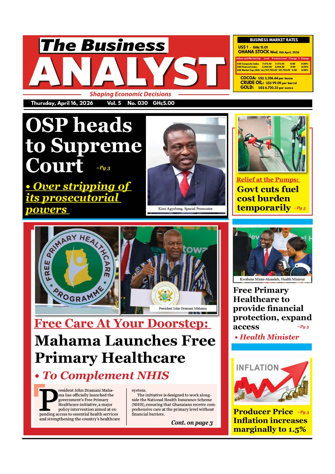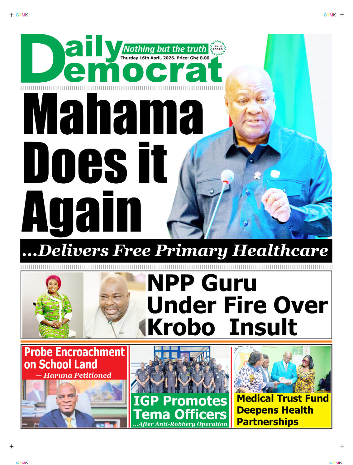 Newspaper headlines: Thursday, April 16, 2026 Date: 16 April 2026 By Vincent Ashitey Category: general news Shares Share Tweet Email Share Here are the front pages of some of Ghana’s newspapers today.