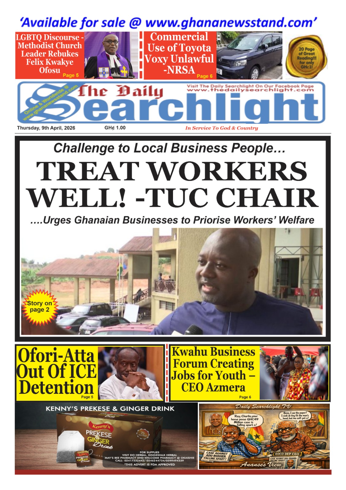 Newspaper headlines: Thursday, April 9, 2026 Date: 09 April 2026 By Vincent Ashitey Category: general news Shares Share Tweet Email Share Here are the front pages of some of Ghana’s newspapers today.