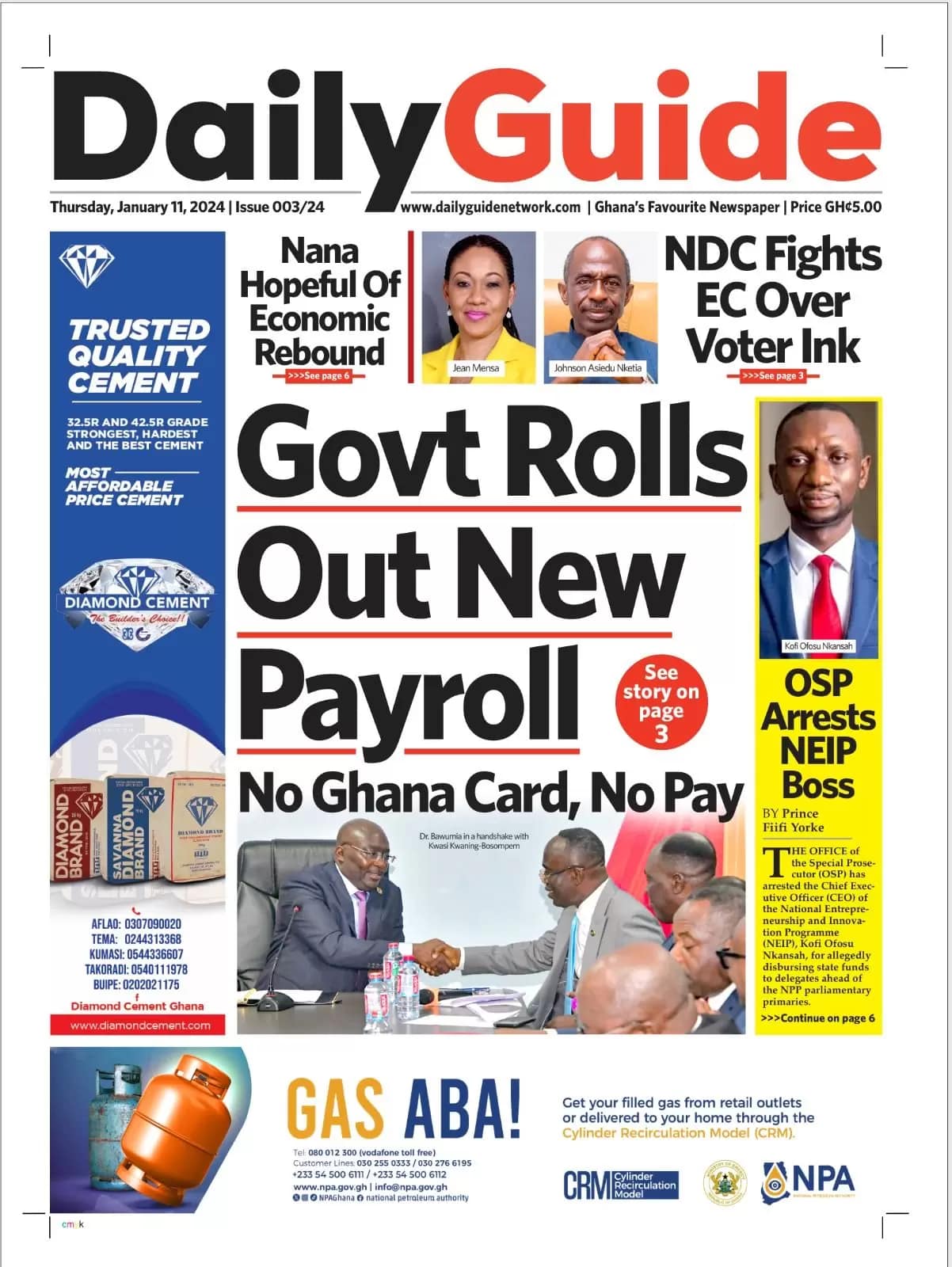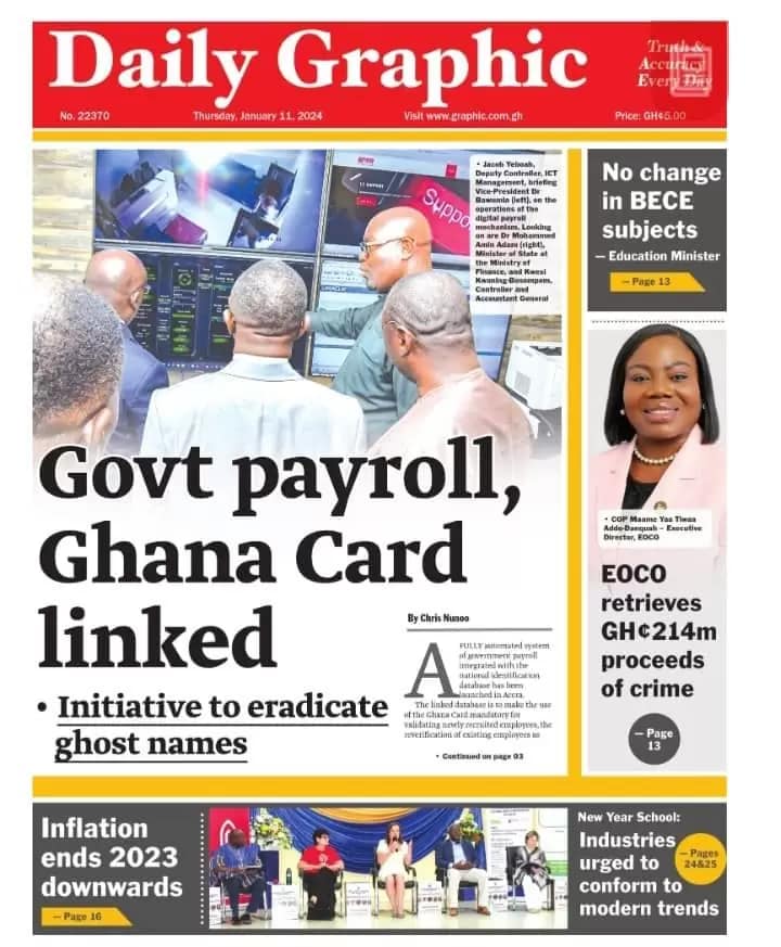 Newspaper headlines: Thursday, January 11, 2024 Date: 11 January 2024 By Vincent Ashitey Category: general news Shares Share Tweet Email Share Here are the front pages of some of Ghana’s newspapers today.