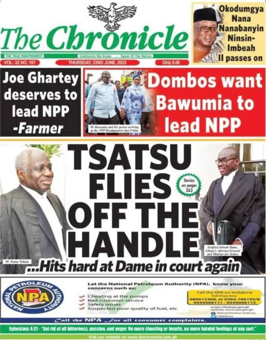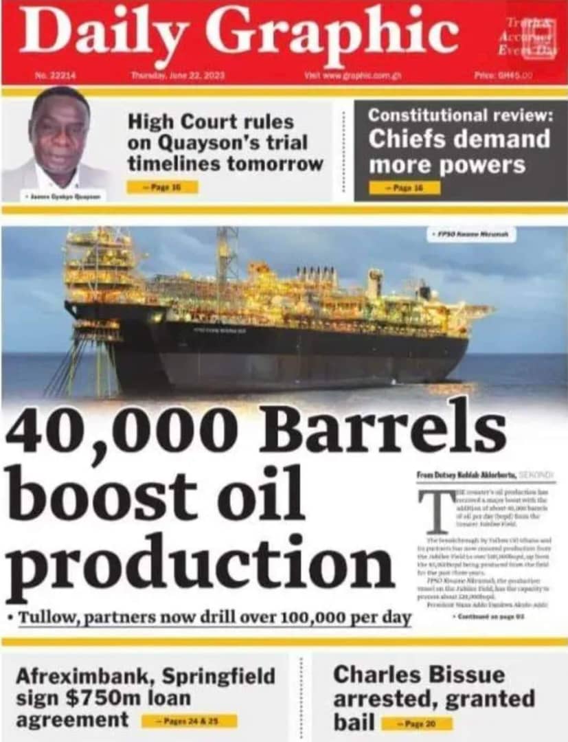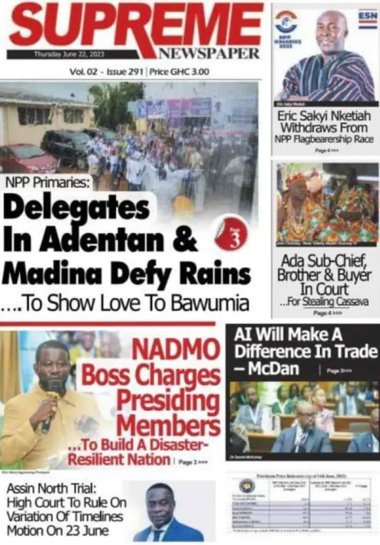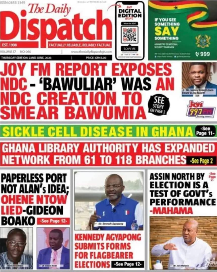 Newspaper headlines: Thursday, June 22, 2023 Date: 22 June 2023 By Vincent Ashitey Category: general news Shares Share Tweet Email Share Here are the front pages of some of Ghana’s newspapers today.