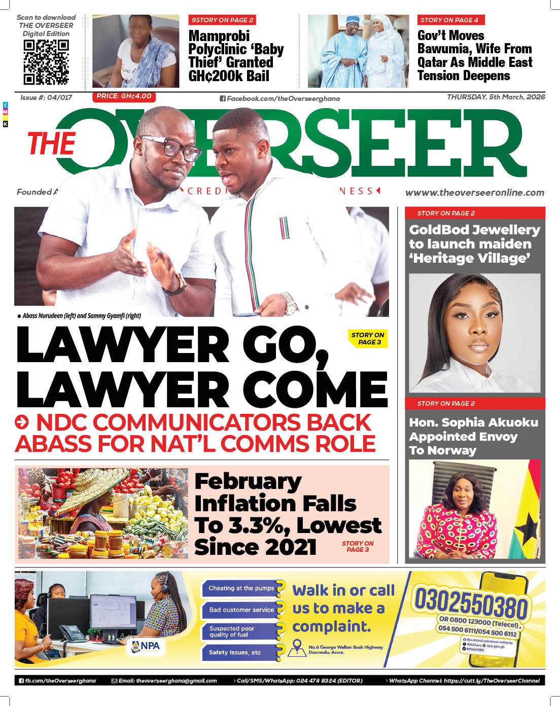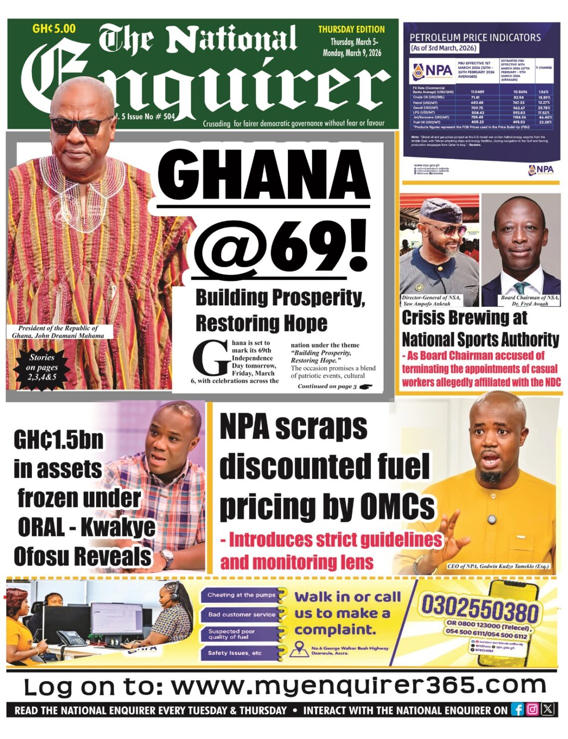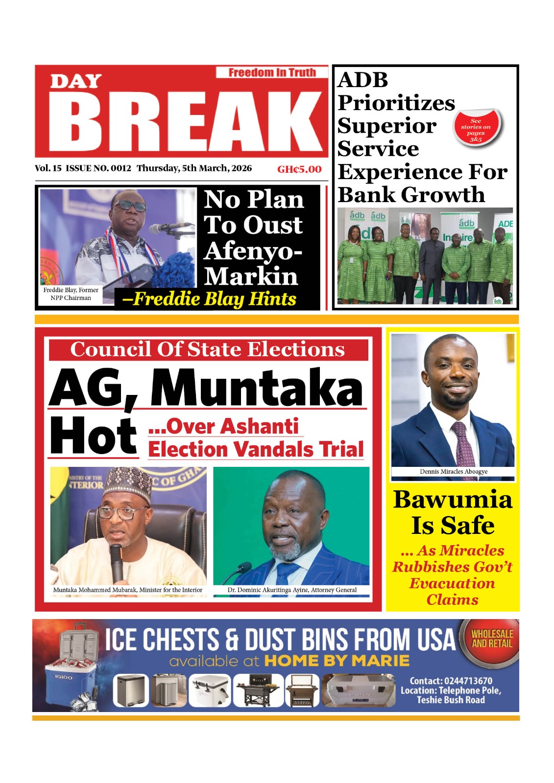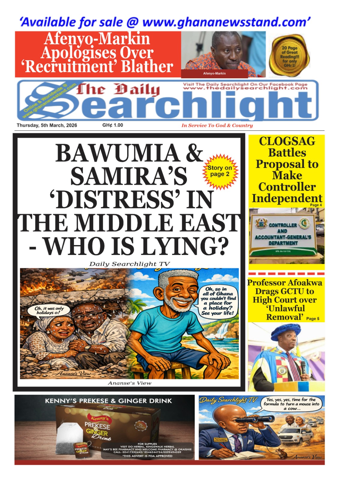Newspaper headlines: Thursday, March 5, 2026 Date: 05 March 2026 By Vincent Ashitey Category: general news Shares Share Tweet Email Share Here are the front pages of some of Ghana’s newspapers today.