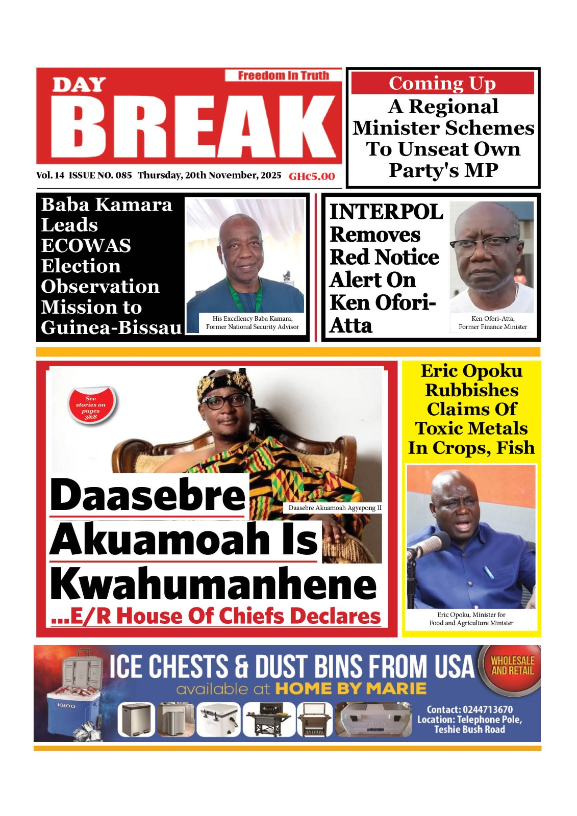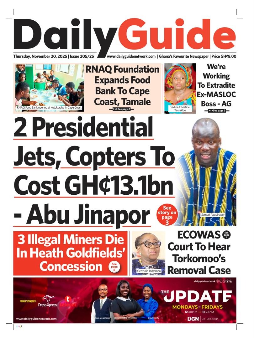 Newspaper headlines: Thursday, November 20, 2025 Date: 20 November 2025 By Vincent Ashitey Category: general news Shares Share Tweet Email Share Here are the front pages of some of Ghana’s newspapers today.