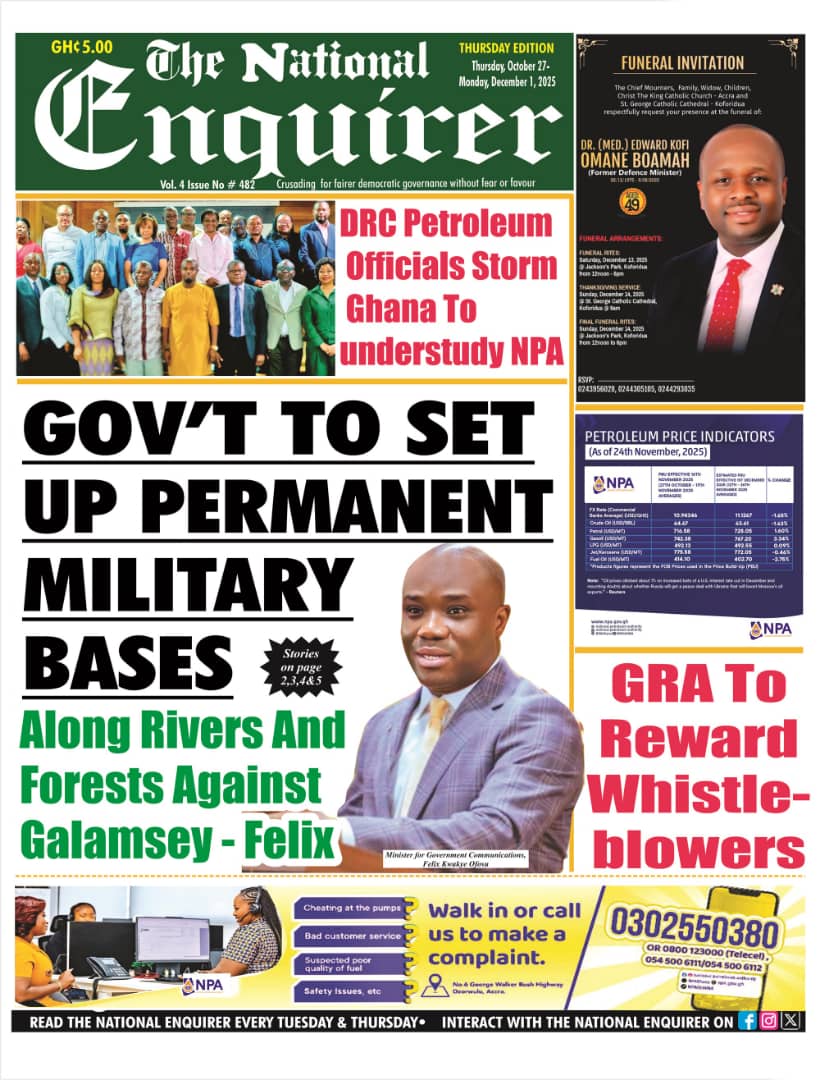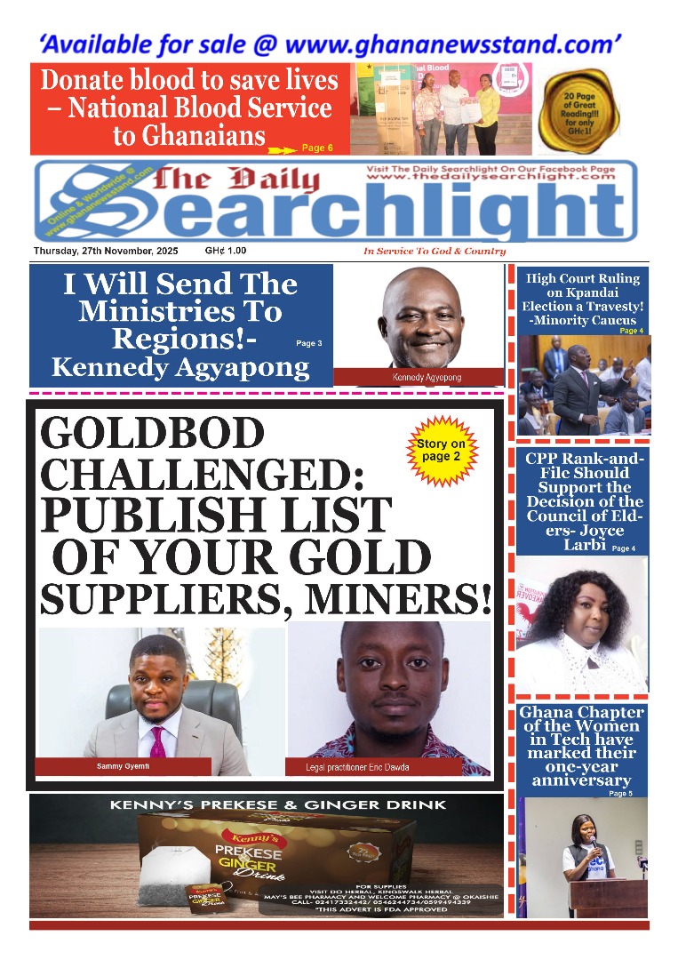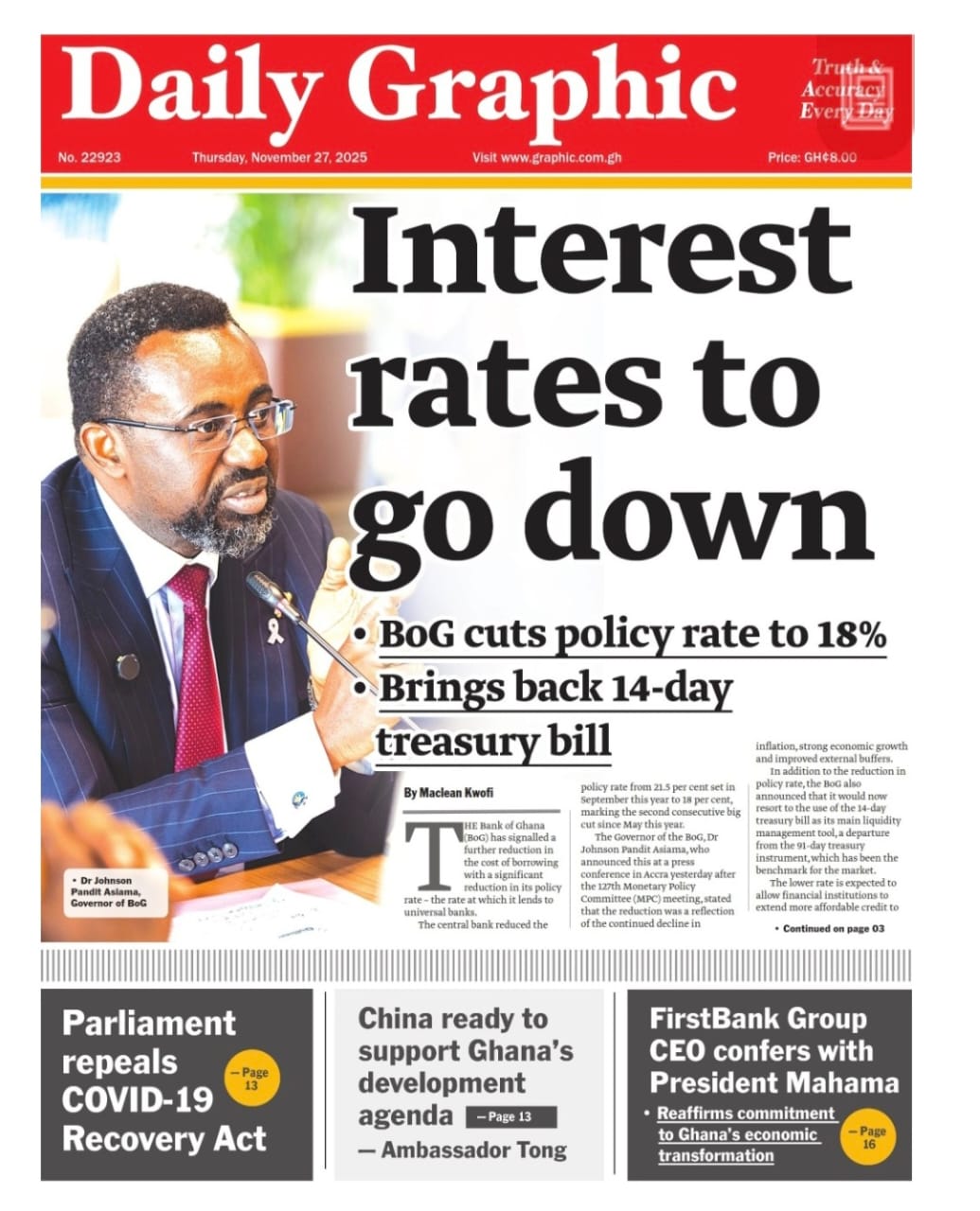 Newspaper headlines: Thursday, November 27, 2025 Date: 27 November 2025 By Vincent Ashitey Category: general news Shares Share Tweet Email Share Here are the front pages of some of Ghana’s newspapers today.