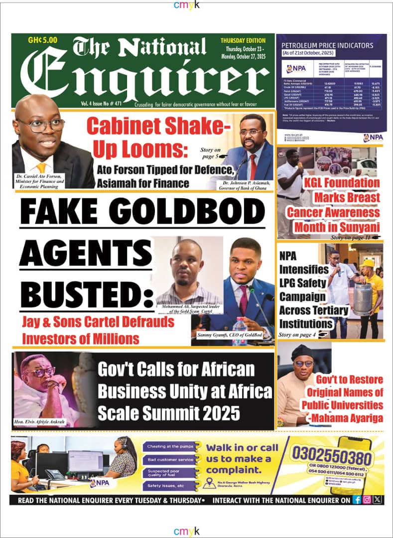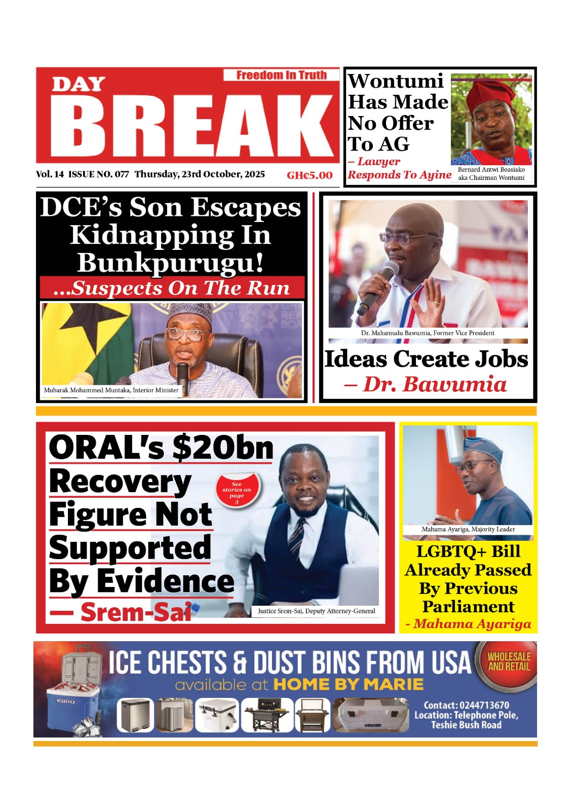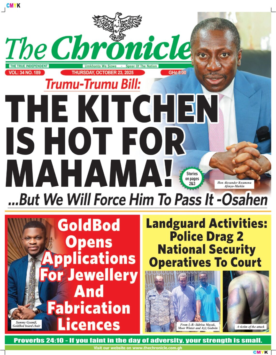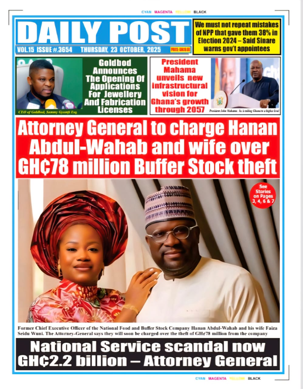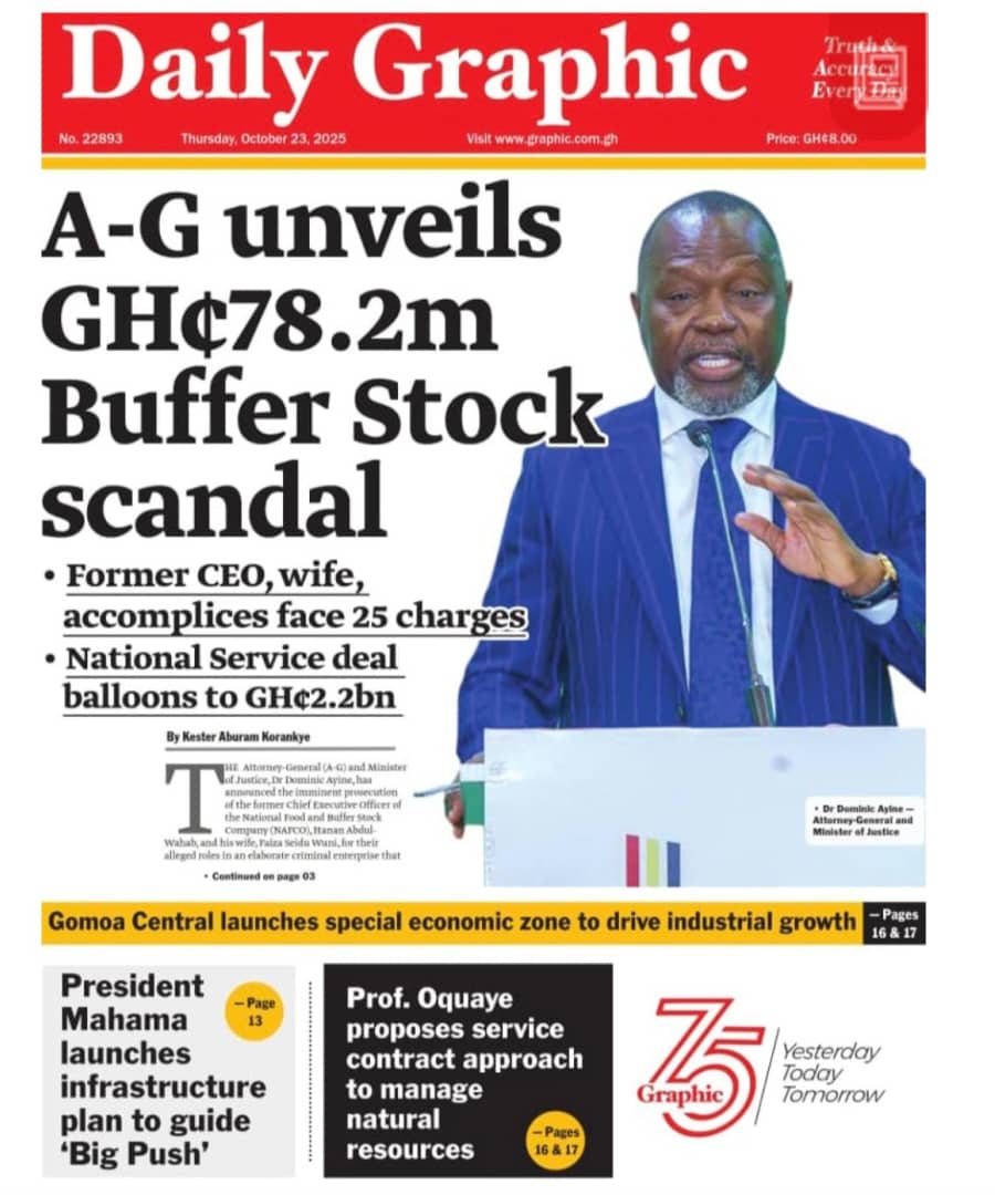 Newspaper headlines: Thursday, October 23, 2025 Date: 23 October 2025 By Vincent Ashitey Category: general news Shares Share Tweet Email Share Here are the front pages of some of Ghana’s newspapers today.