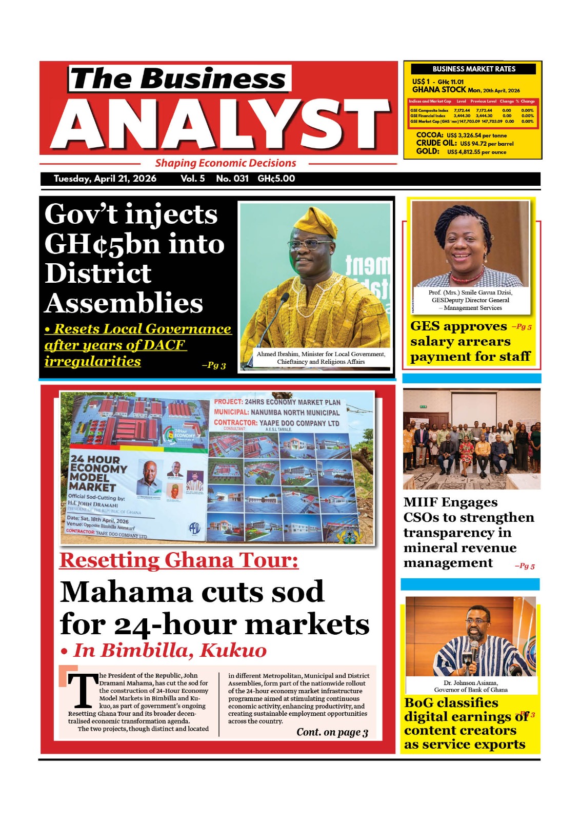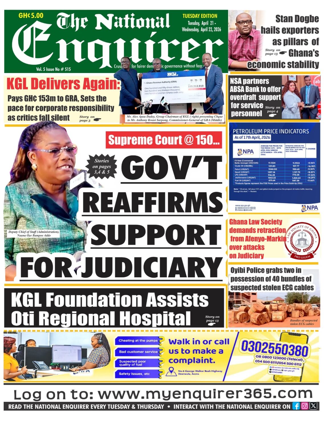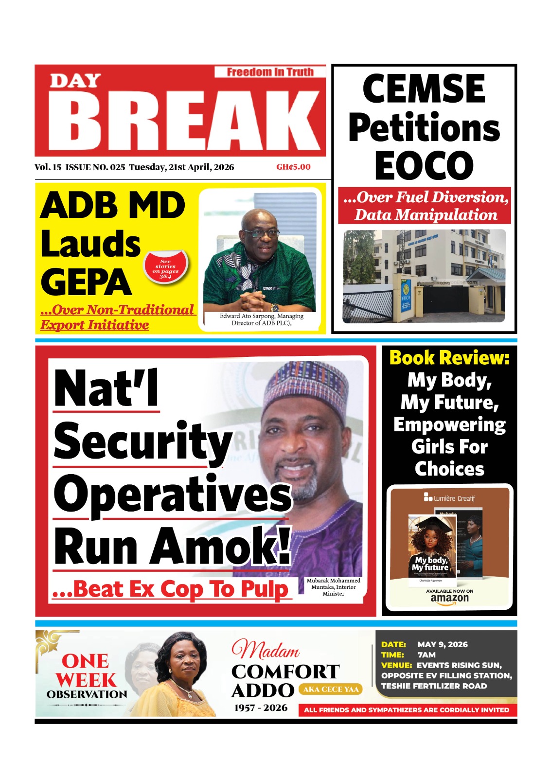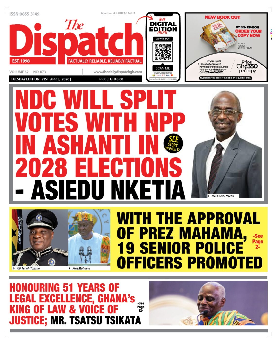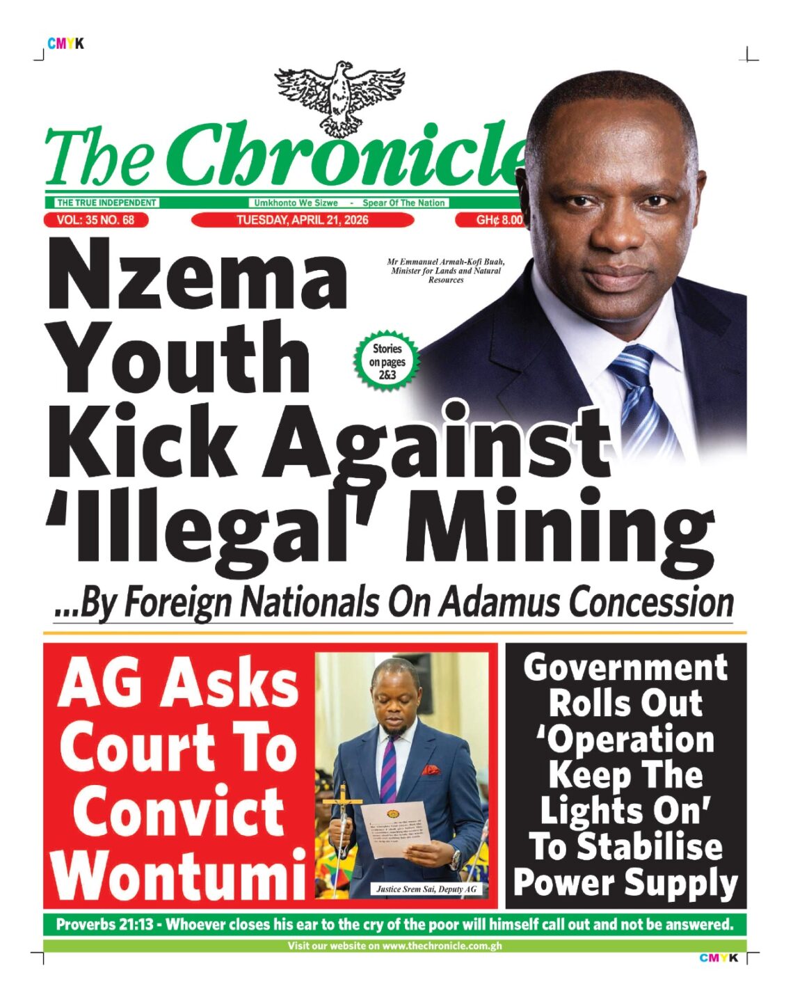 Newspaper headlines: Tuesday, April 21, 2026 Date: 21 April 2026 By Vincent Ashitey Category: general news Shares Share Tweet Email Share Here are the front pages of some of Ghana’s newspapers today.