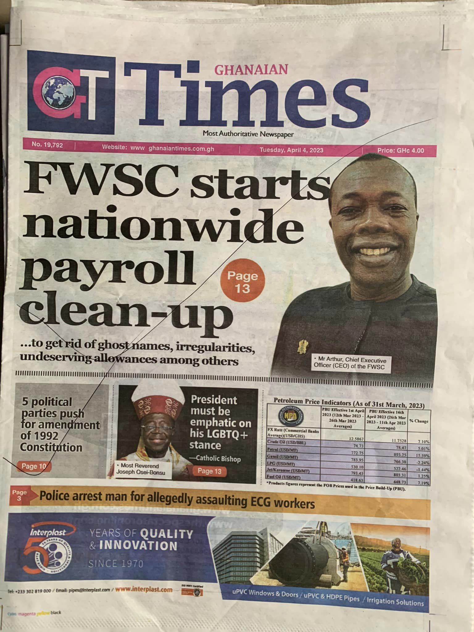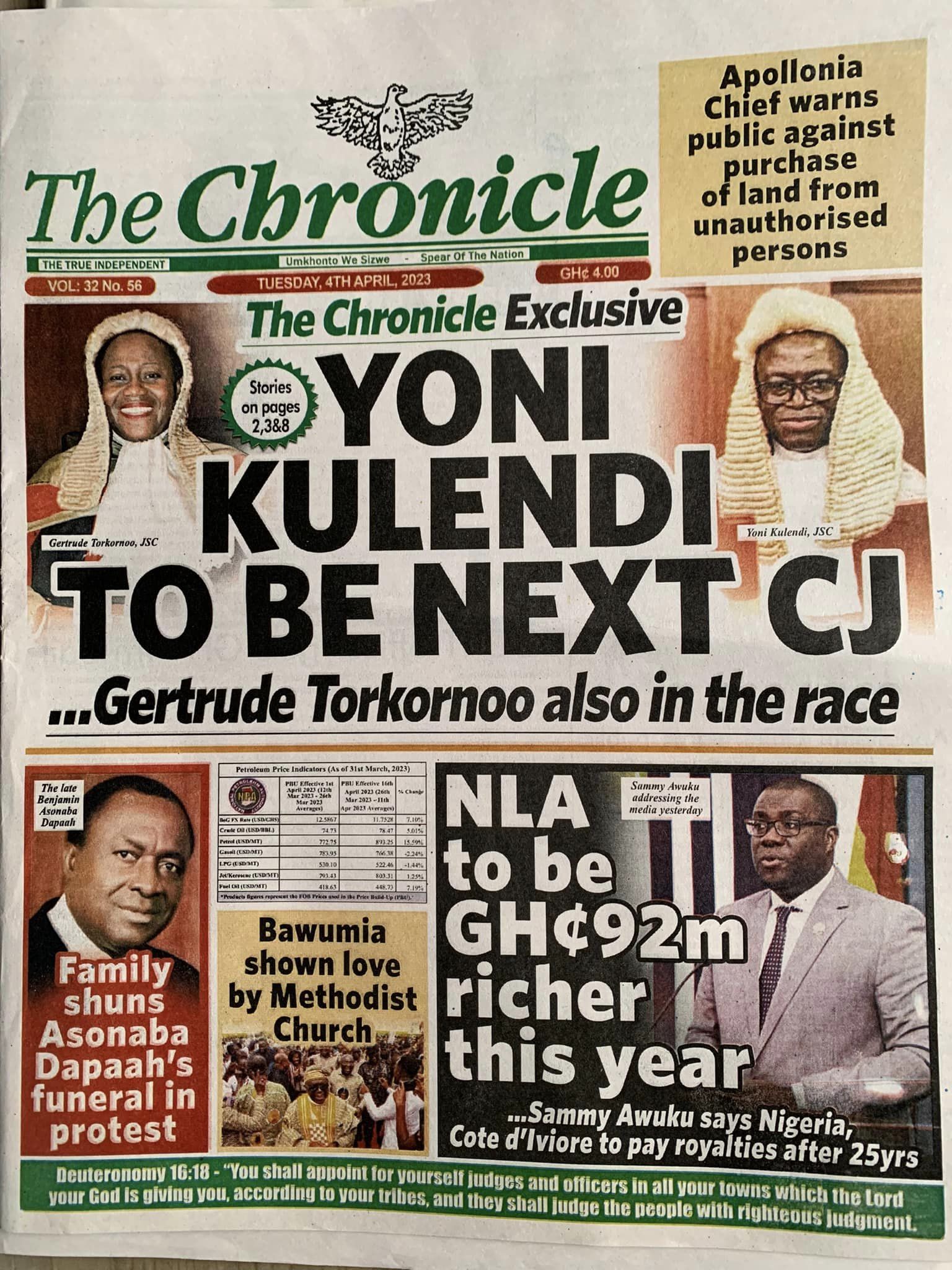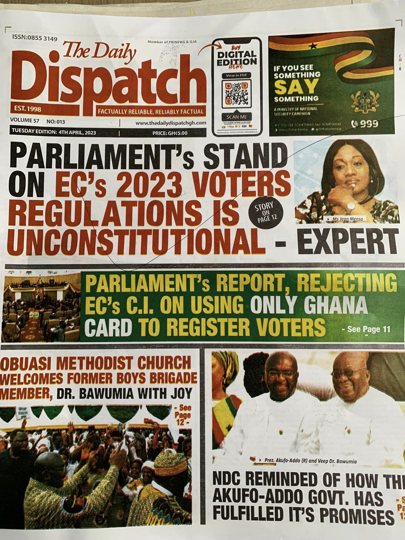 Newspaper headlines: Tuesday, April 4, 2023 Date: 04 April 2023 By Vincent Ashitey Category: general news Shares Share Tweet Email Share Here are the front pages of some of Ghana's newspapers today.