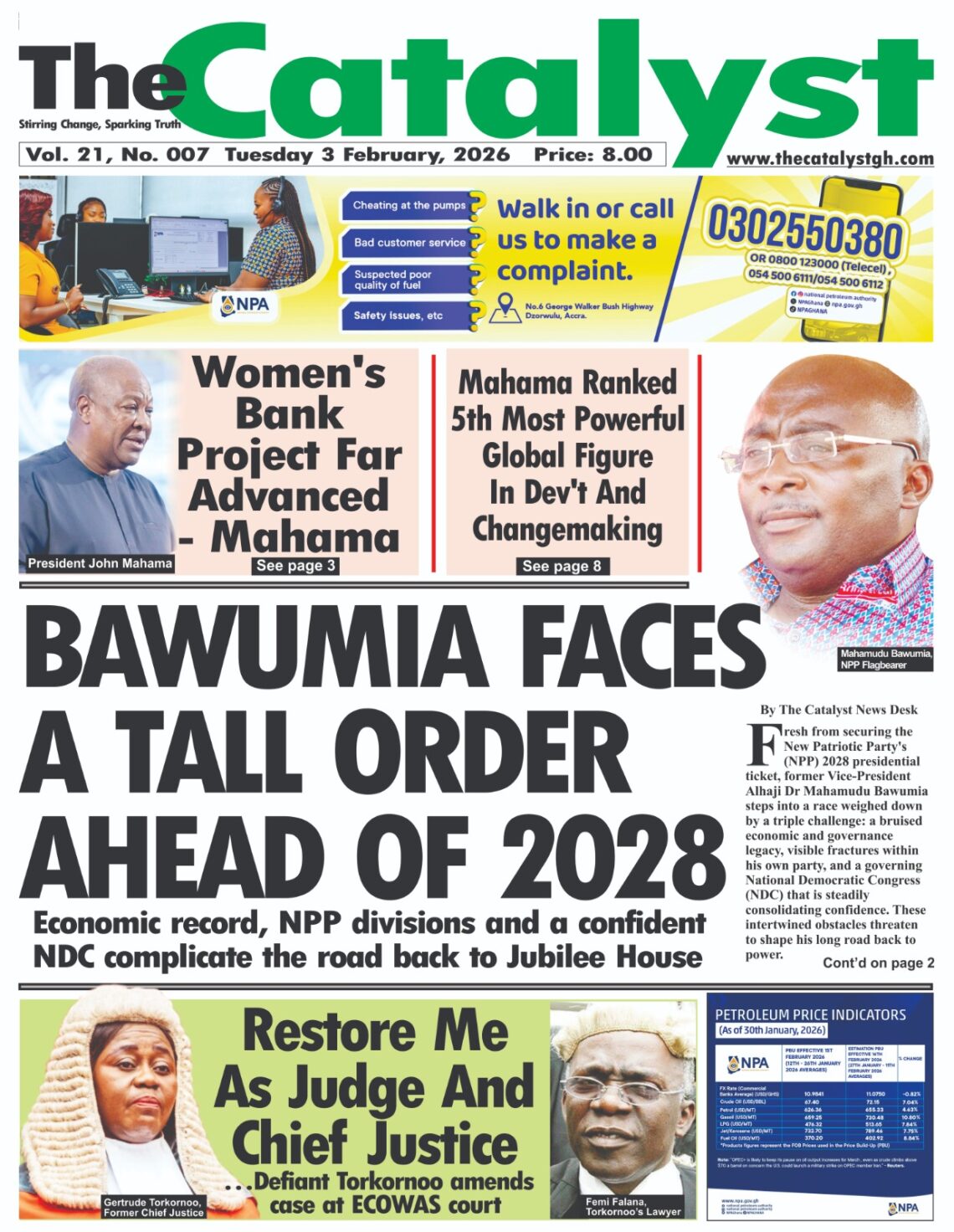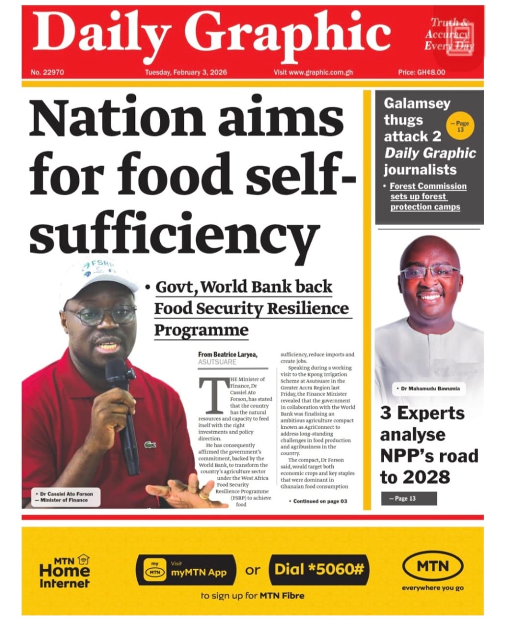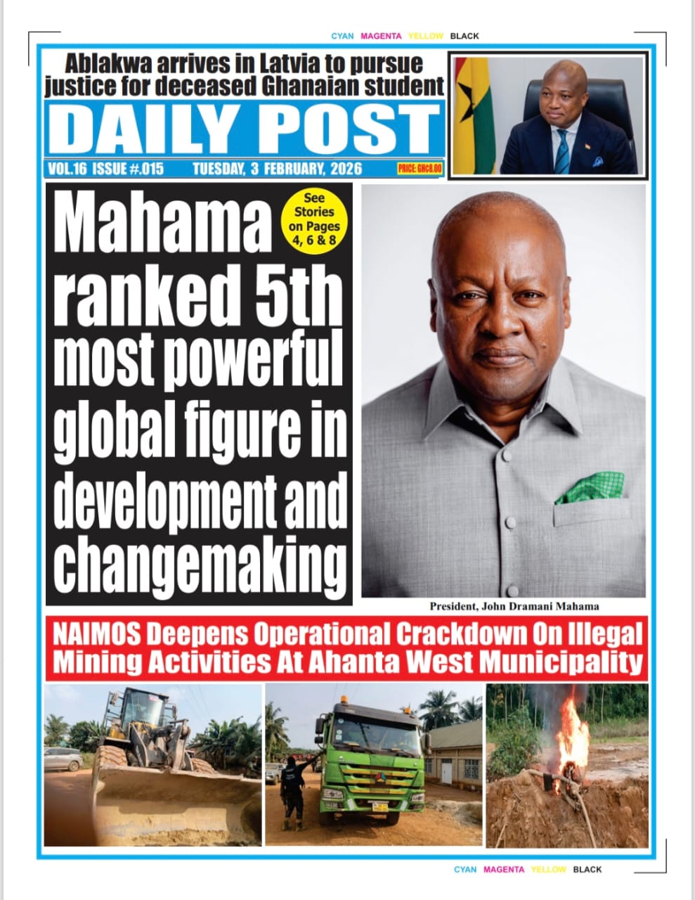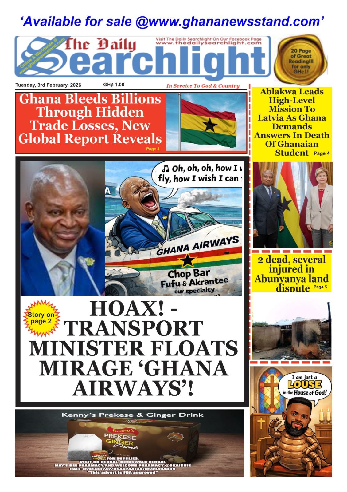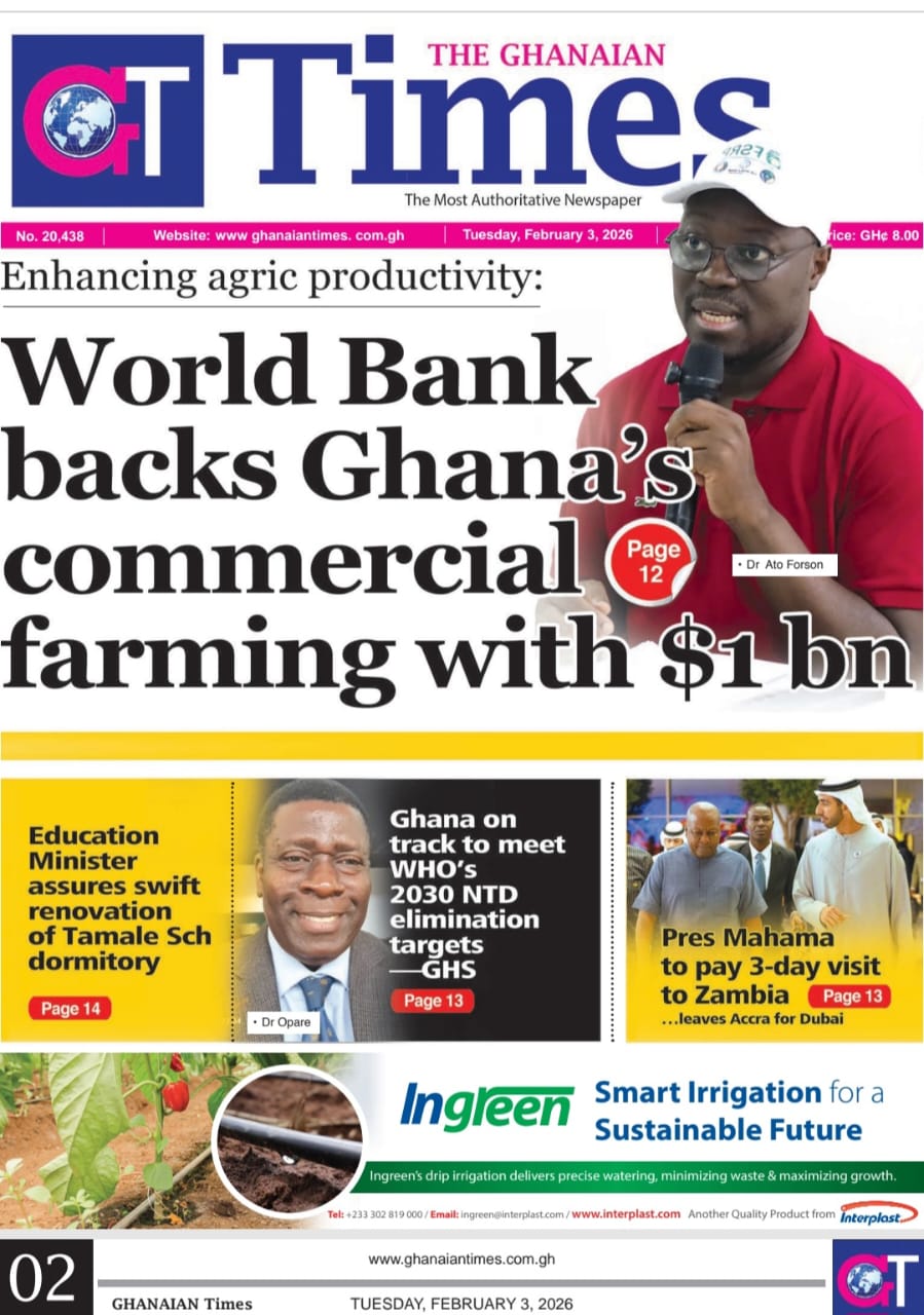 Newspaper headlines: Tuesday, February 3, 2026 Date: 03 February 2026 By Vincent Ashitey Category: general news Shares Share Tweet Email Share Here are the front pages of some of Ghana’s newspapers today.