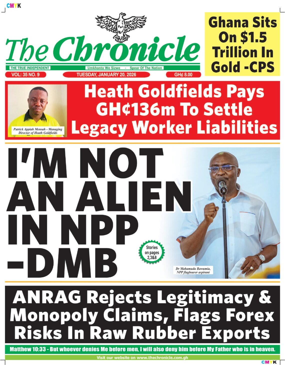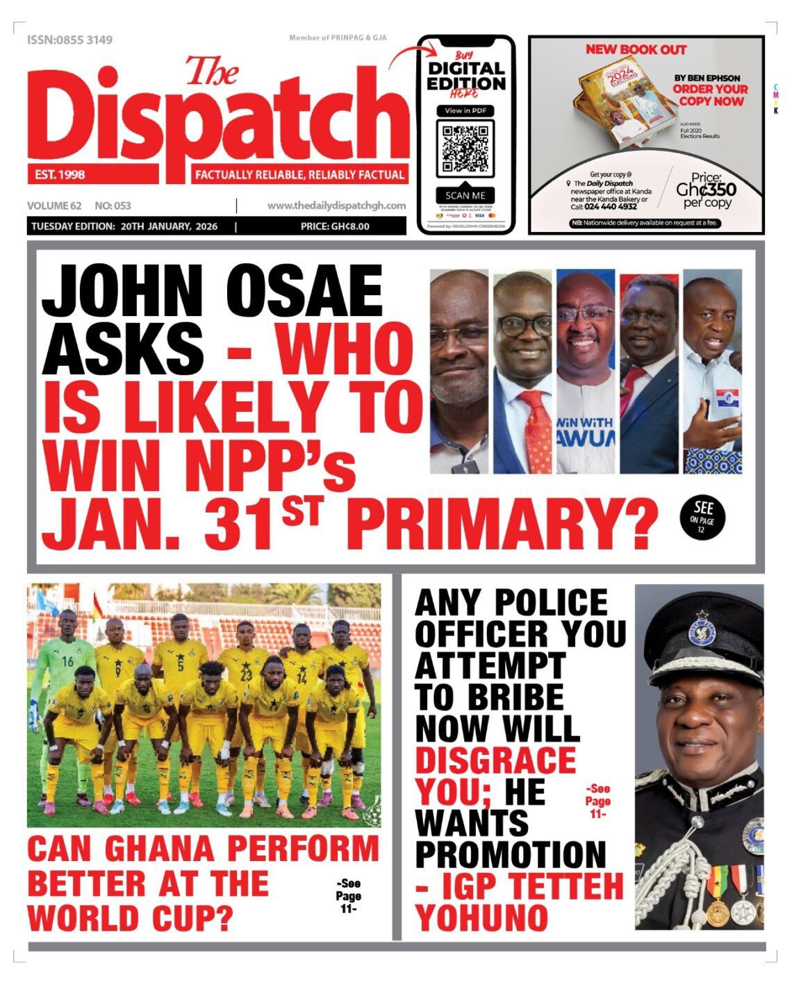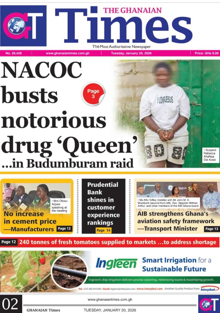 Newspaper headlines: Tuesday, January 20, 2026 Date: 20 January 2026 By Vincent Ashitey Category: general news Shares Share Tweet Email Share Here are the front pages of some of Ghana’s newspapers today.