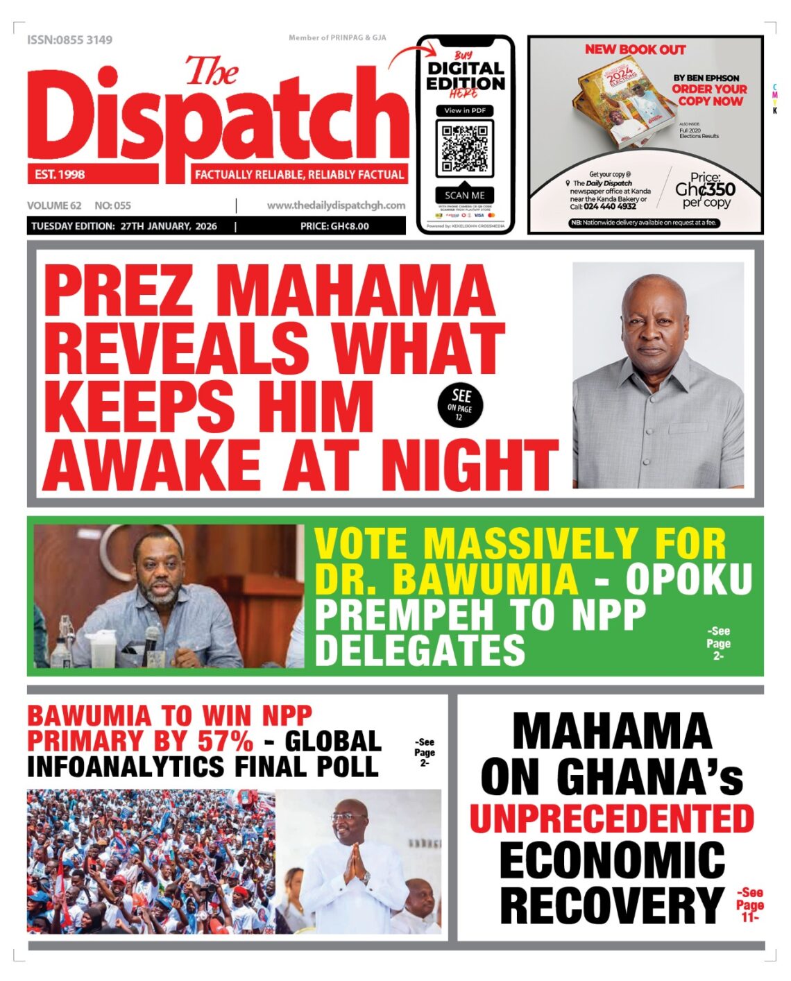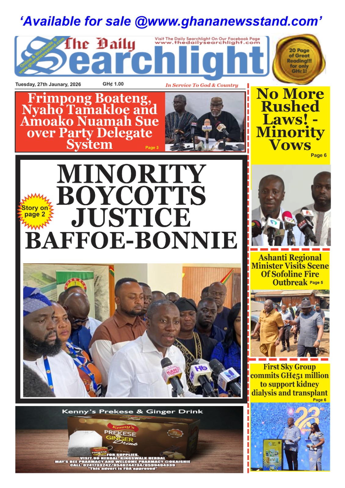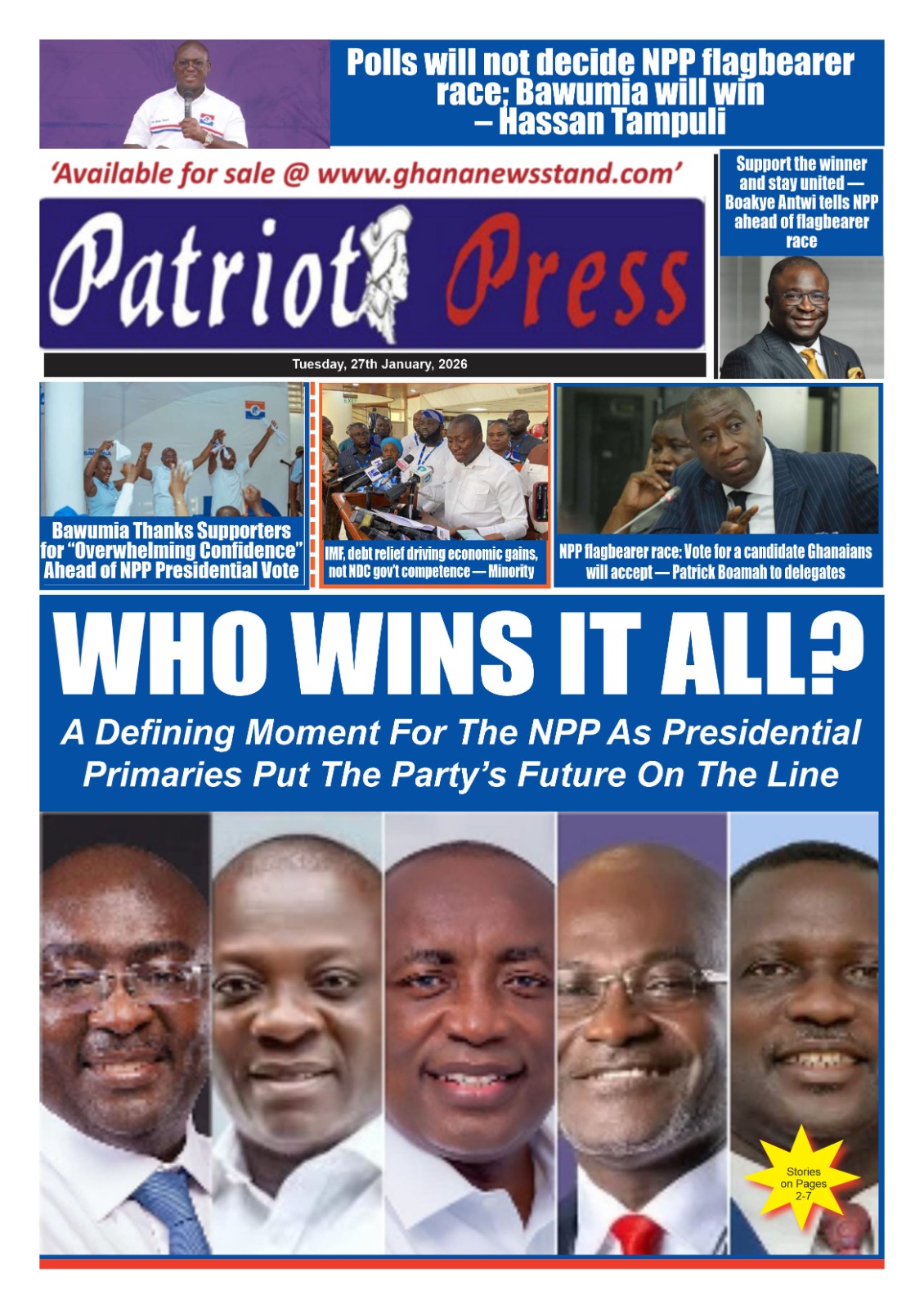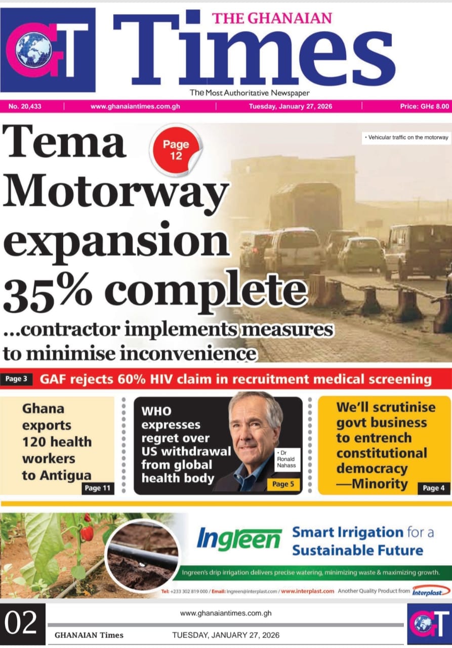 Newspaper headlines: Tuesday, January 27, 2026 Date: 27 January 2026 By Vincent Ashitey Category: general news Shares Share Tweet Email Share Here are the front pages of some of Ghana’s newspapers today.