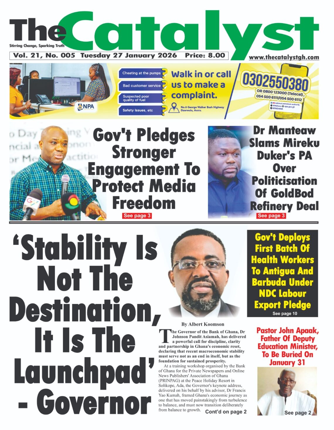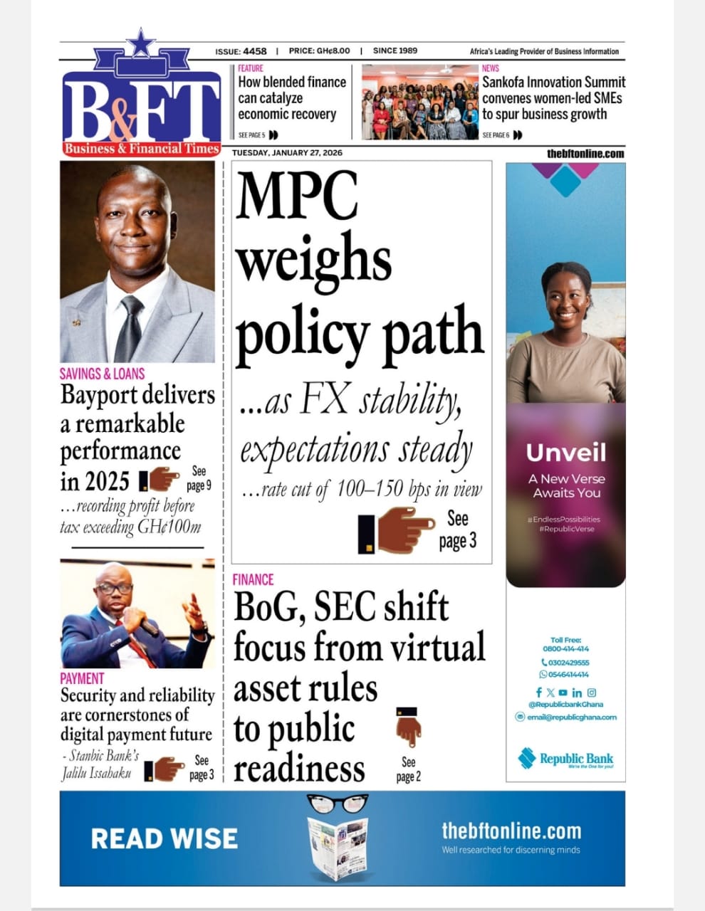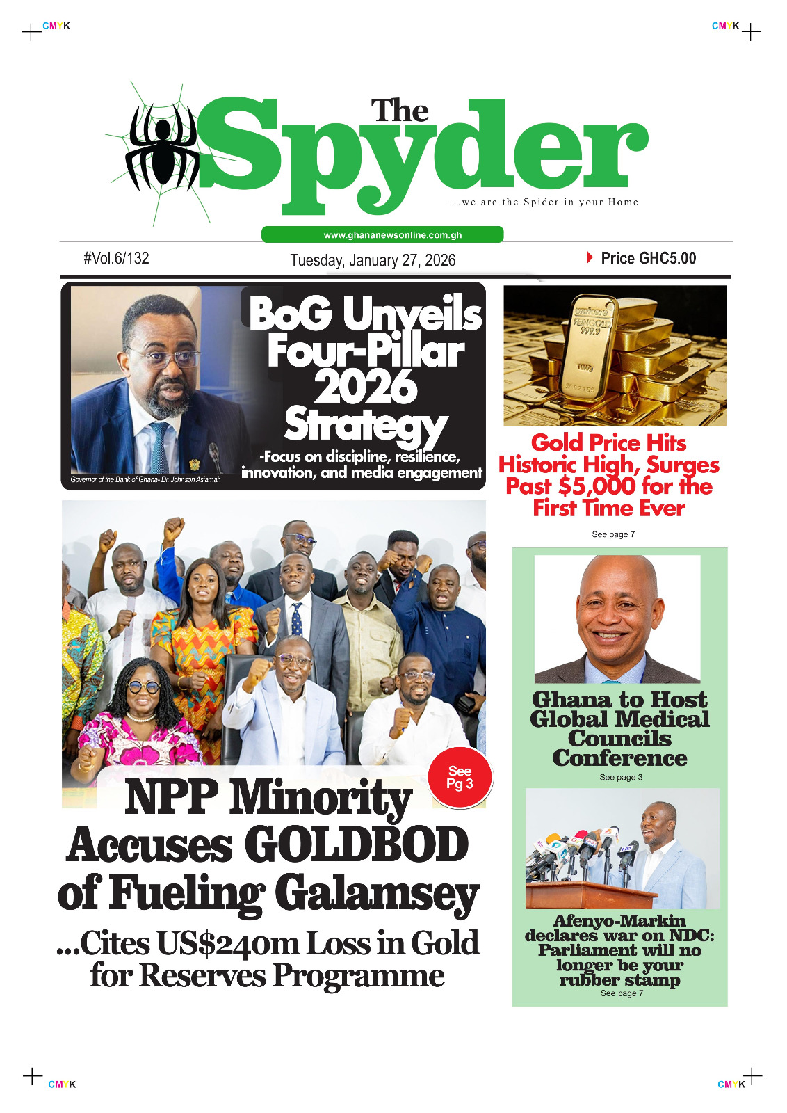 Newspaper headlines: Tuesday, January 27, 2026 Date: 27 January 2026 By Vincent Ashitey Category: general news Shares Share Tweet Email Share Here are the front pages of some of Ghana’s newspapers today.