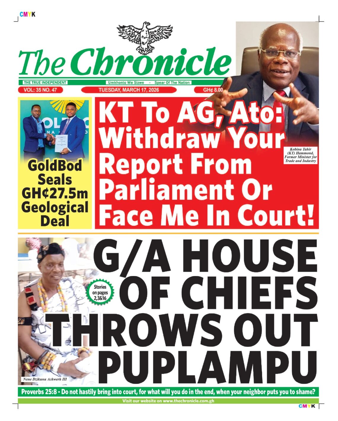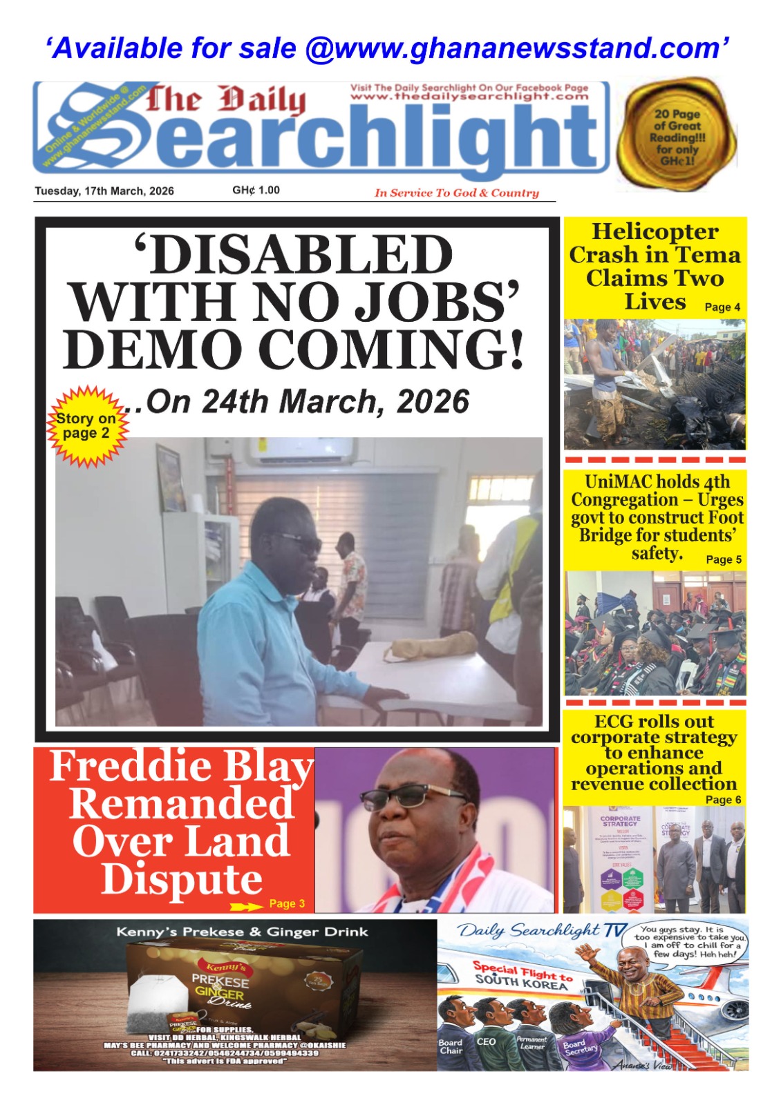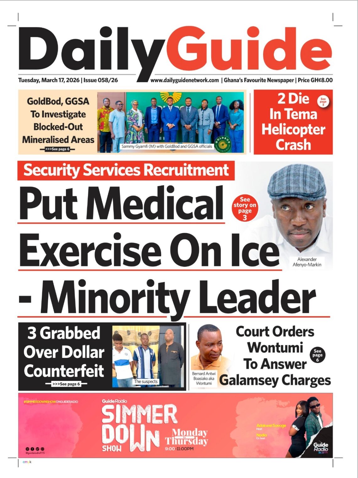 Newspaper headlines: Tuesday, March 17, 2026 Date: 17 March 2026 By Vincent Ashitey Category: general news Shares Share Tweet Email Share Here are the front pages of some of Ghana’s newspapers today.