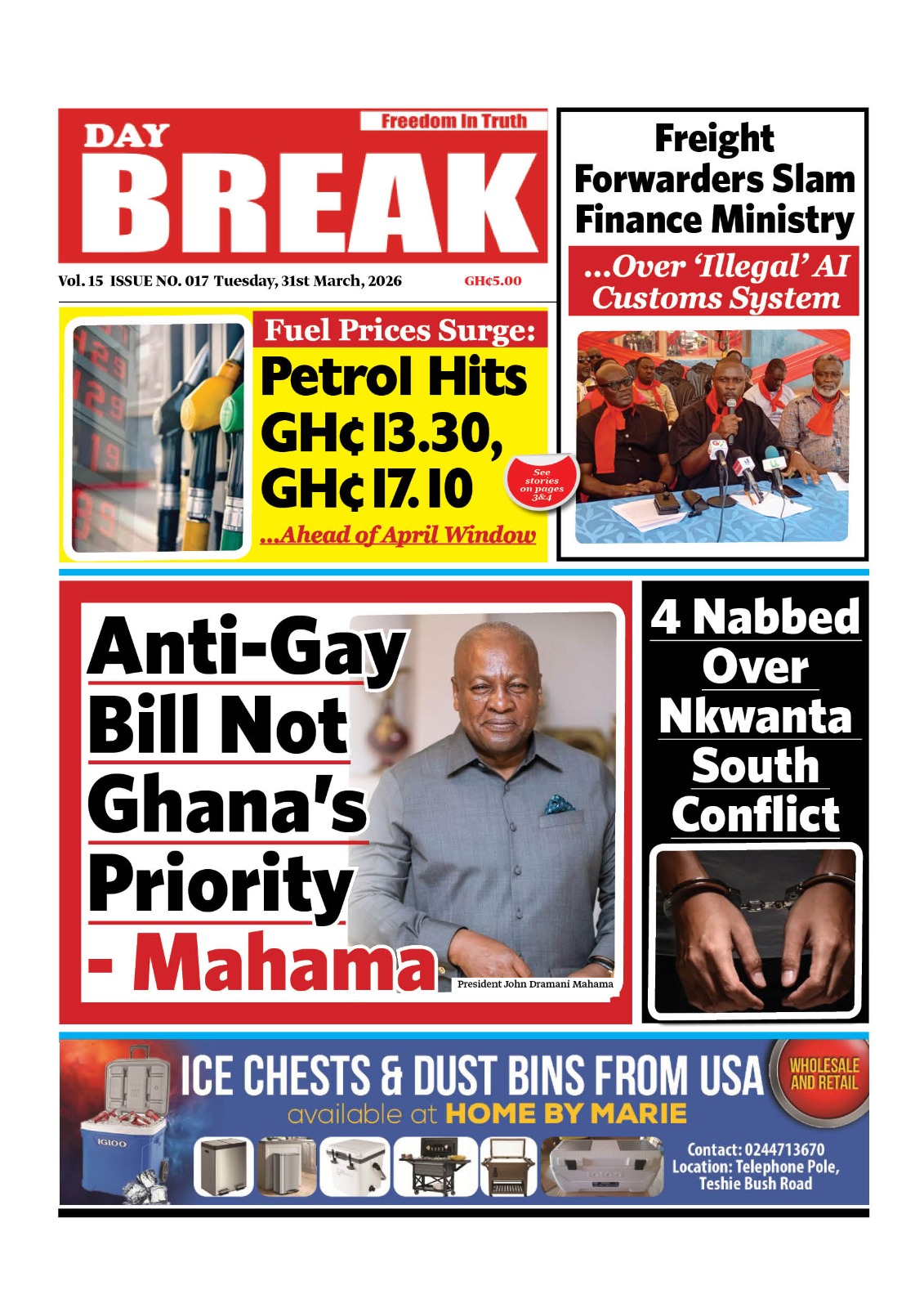 Newspaper headlines: Tuesday, March 31, 2026 Date: 31 March 2026 By Vincent Ashitey Category: general news Shares Share Tweet Email Share Here are the front pages of some of Ghana’s newspapers today.