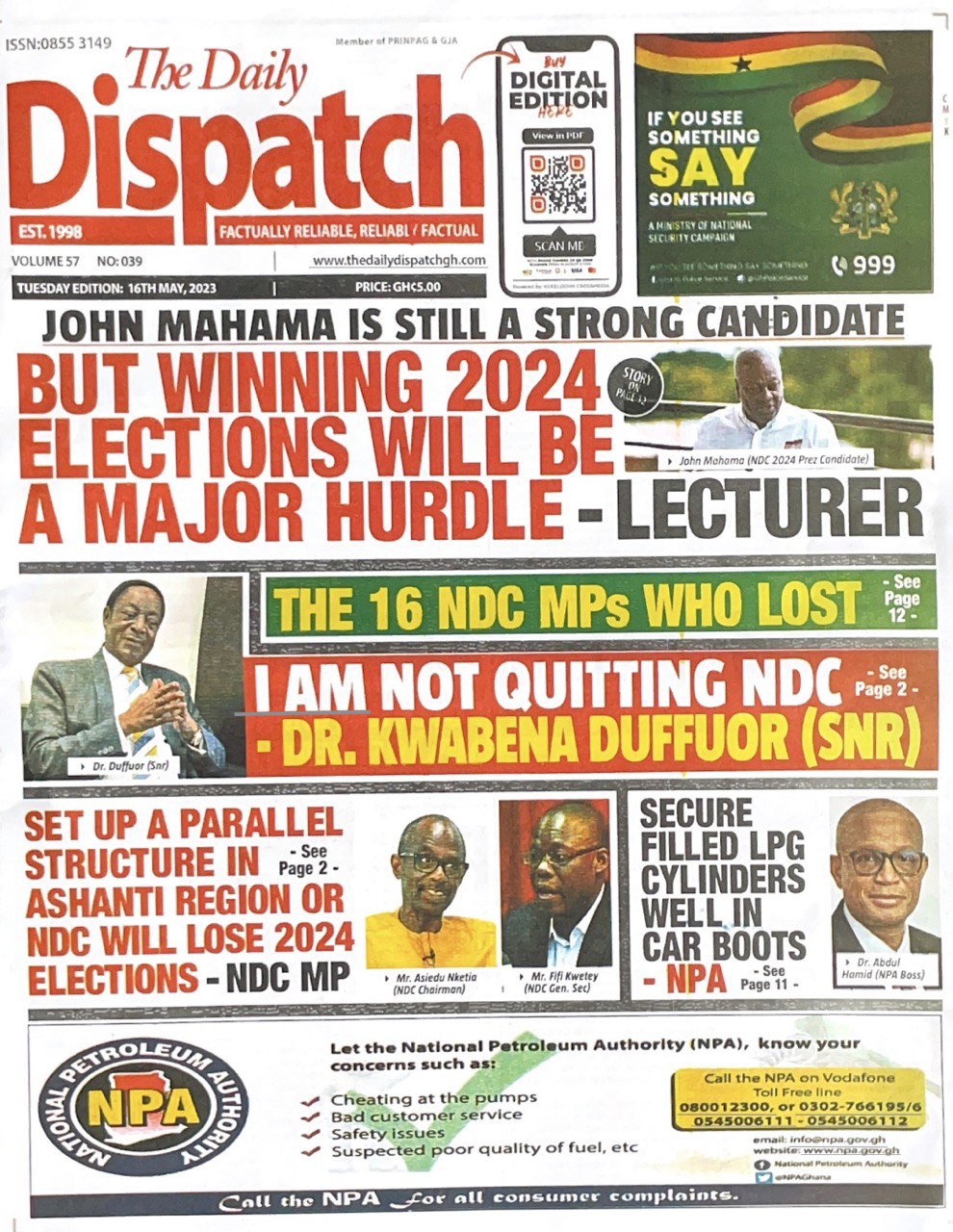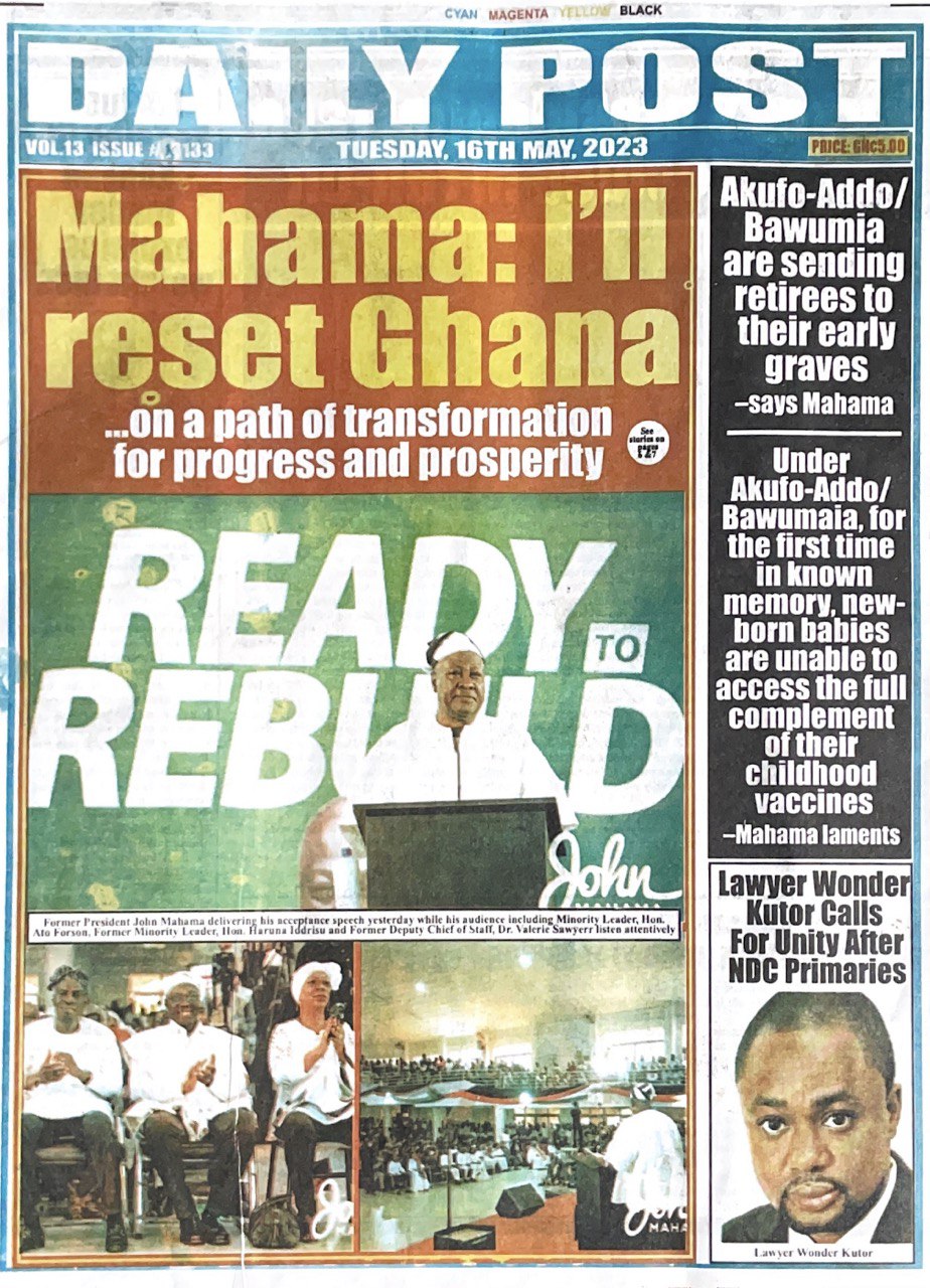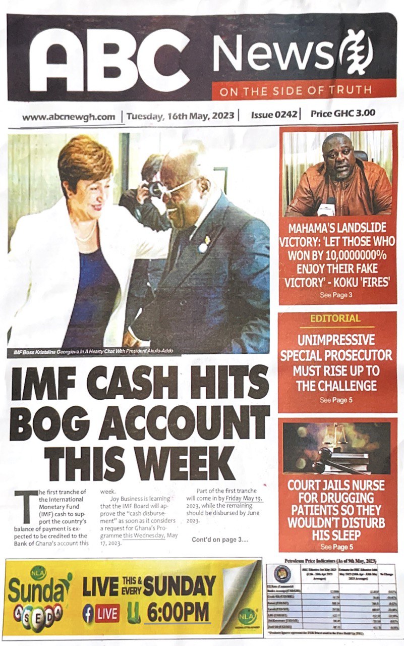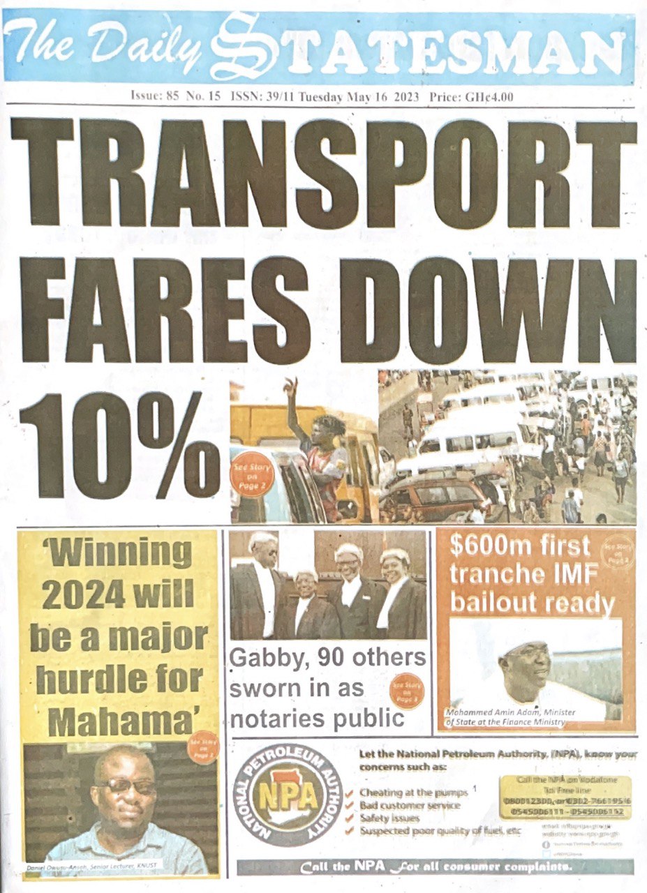 Newspaper headlines: Tuesday, May 16, 2023 Date: 16 May 2023 By Vincent Ashitey Category: general news Shares Share Tweet Email Share Here are the front pages of some of Ghana's newspapers today. g