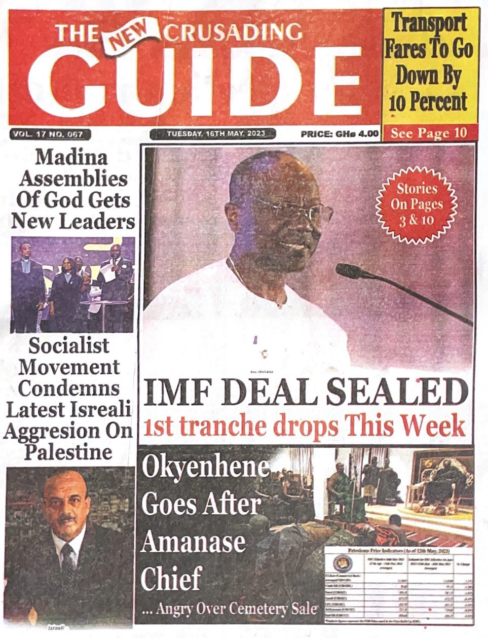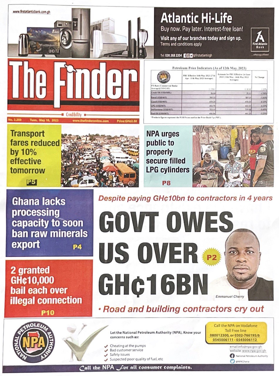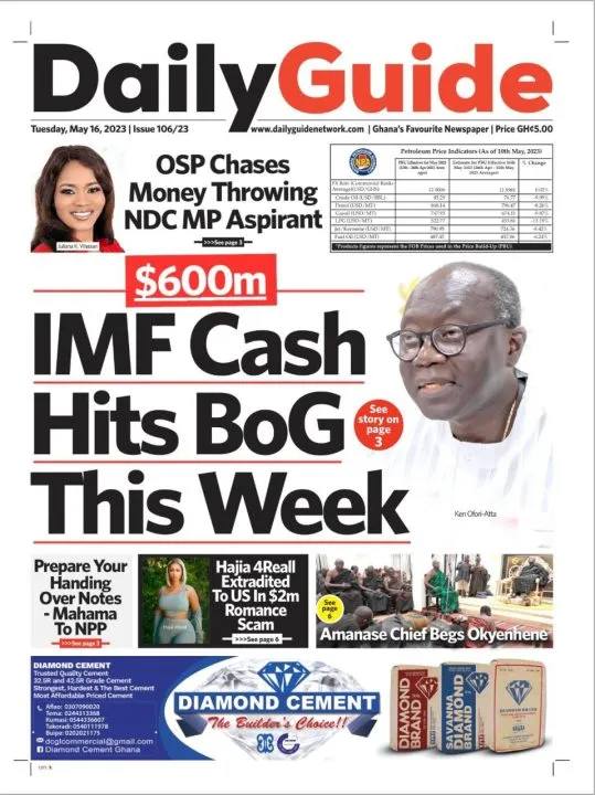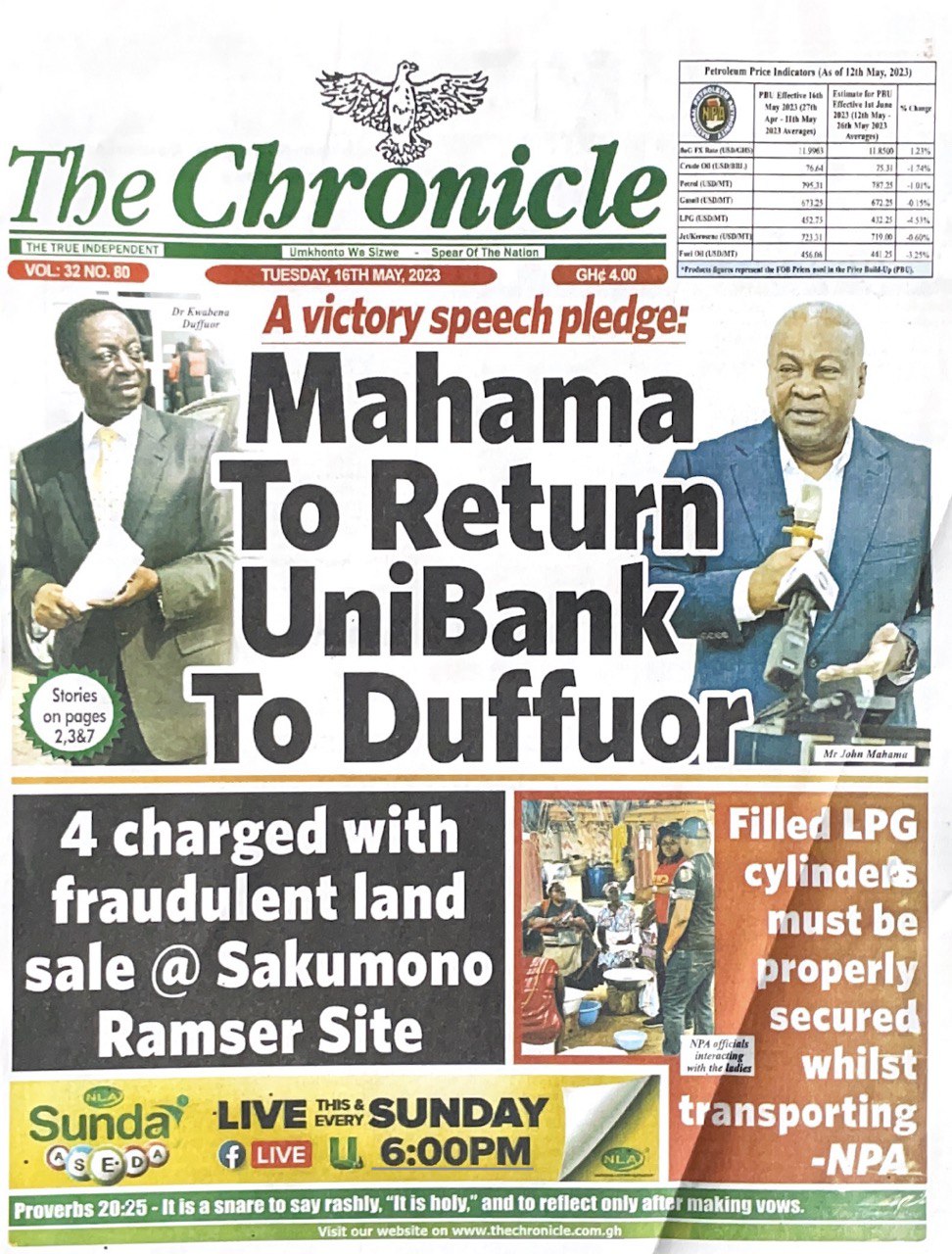 Newspaper headlines: Tuesday, May 16, 2023 Date: 16 May 2023 By Vincent Ashitey Category: general news Shares Share Tweet Email Share Here are the front pages of some of Ghana's newspapers today. g