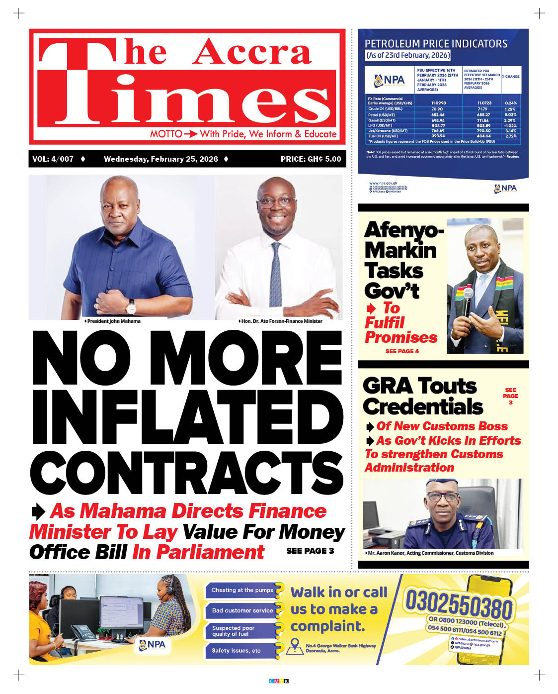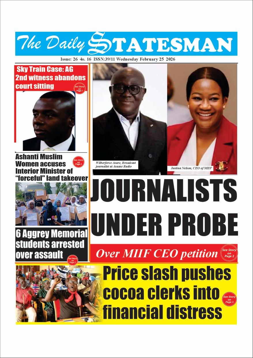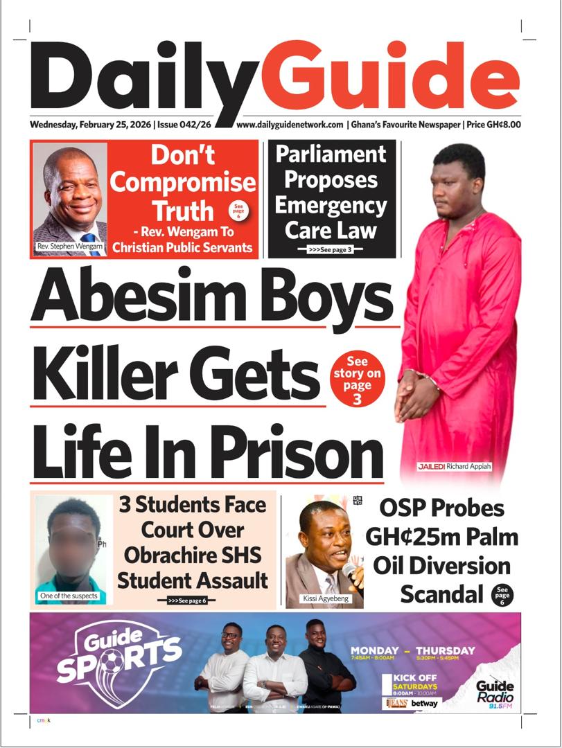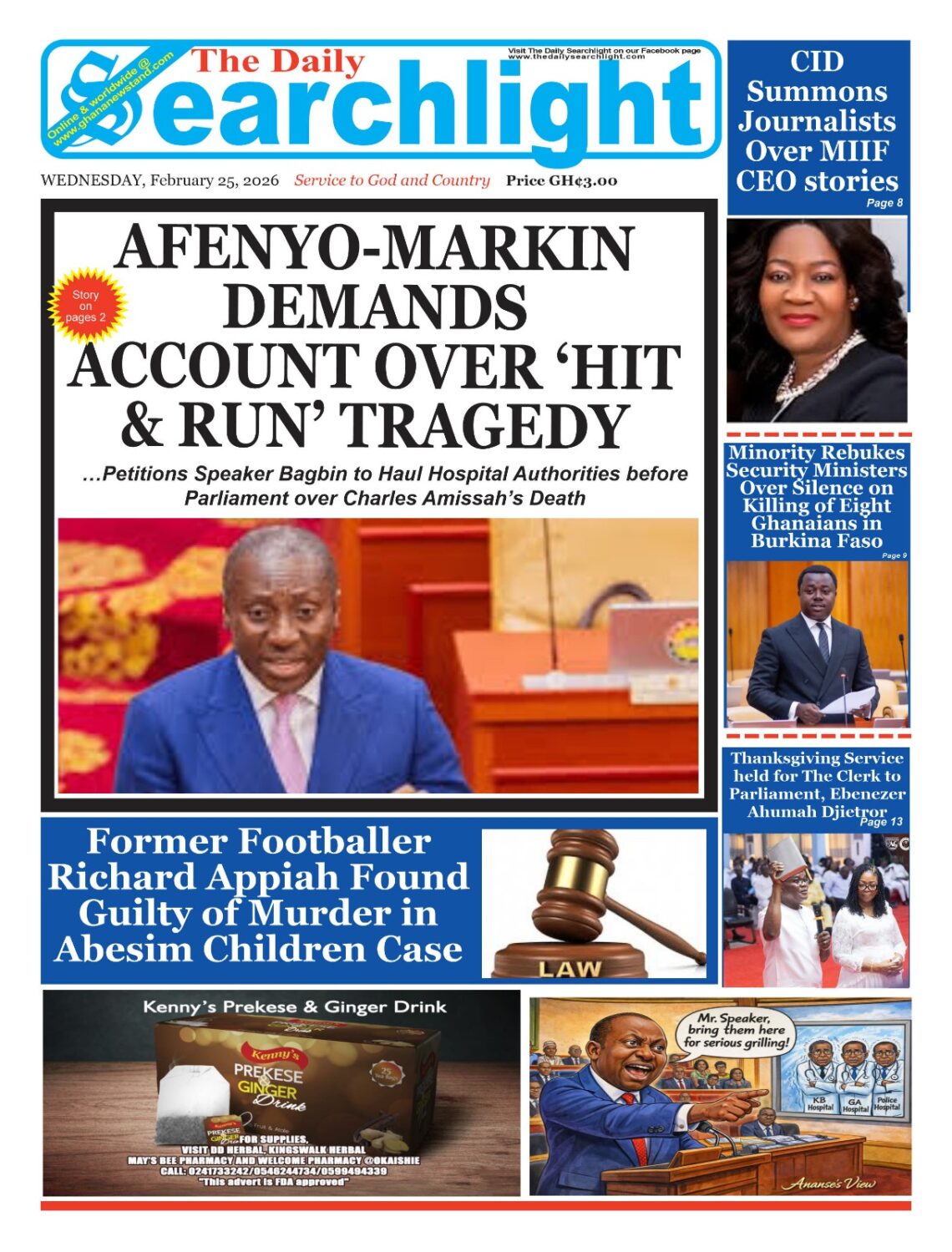 Newspaper headlines: Wednesday, February 25, 2026 Date: 25 February 2026 By Vincent Ashitey Category: general news Shares Share Tweet Email Share Here are the front pages of some of Ghana’s newspapers today.