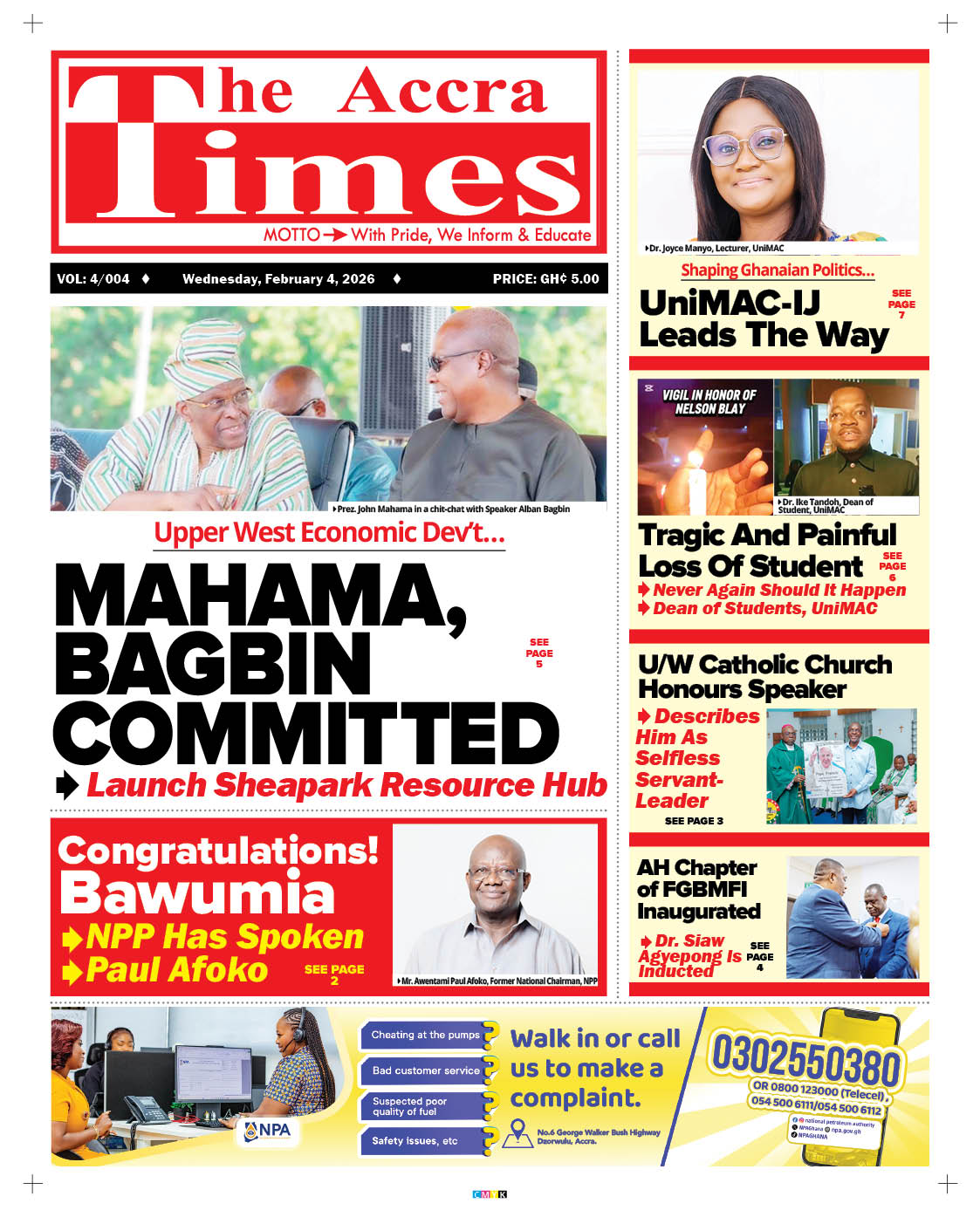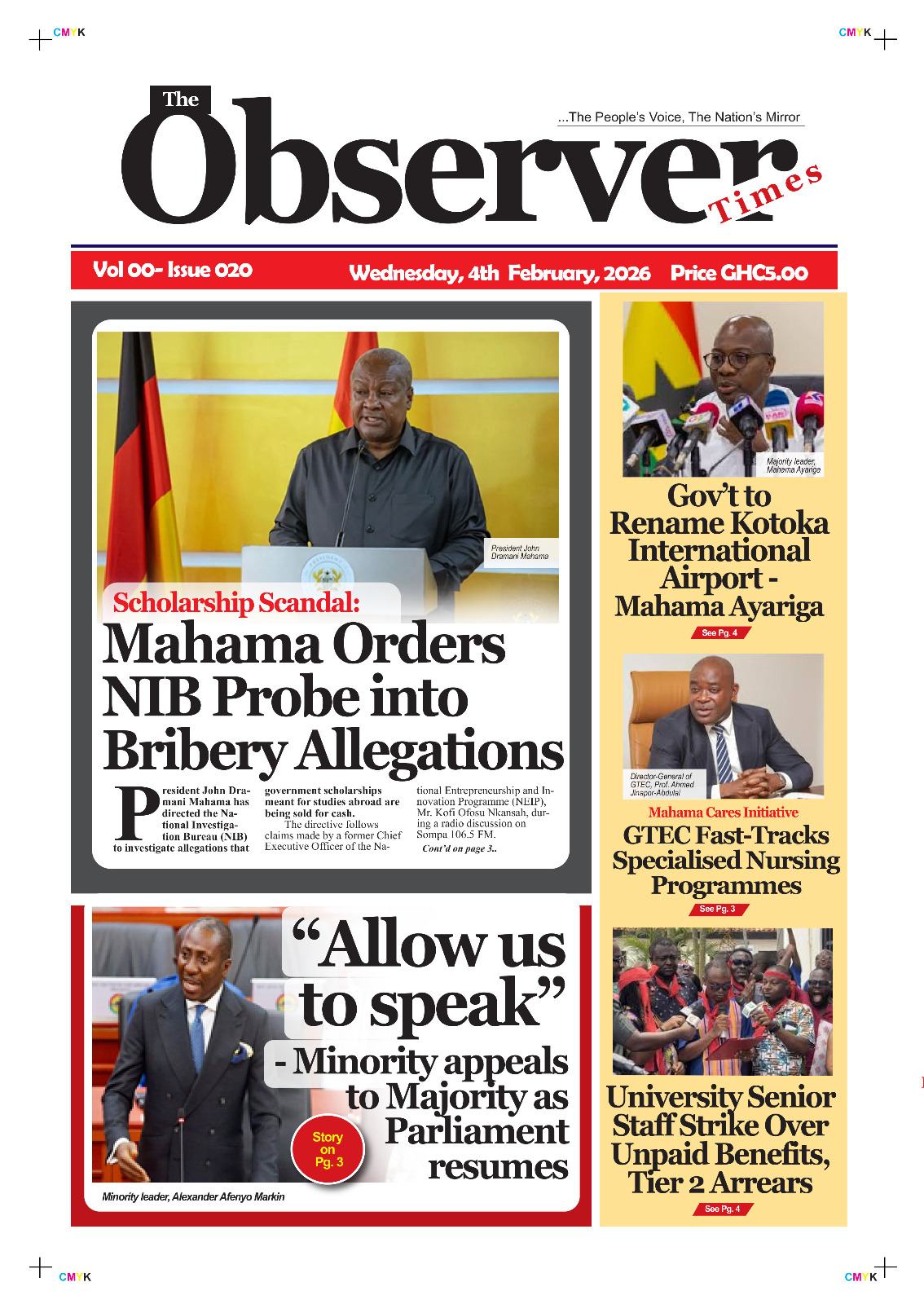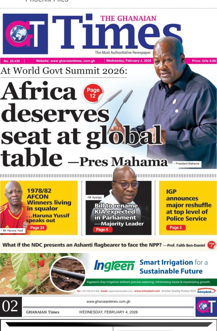 Newspaper headlines: Wednesday, February 4, 2026 Date: 04 February 2026 By Vincent Ashitey Category: general news Shares Share Tweet Email Share Here are the front pages of some of Ghana’s newspapers today.