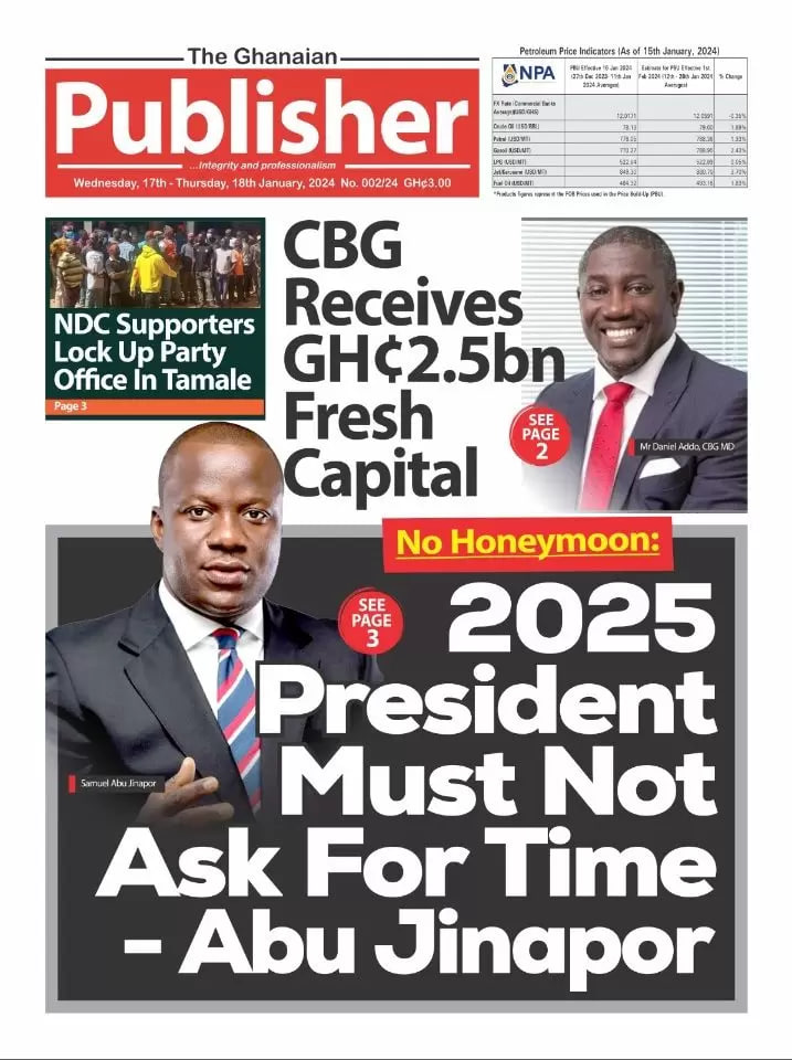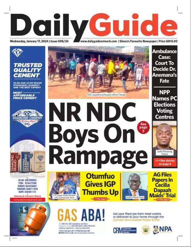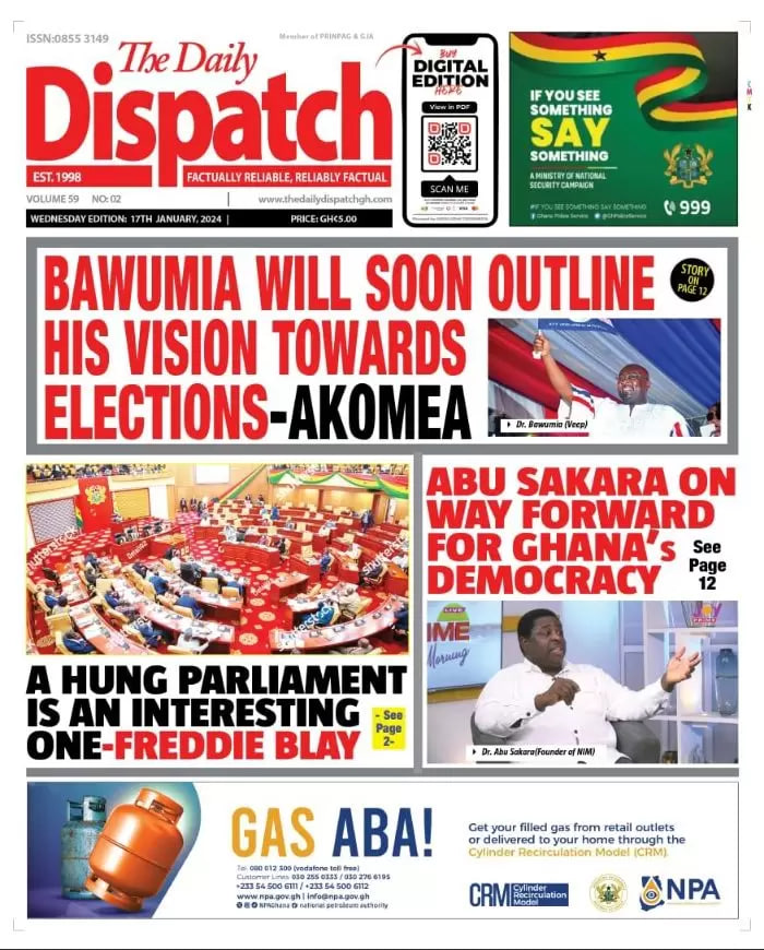 Newspaper headlines: Wednesday, January 17, 2024 Date: 17 January 2024 By Vincent Ashitey Category: general news Shares Share Tweet Email Share Here are the front pages of some of Ghana’s newspapers today.