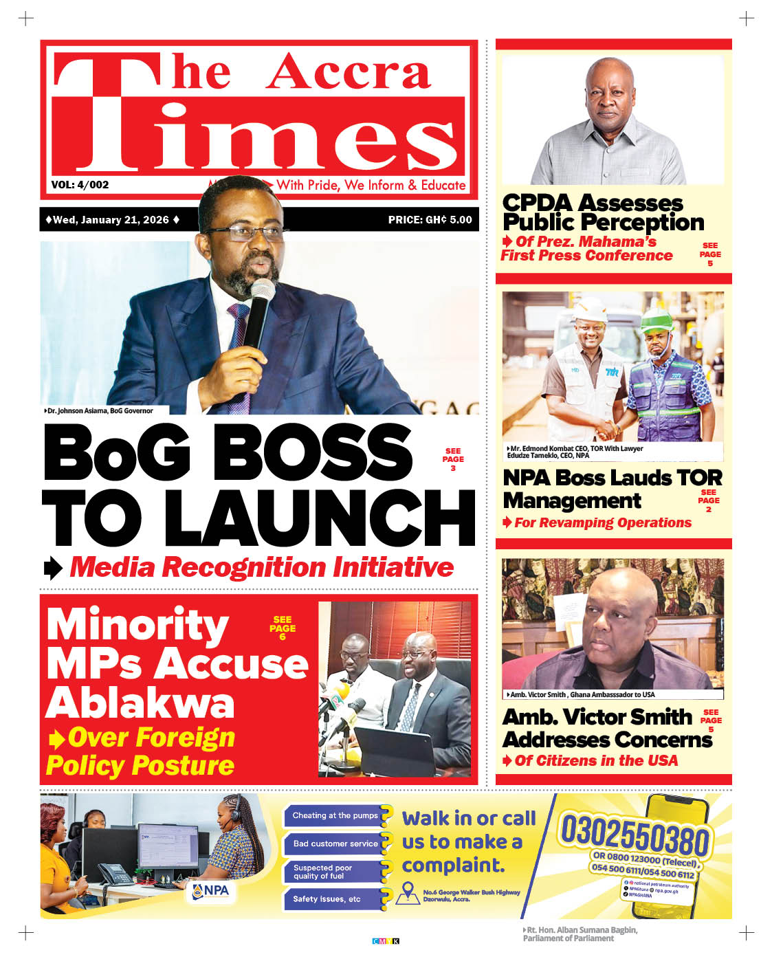 Newspaper headlines: Wednesday, January 21, 2026 Date: 21 January 2026 By Vincent Ashitey Category: general news Shares Share Tweet Email Share Here are the front pages of some of Ghana’s newspapers today.
