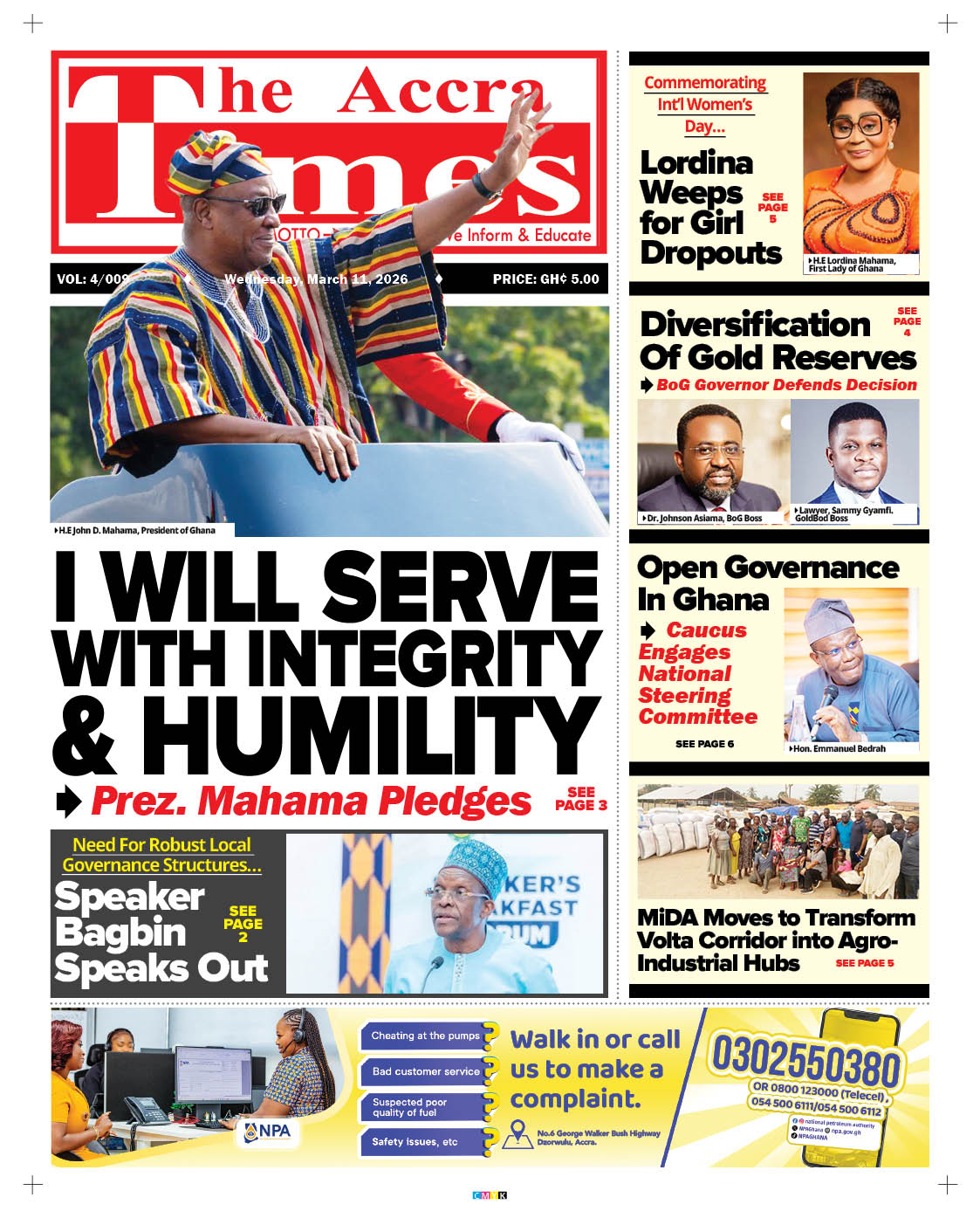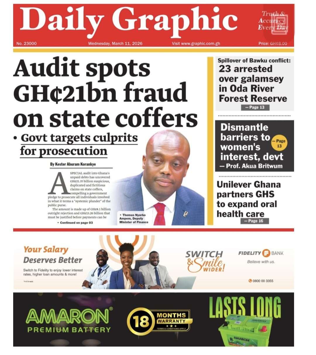 Newspaper headlines: Wednesday, March 11, 2026 Date: 11 March 2026 By Vincent Ashitey Category: general news Shares Share Tweet Email Share Here are the front pages of some of Ghana’s newspapers today.
