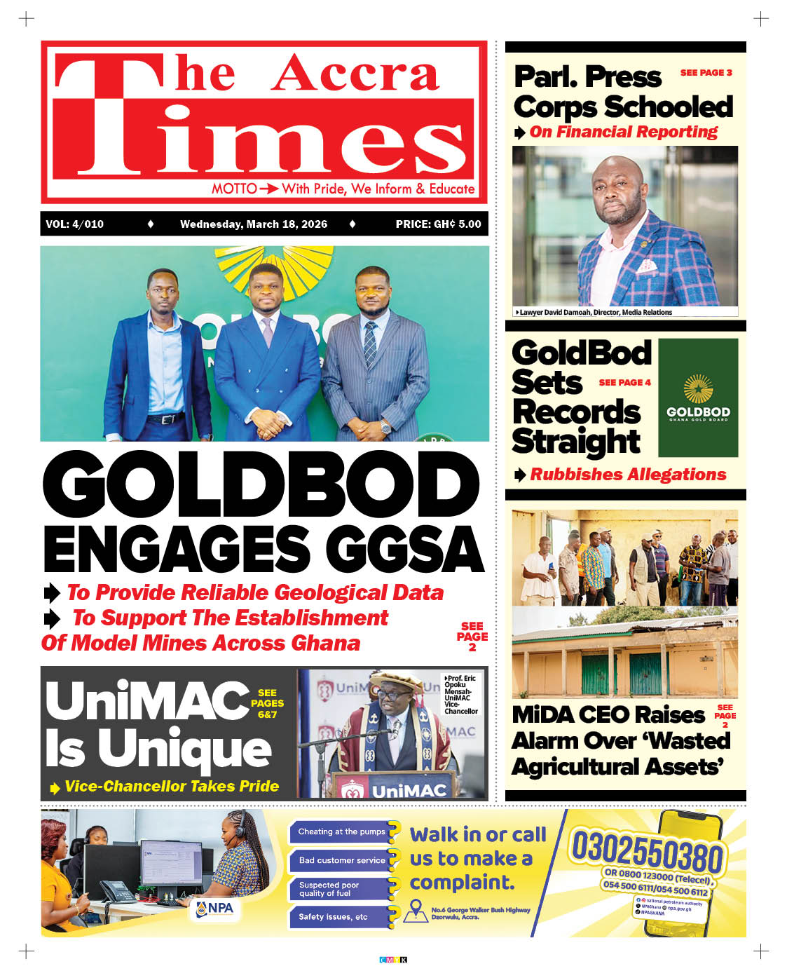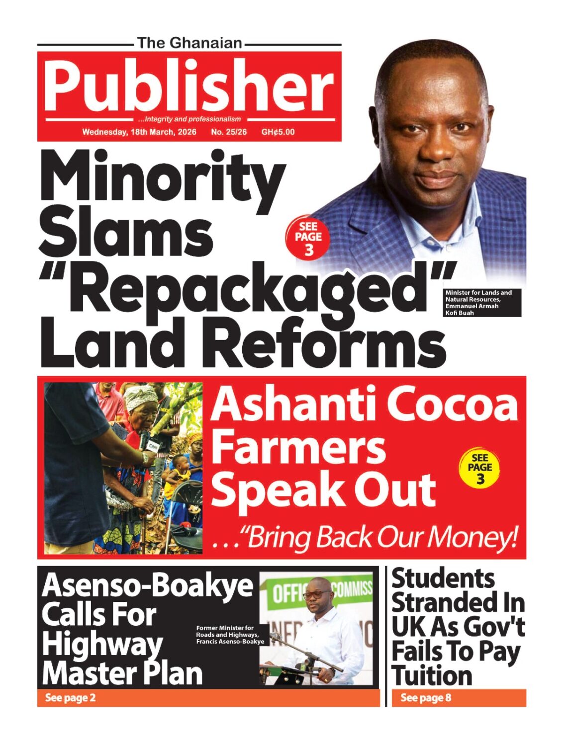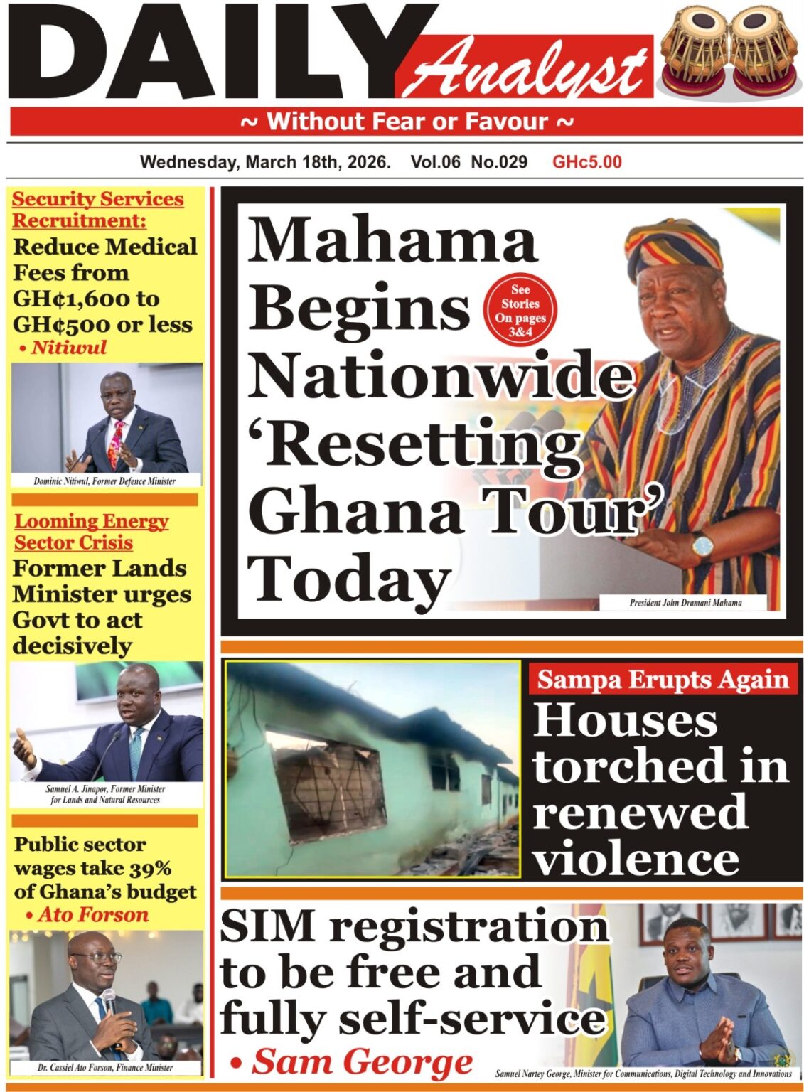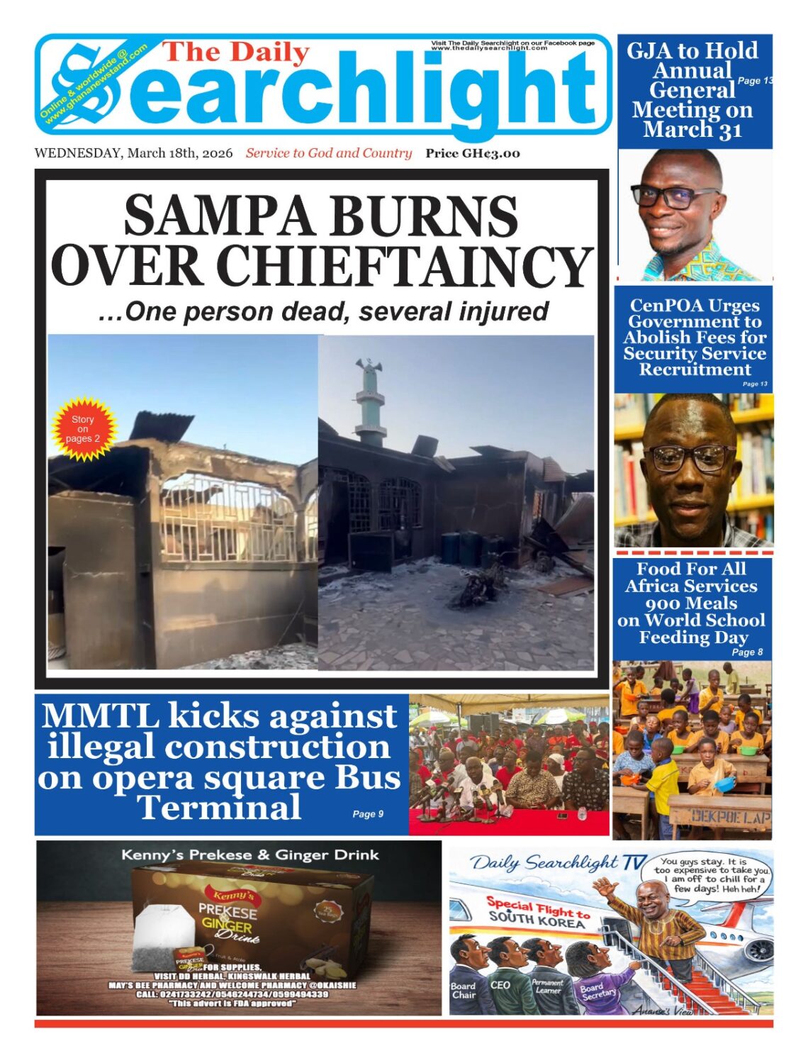 Newspaper headlines: Wednesday, March 18, 2026 Date: 18 March 2026 By Vincent Ashitey Category: general news Shares Share Tweet Email Share Here are the front pages of some of Ghana’s newspapers today.