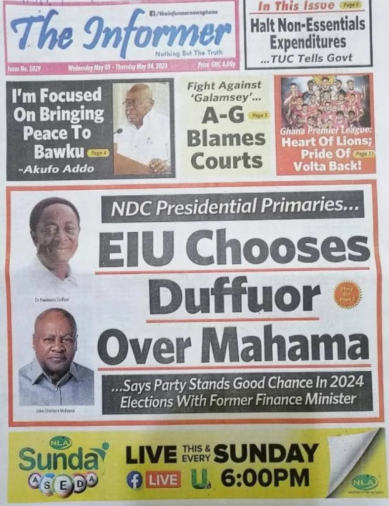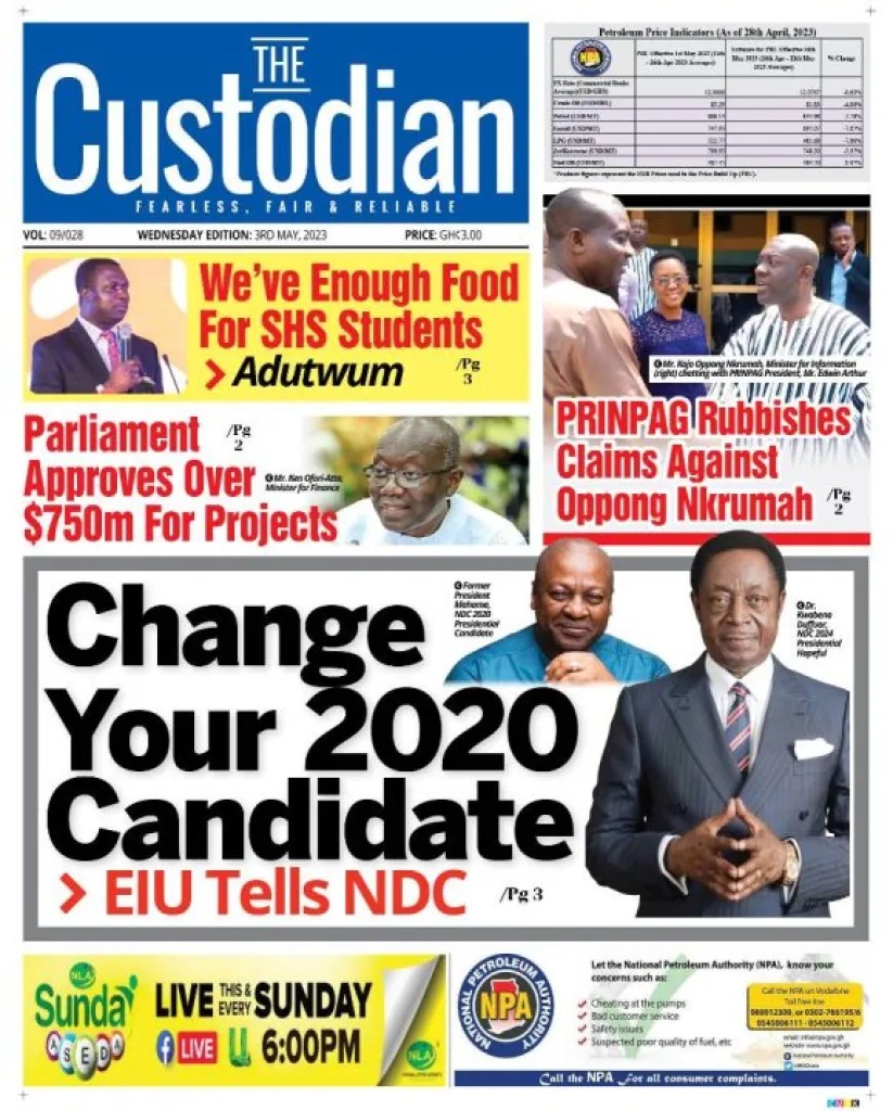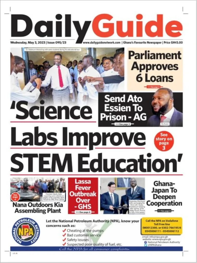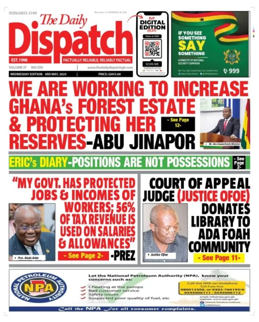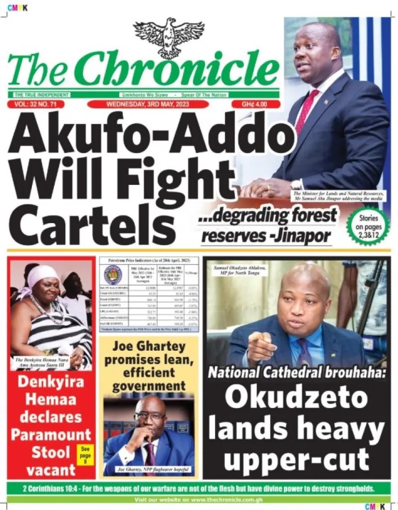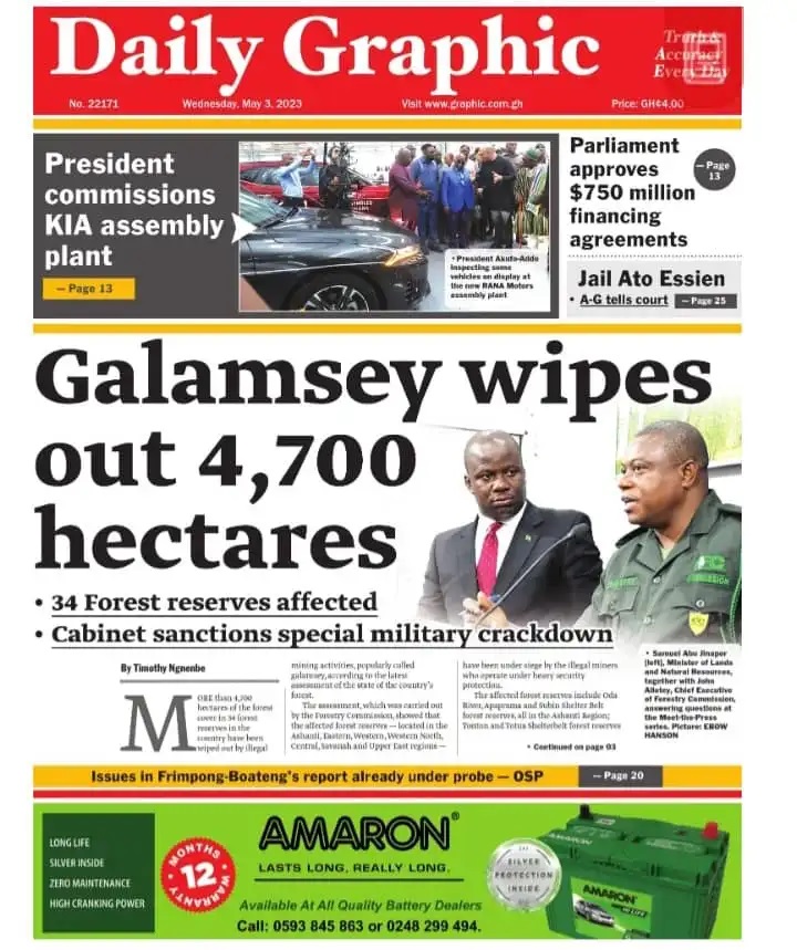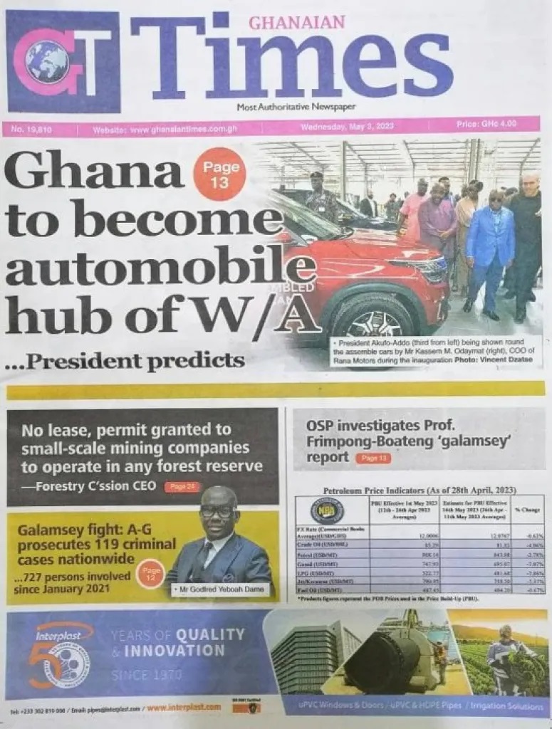 Newspaper headlines: Wednesday, May 3, 2023 Date: 03 May 2023 By Vincent Ashitey Category: general news Shares Share Tweet Email Share Here are the front pages of some of Ghana's newspapers today.