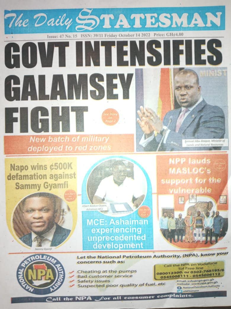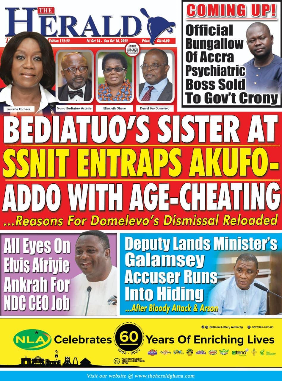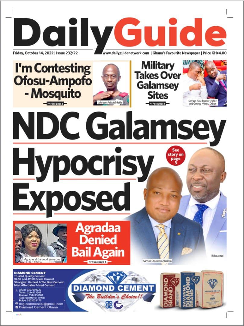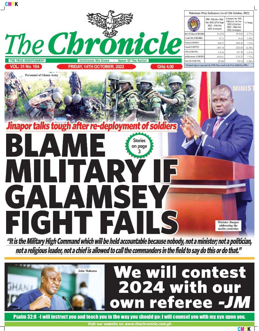 Newspapers headlines: Friday, October 14, 2022 Date: 14 October 2022 By Vincent Ashitey Category: general news Shares Share Tweet Email Share Here are the front pages of some of Ghana's newspapers today.