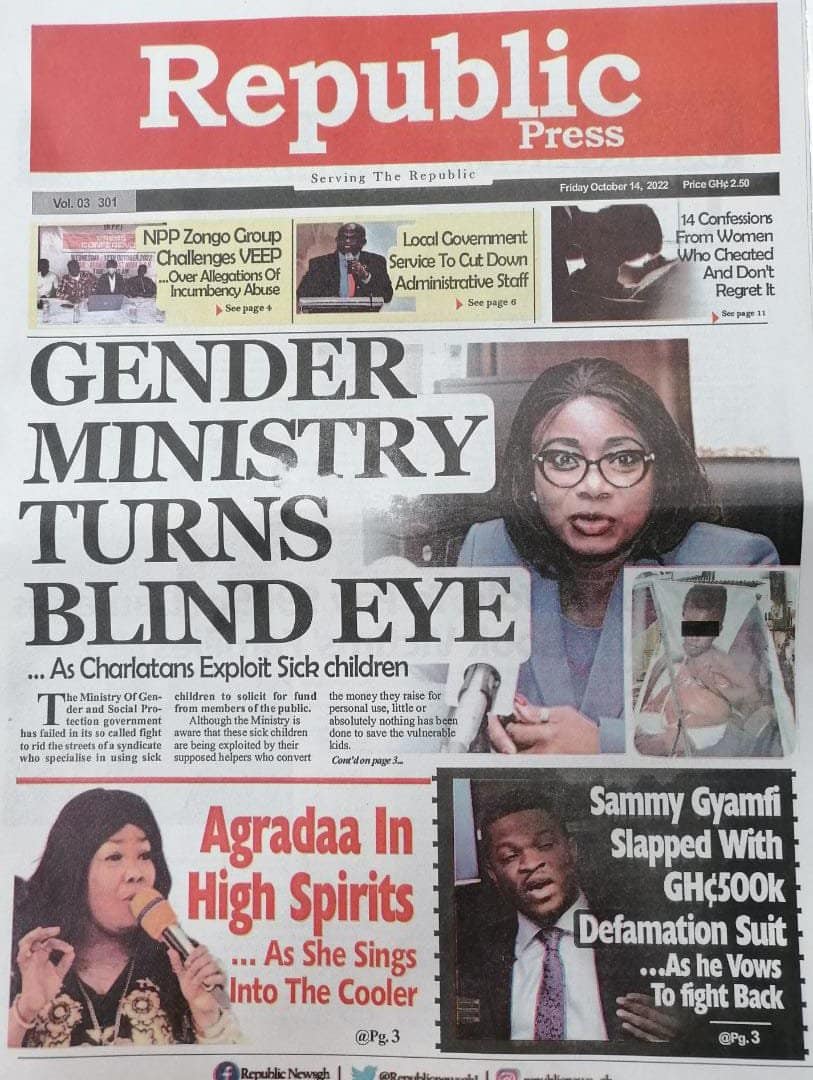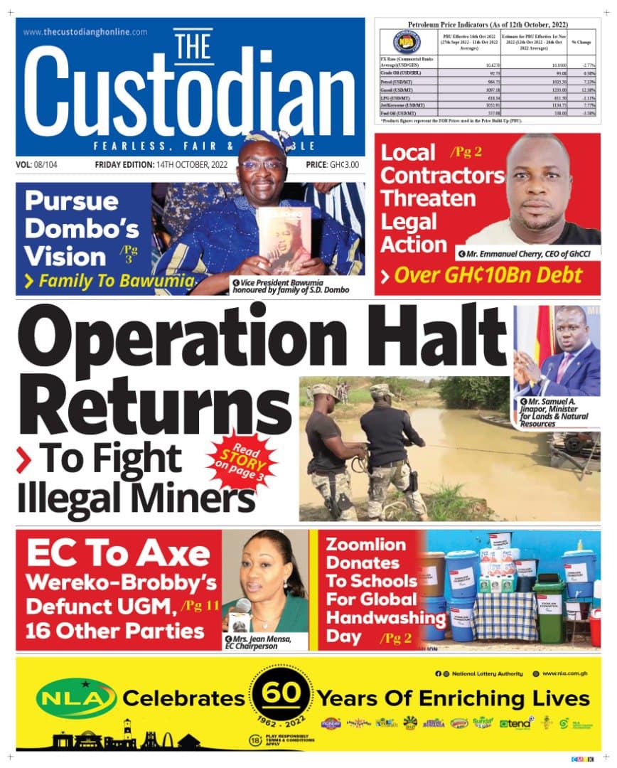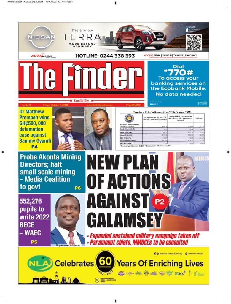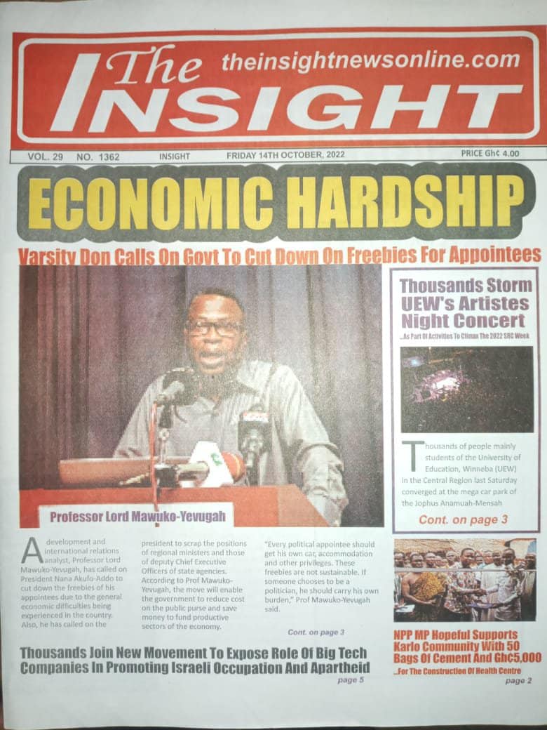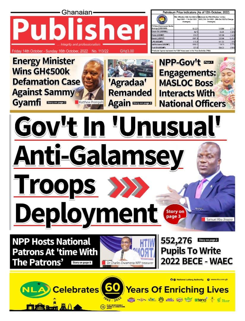 Newspapers headlines: Friday, October 14, 2022 Date: 14 October 2022 By Vincent Ashitey Category: general news Shares Share Tweet Email Share Here are the front pages of some of Ghana's newspapers today.