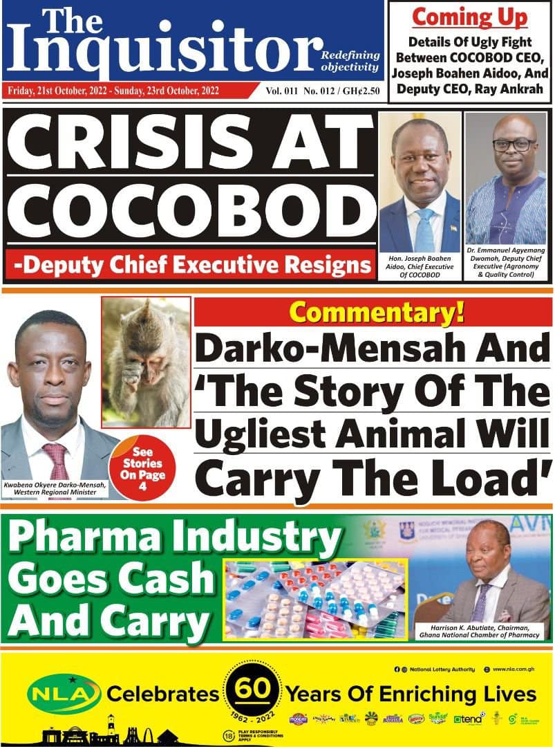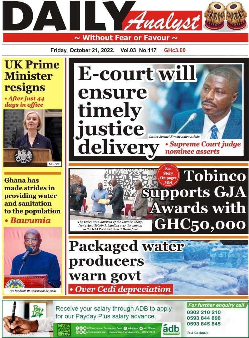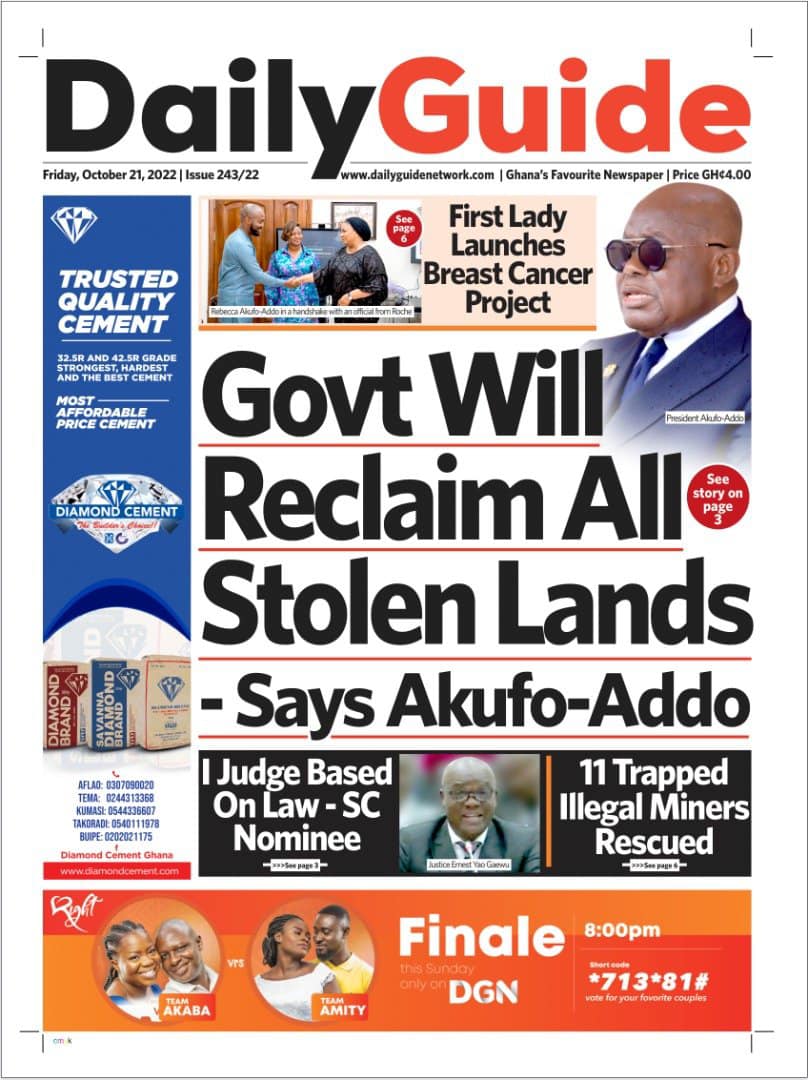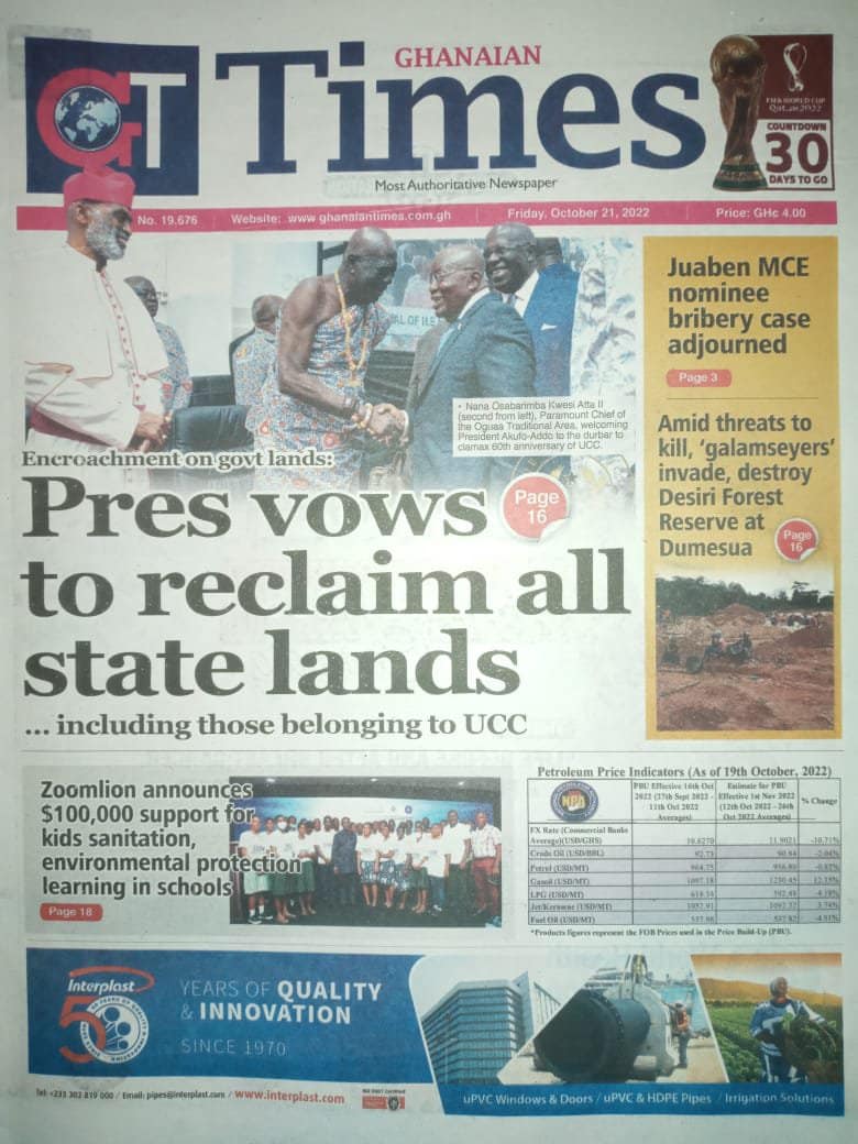 Newspapers headlines: Friday, October 21, 2022 Date: 21 October 2022 By Vincent Ashitey Category: general news Shares Share Tweet Email Share Here are the front pages of some of Ghana's newspapers today.
