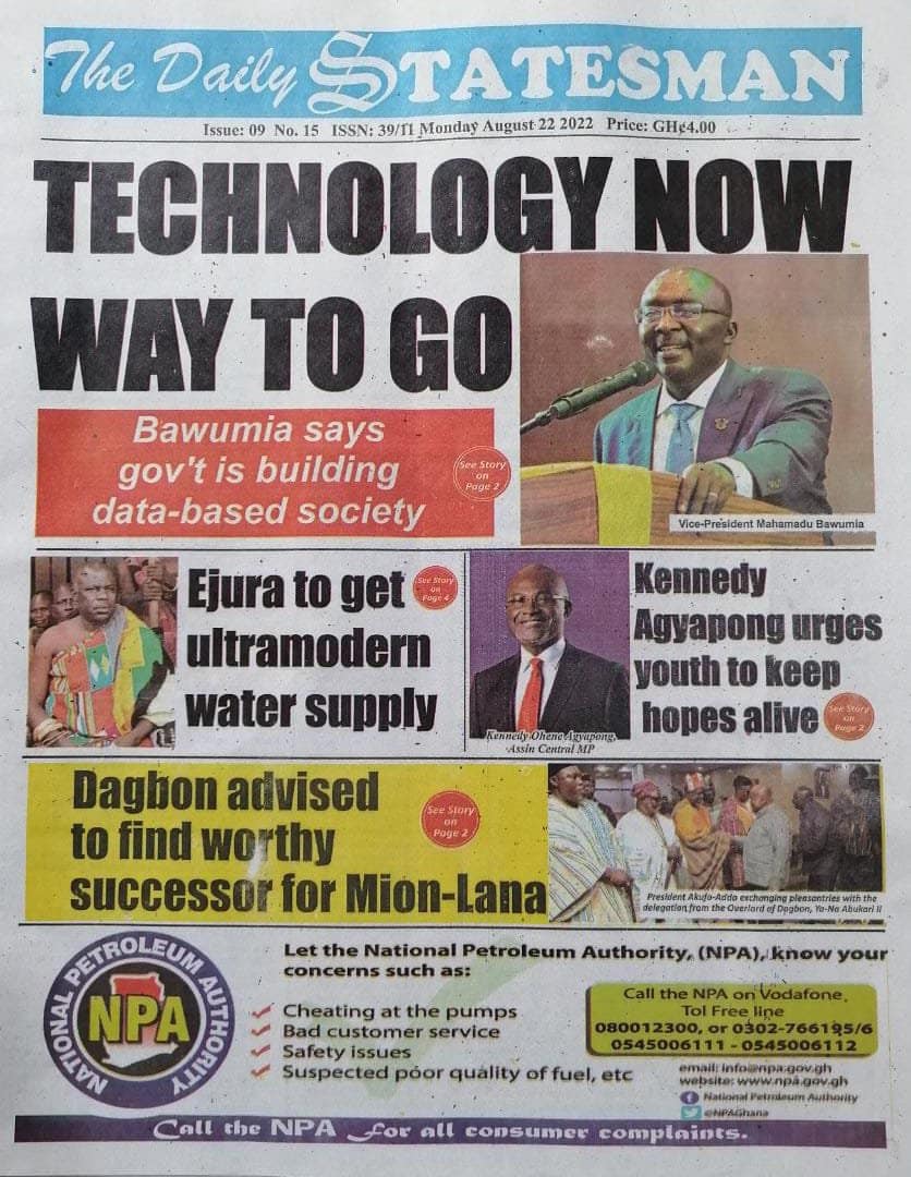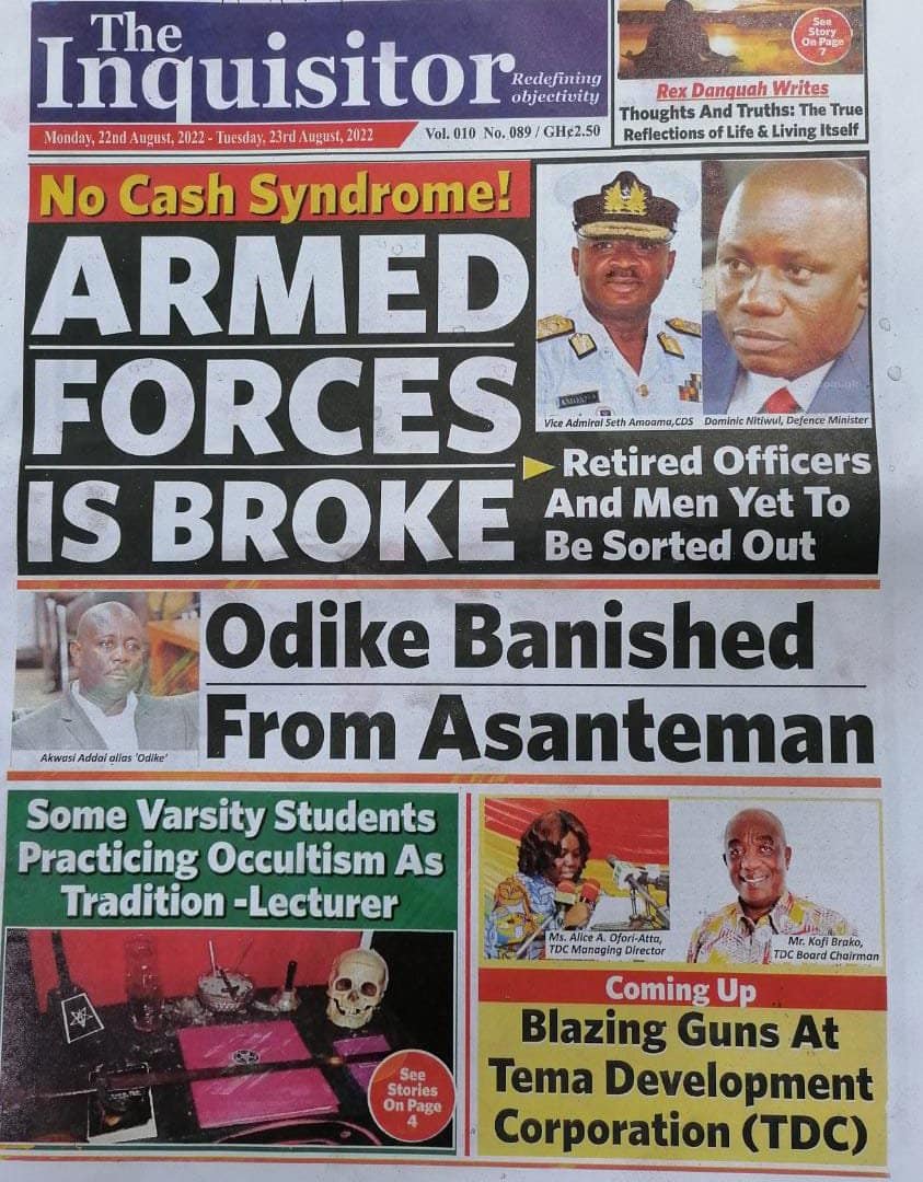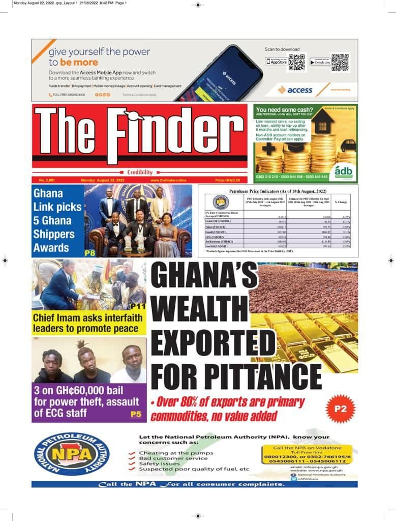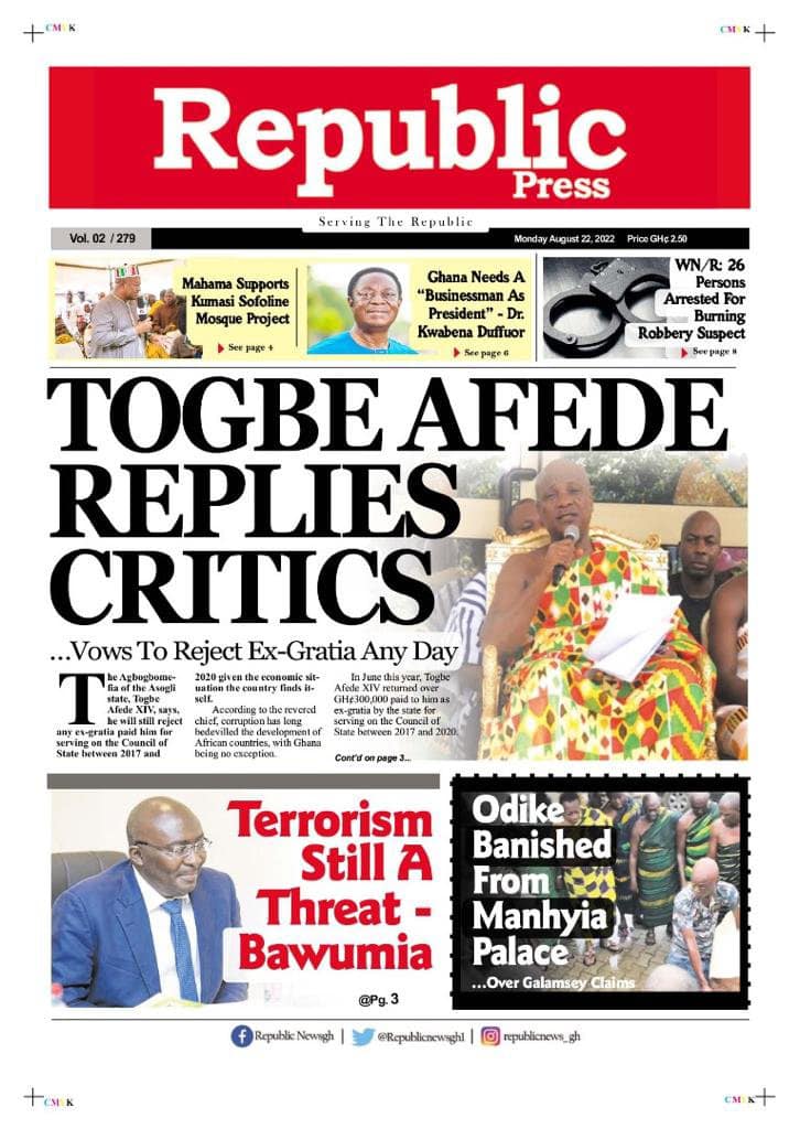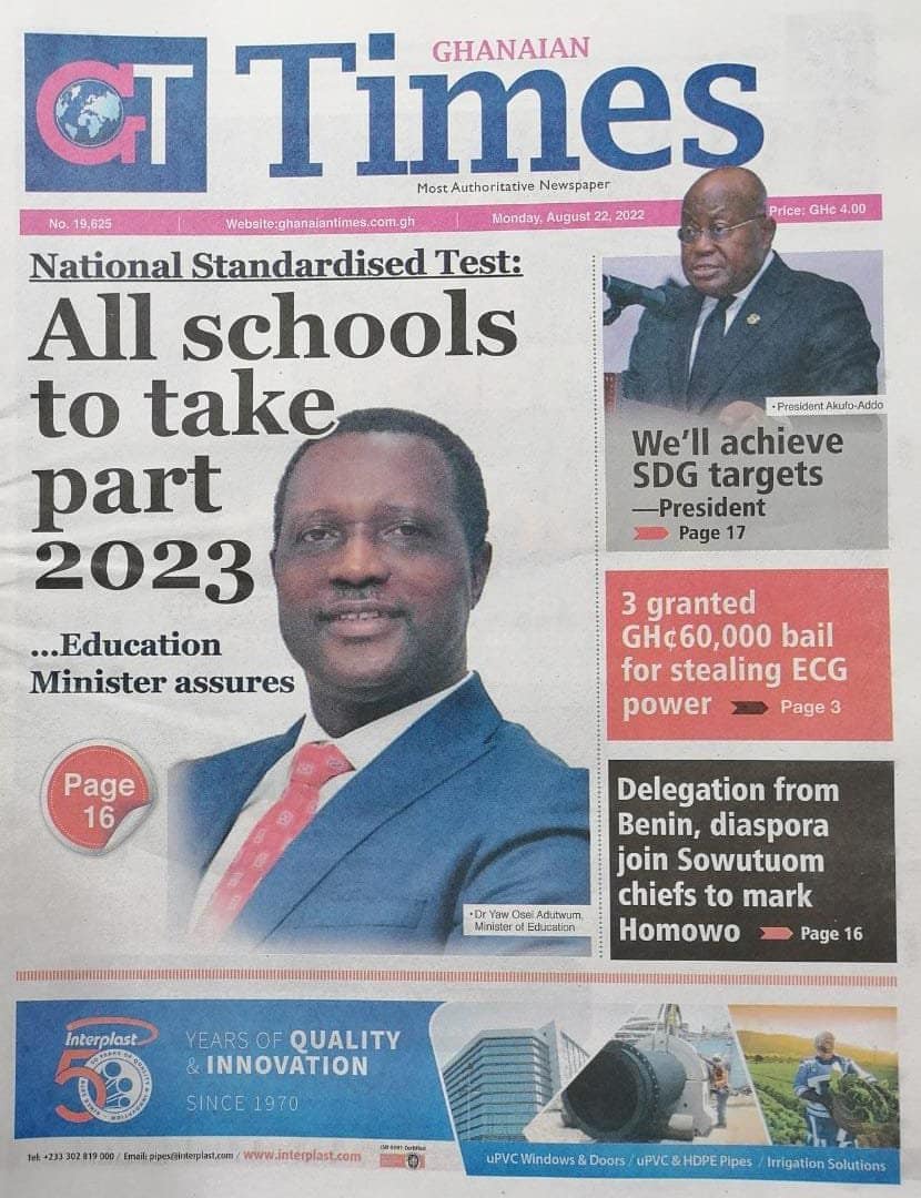 Newspapers headlines: Monday, August 22, 2022 Date: 22 August 2022 By Vincent Ashitey Category: general news Shares Share Tweet Email Share Here are the front pages of some of Ghana's newspapers today.