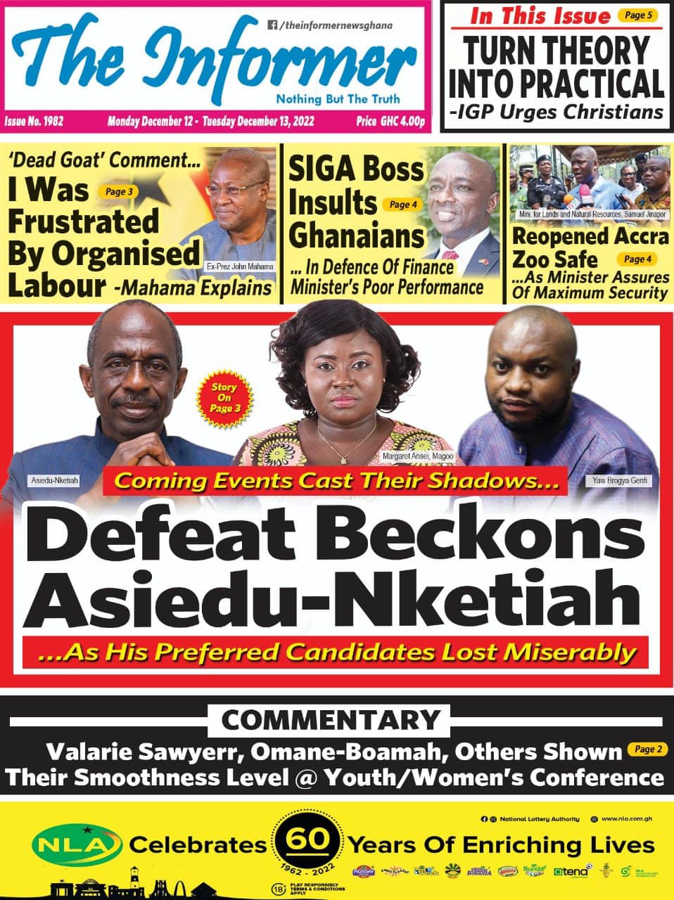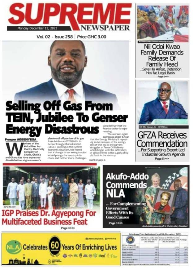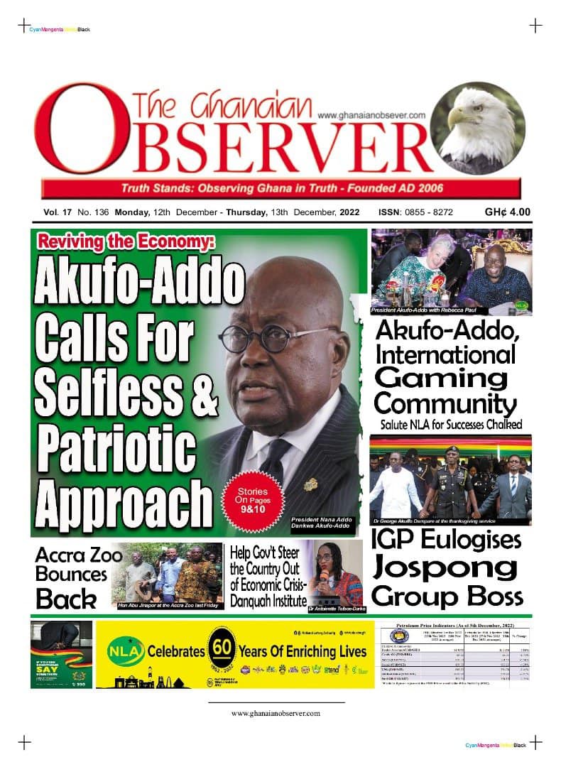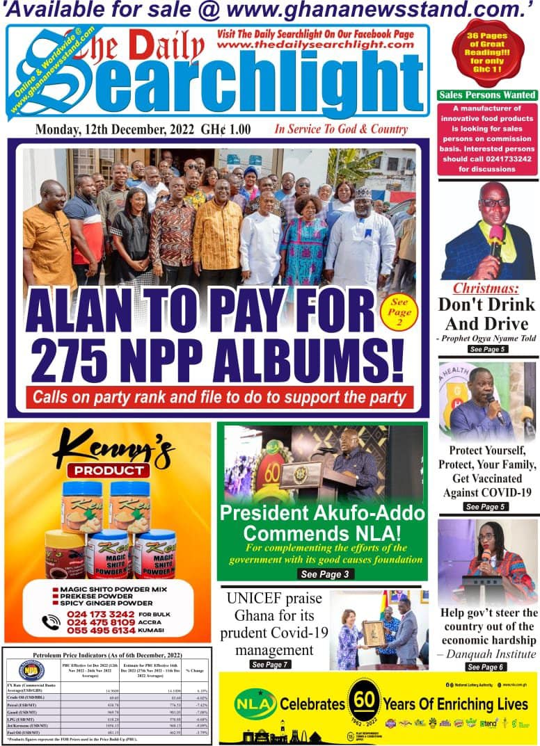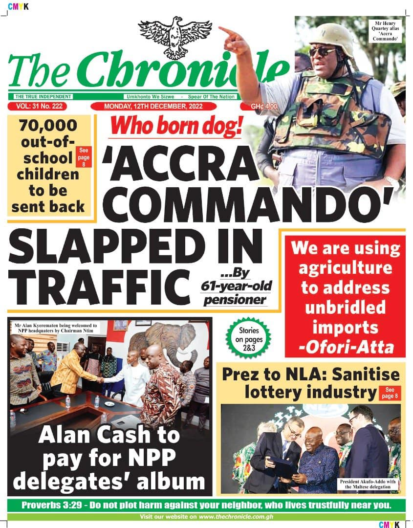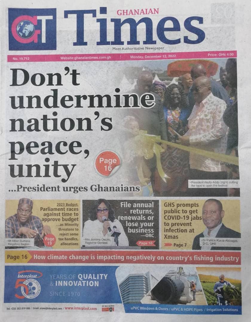 Newspapers headlines: Monday, December 12, 2022 Date: 12 December 2022 By Vincent Ashitey Category: general news Shares Share Tweet Email Share Here are the front pages of some of Ghana's newspapers today.