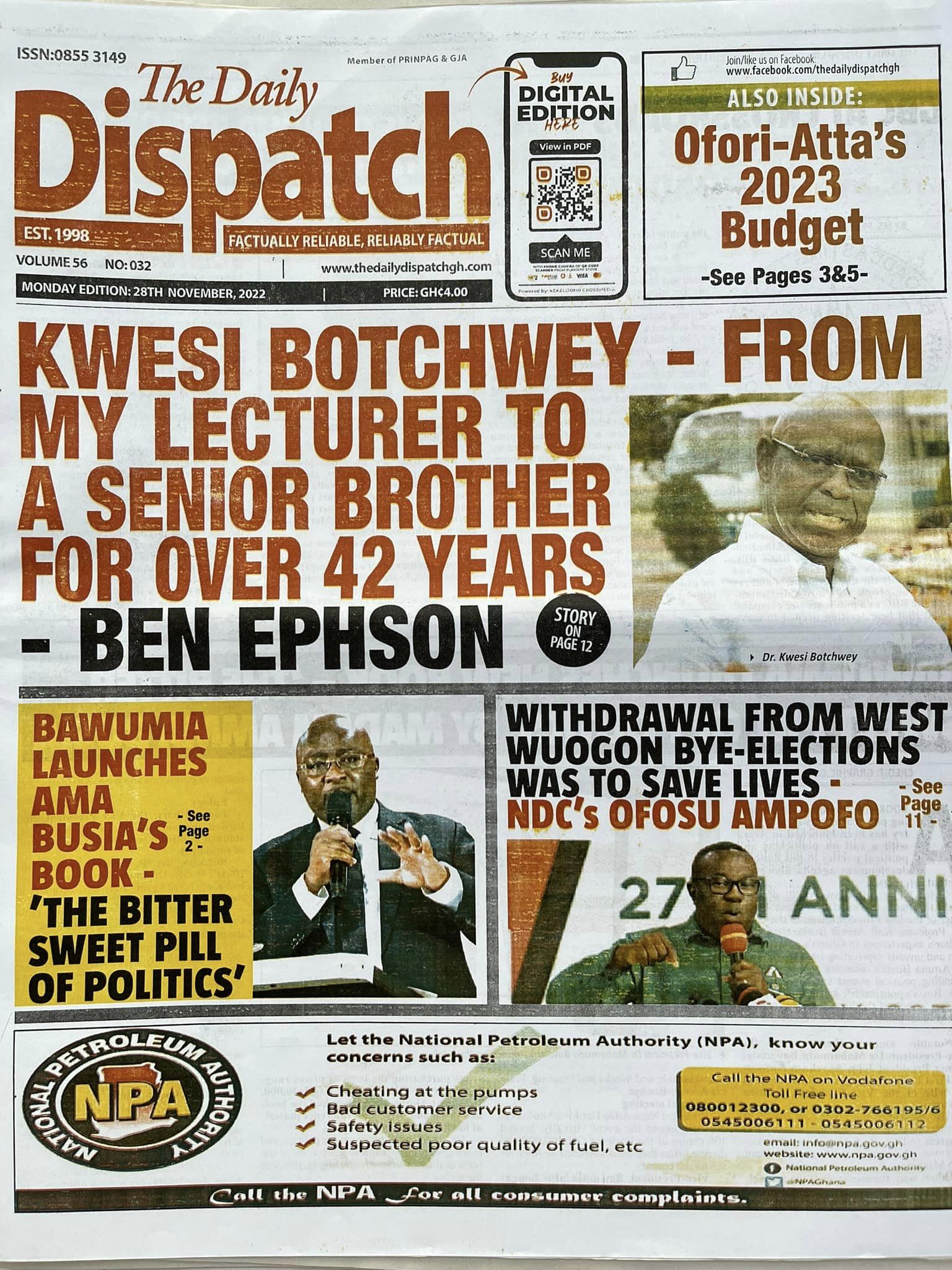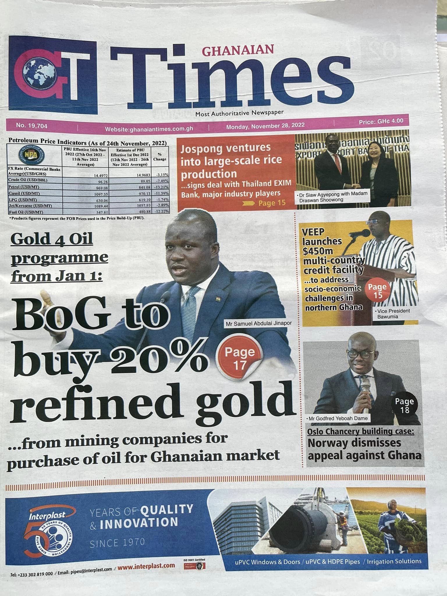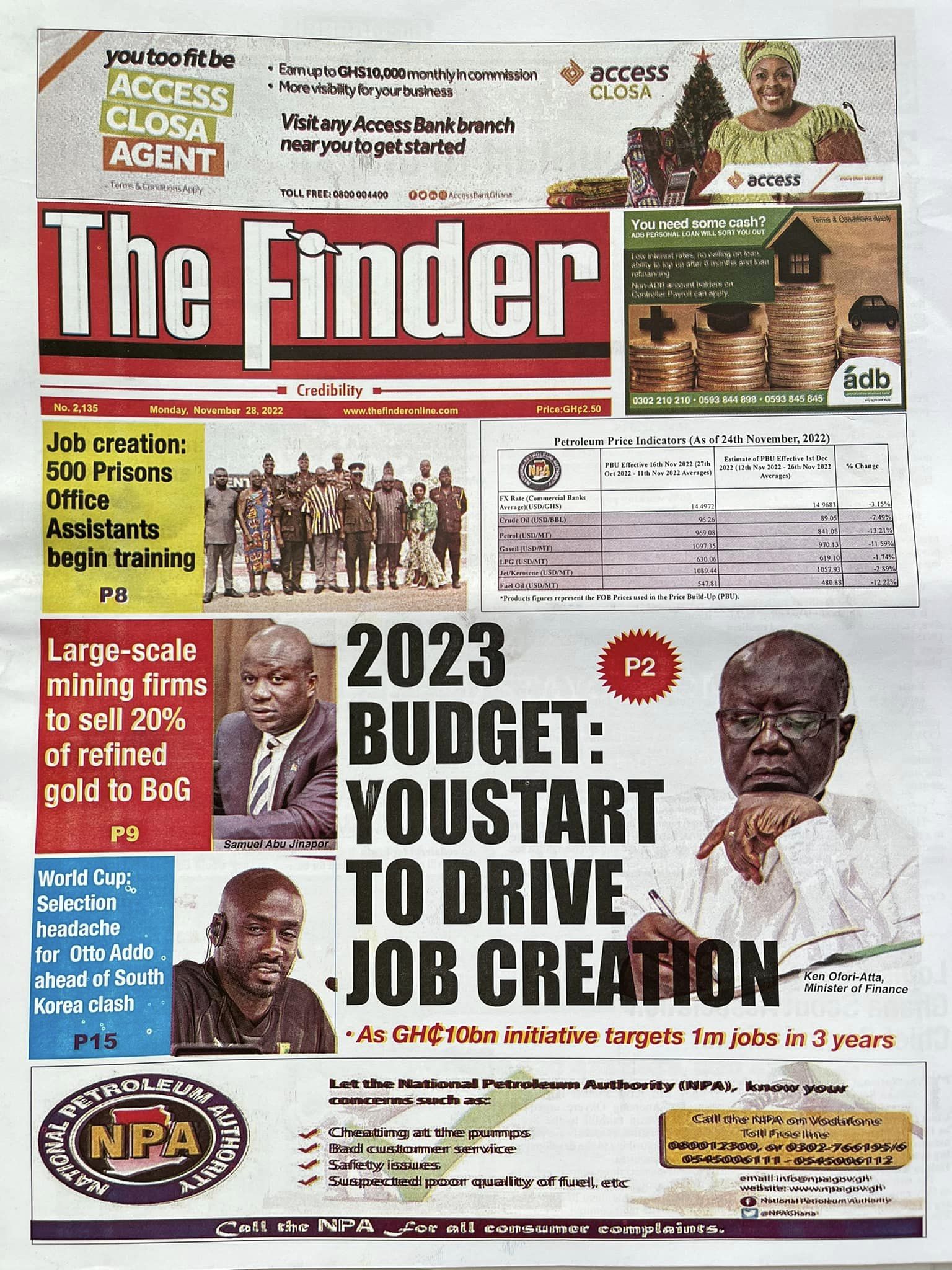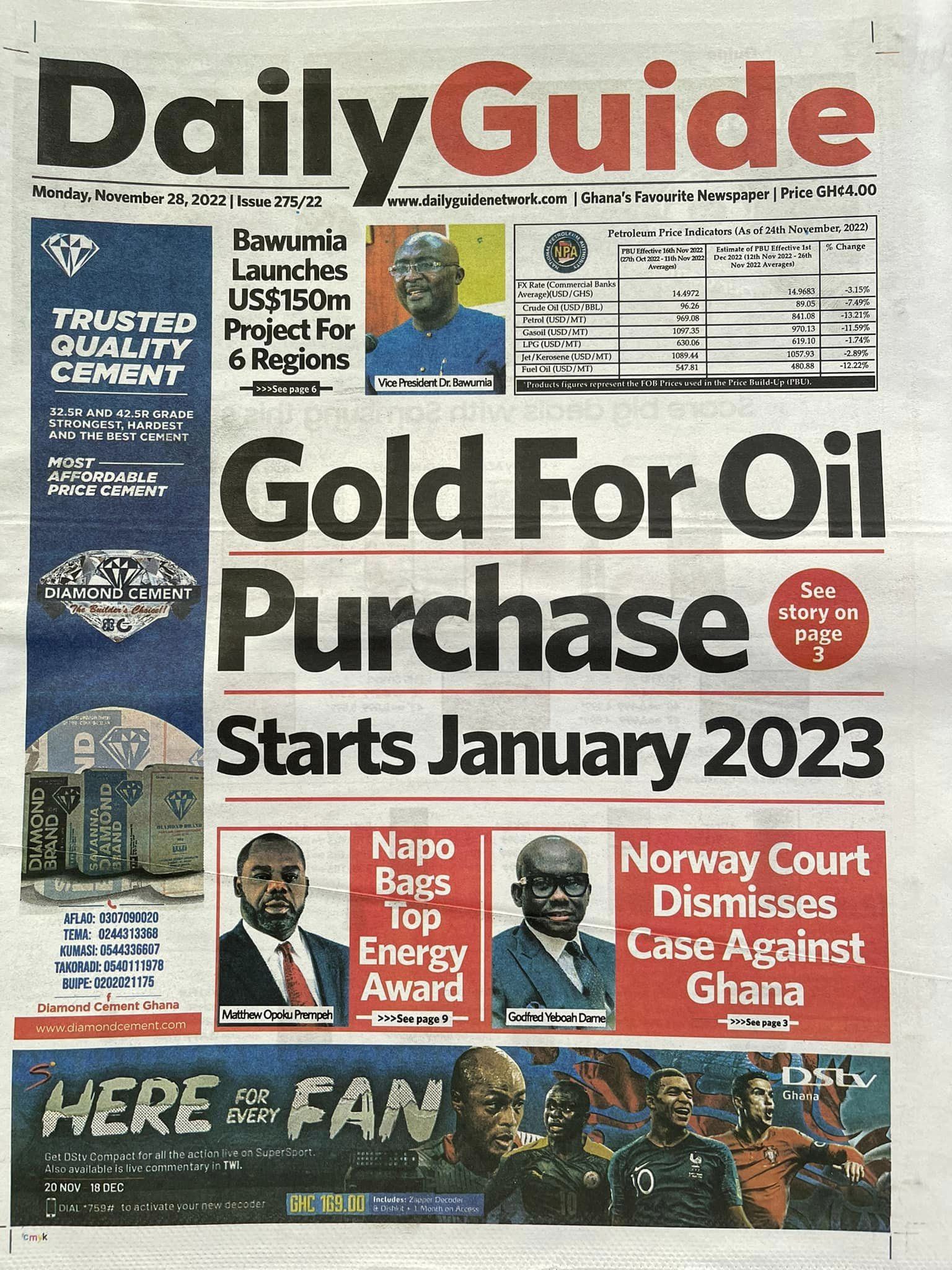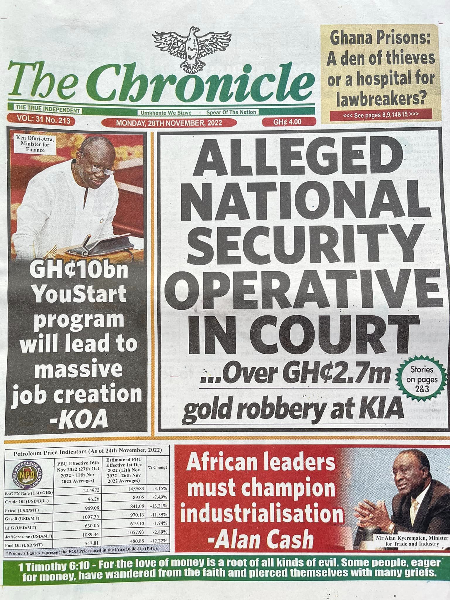 Newspapers headlines: Monday, November 28, 2022 Date: 28 November 2022 By Vincent Ashitey Category: general news Shares Share Tweet Email Share Here are the front pages of some of Ghana's newspapers today.
