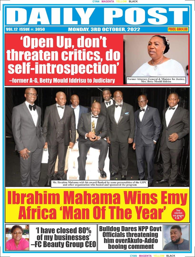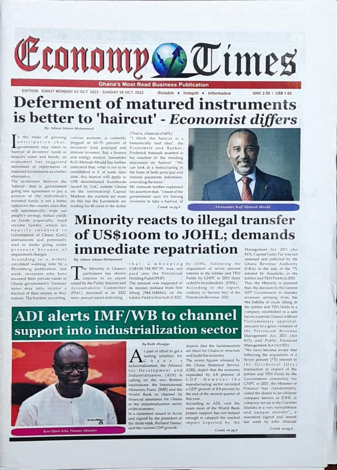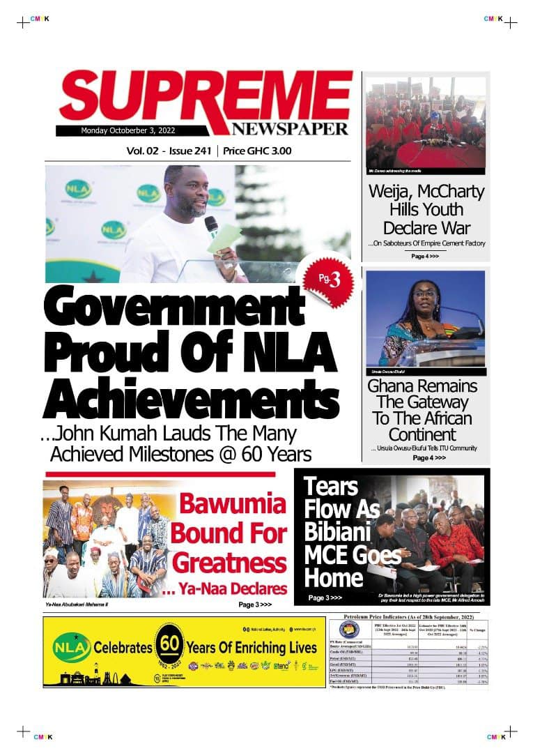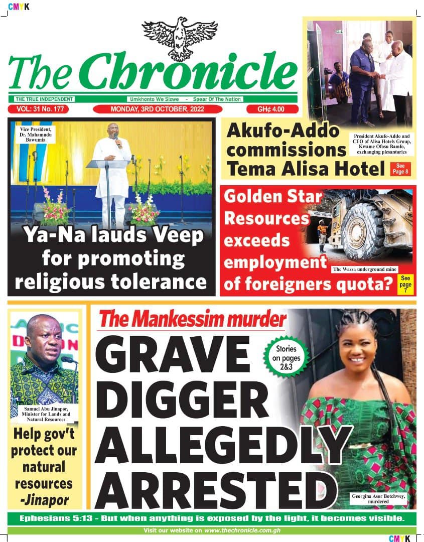Newspapers headlines: Monday, October 3, 2022 Date: 03 October 2022 By Vincent Ashitey Category: general news Shares Share Tweet Email Share Here are the front pages of some of Ghana's newspapers today.