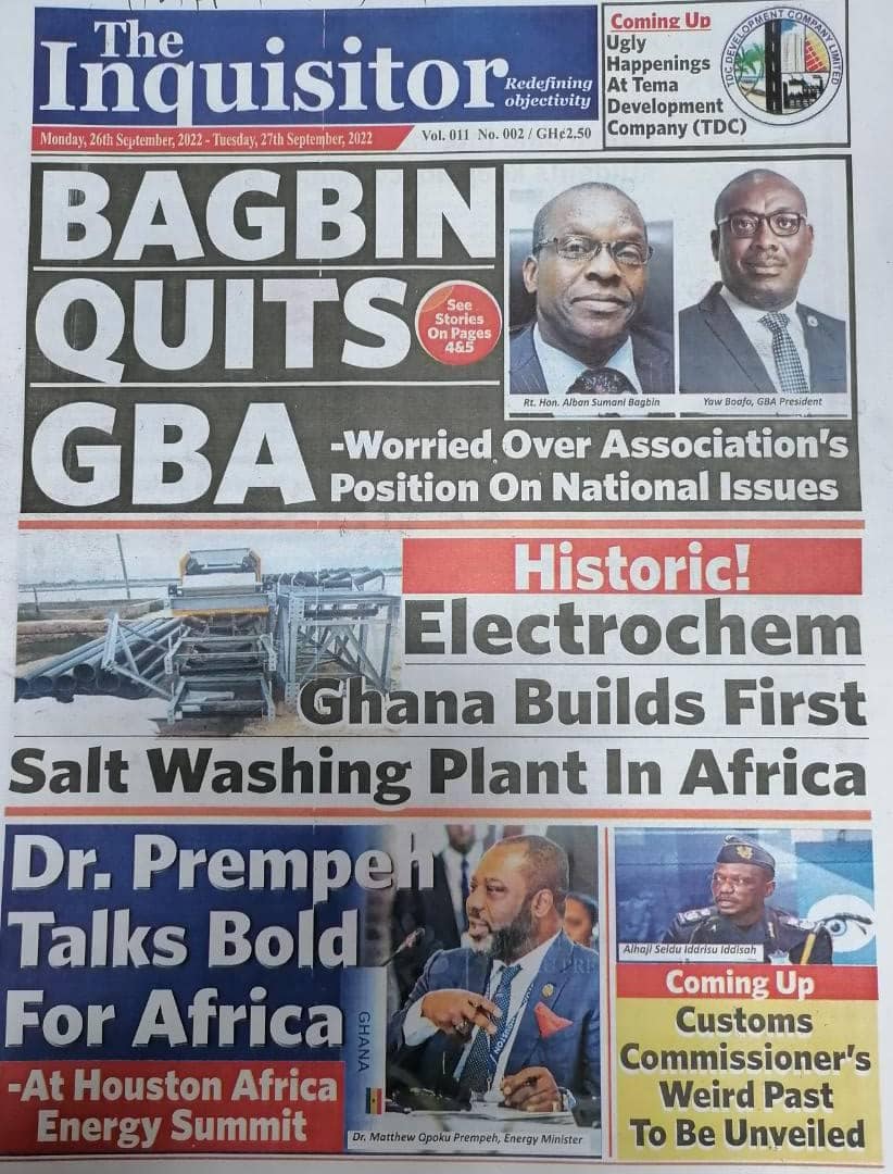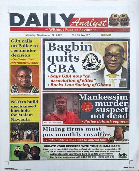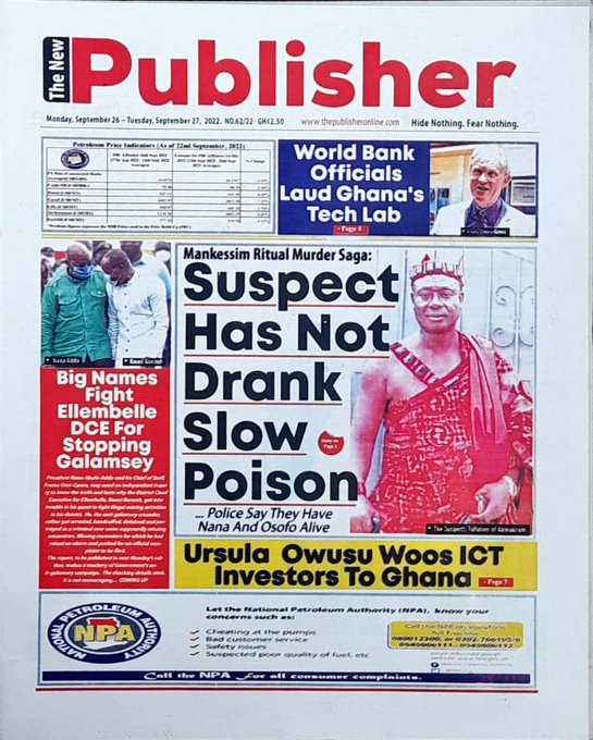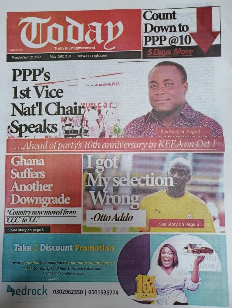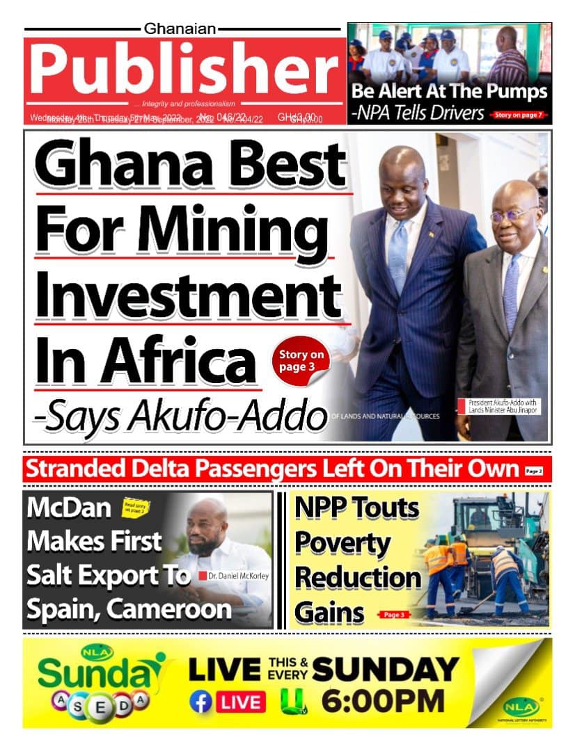 Newspapers headlines: Monday, September 26, 2022 Date: 26 September 2022 By Vincent Ashitey Category: general news Shares Share Tweet Email Share Here are the front pages of some of Ghana's newspapers today.