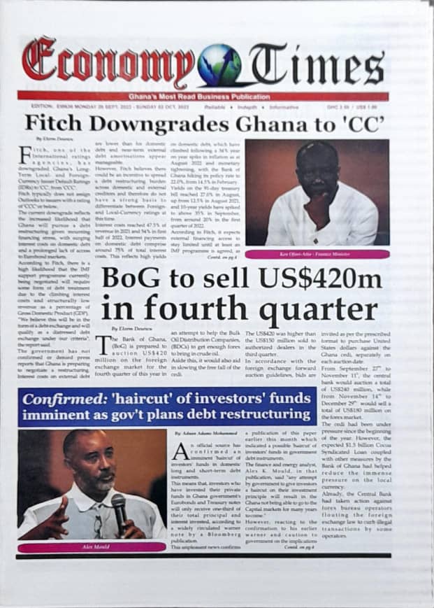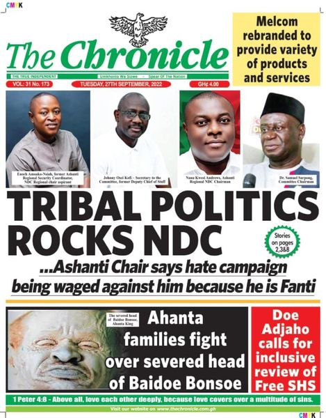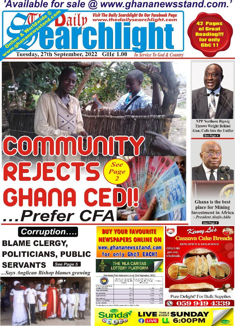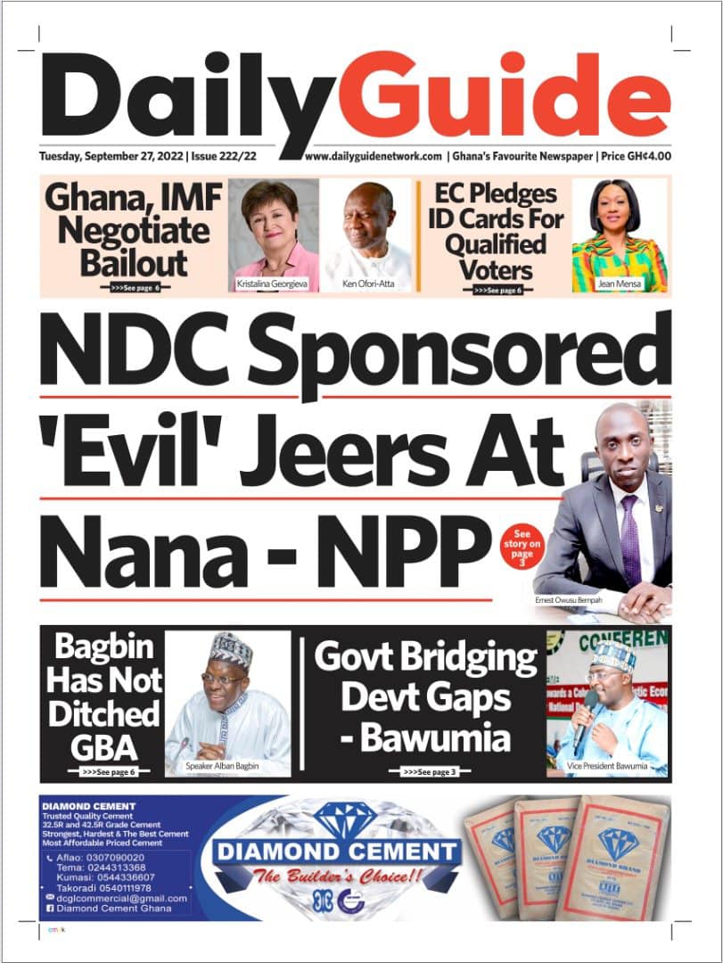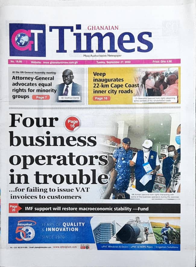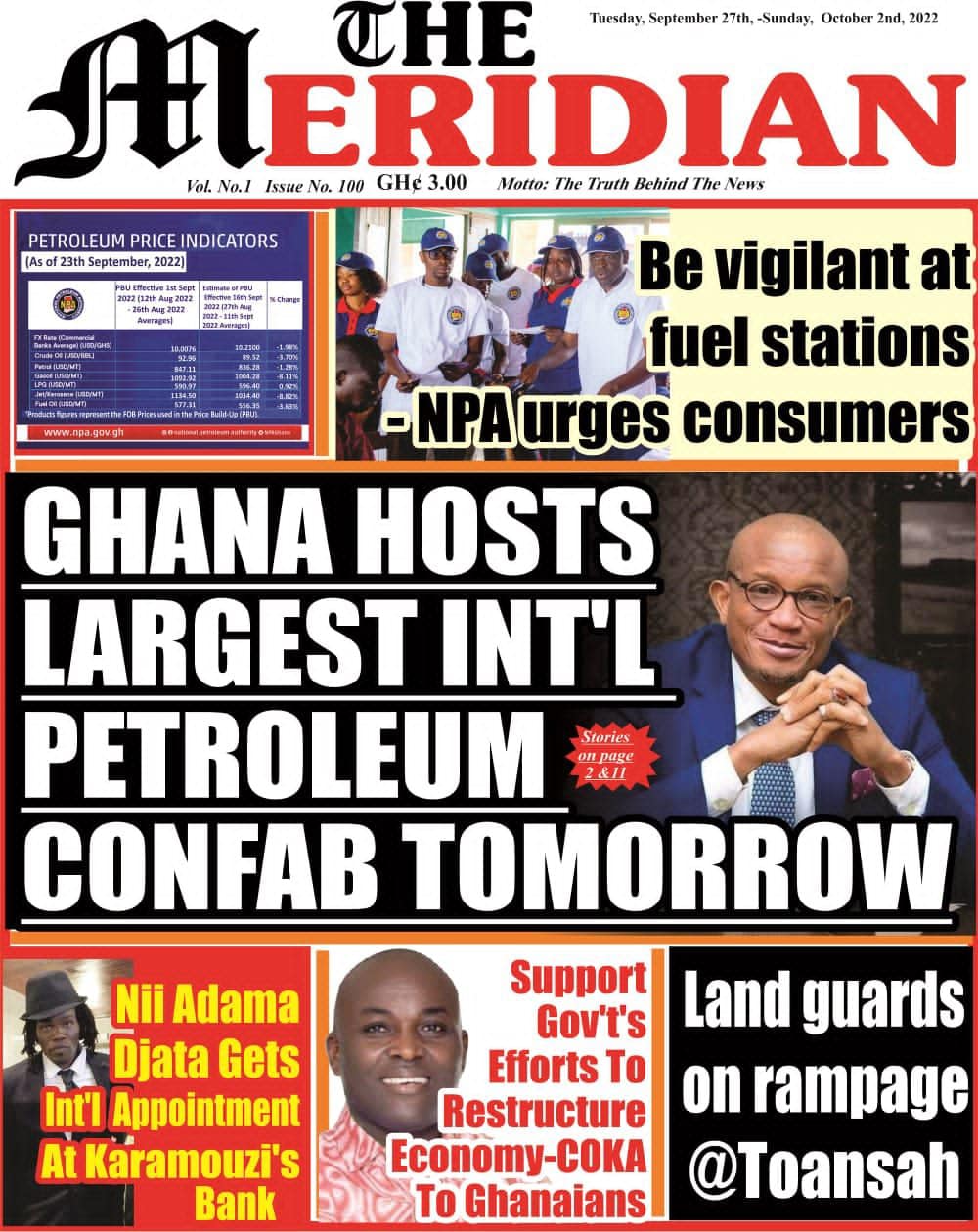 Newspapers headlines: Tuesday, September 27, 2022 Date: 27 September 2022 By Vincent Ashitey Category: general news Shares Share Tweet Email Share Here are the front pages of some of Ghana's newspapers today.