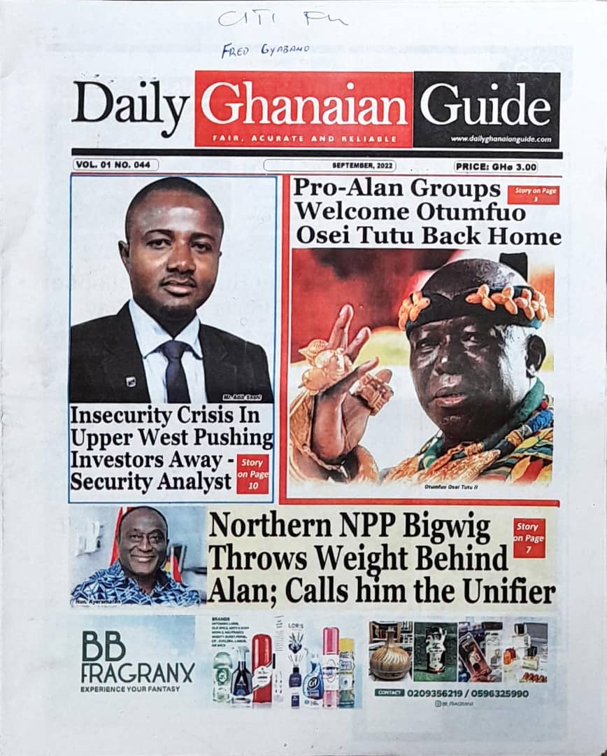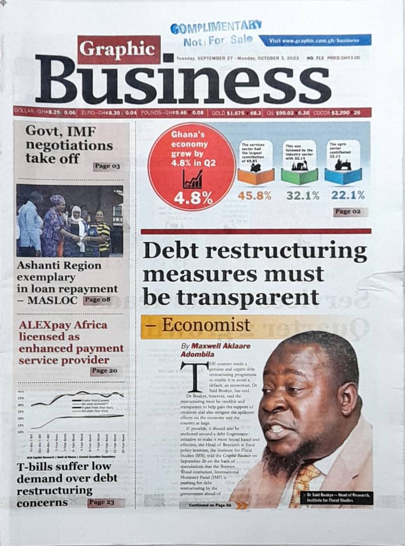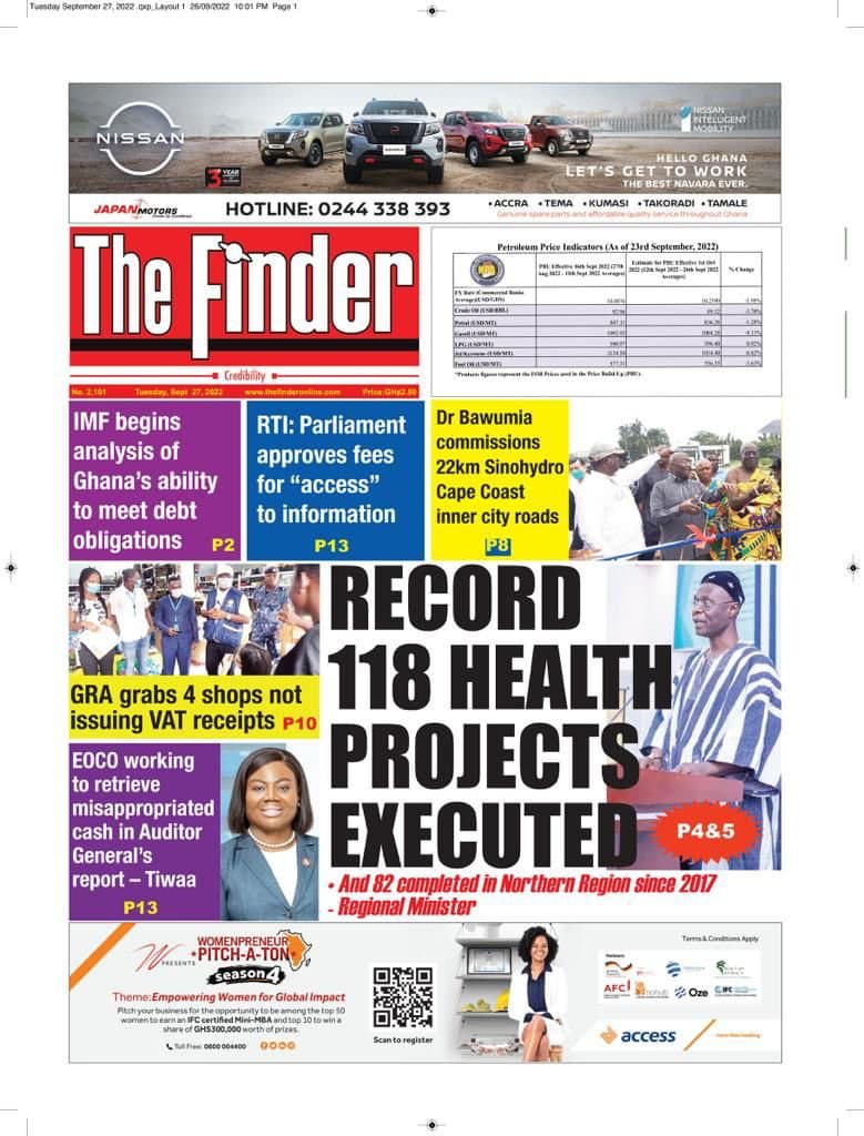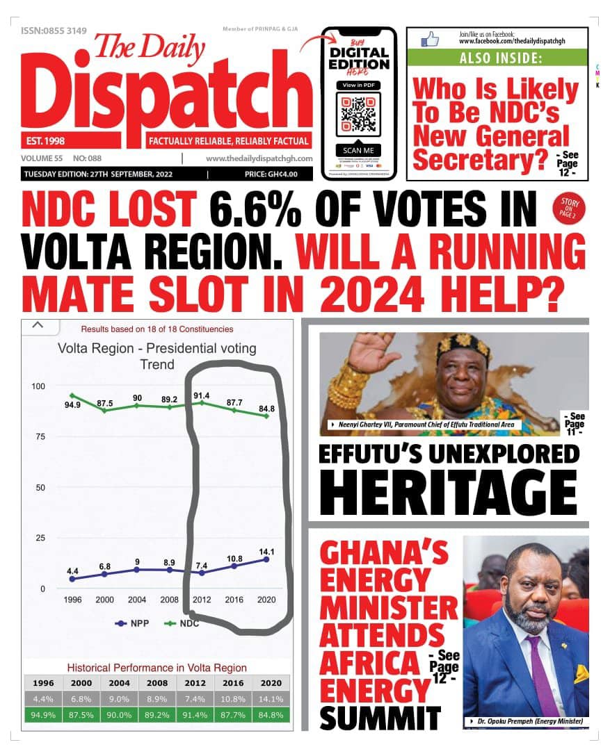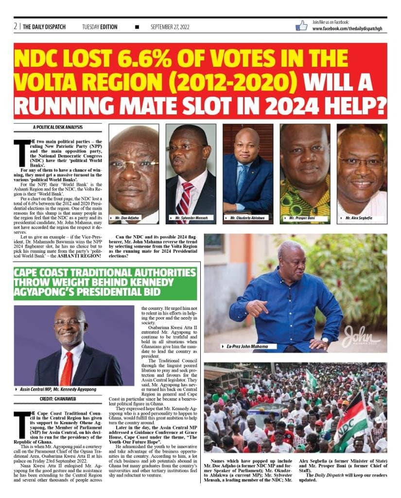 Newspapers headlines: Tuesday, September 27, 2022 Date: 27 September 2022 By Vincent Ashitey Category: general news Shares Share Tweet Email Share Here are the front pages of some of Ghana's newspapers today.