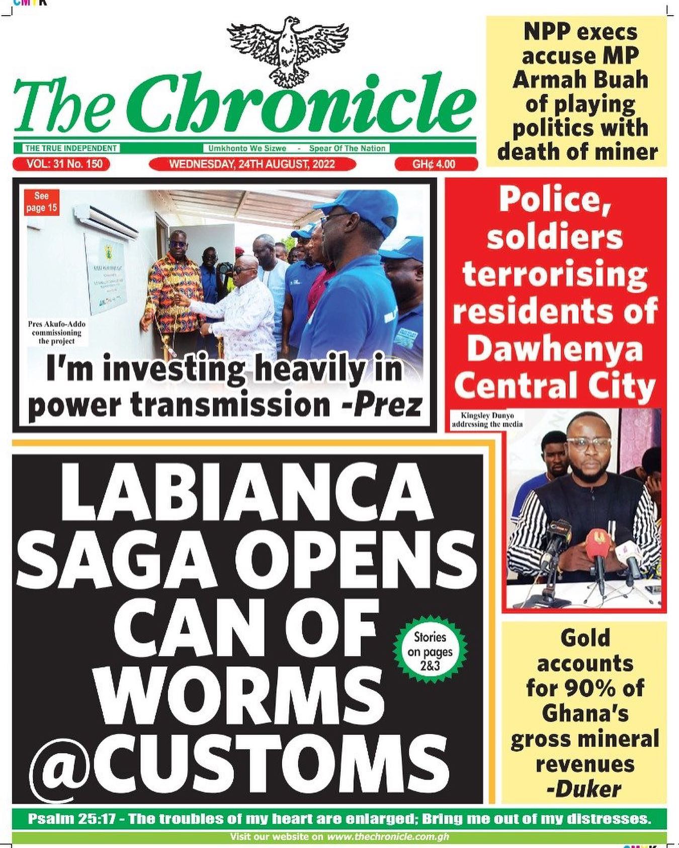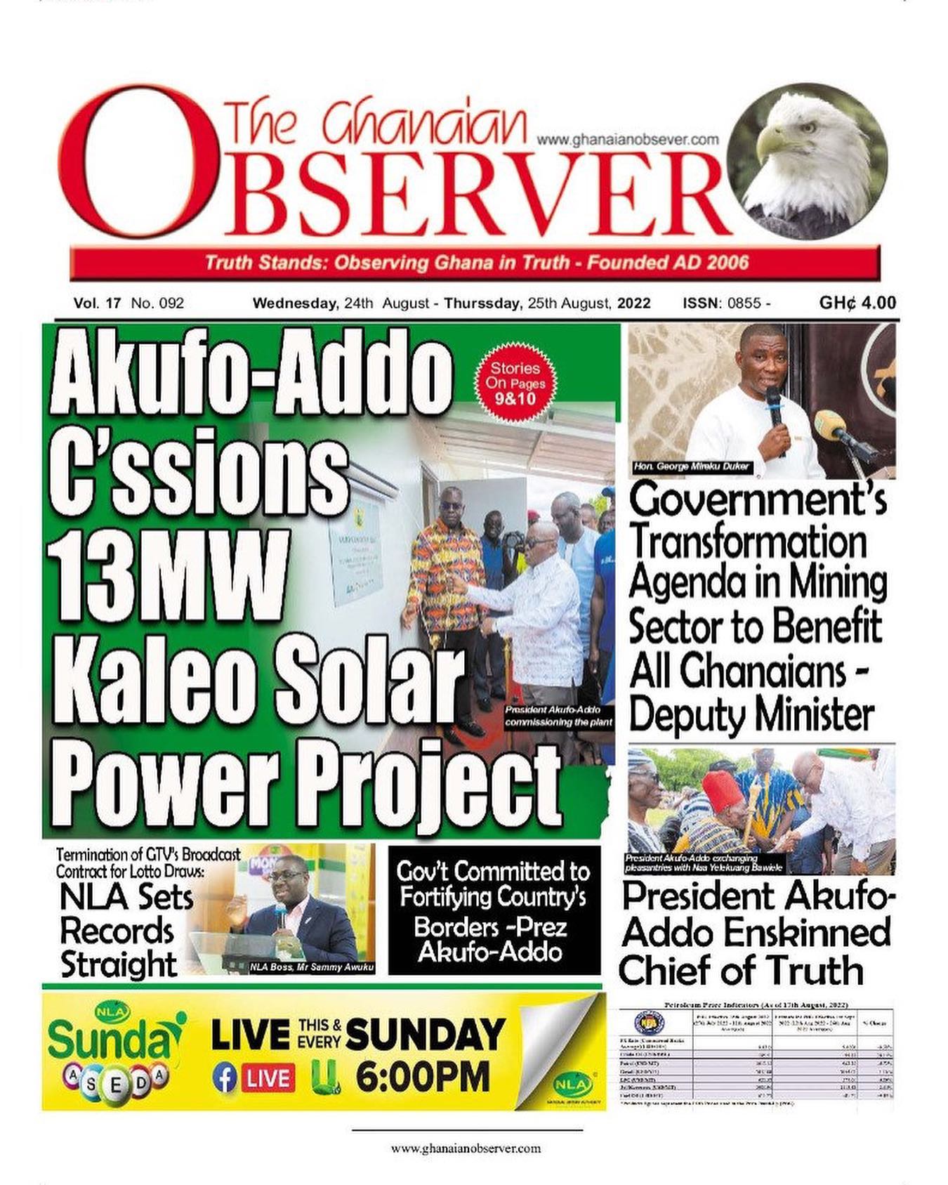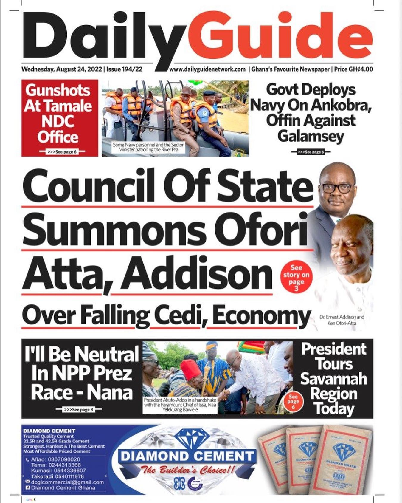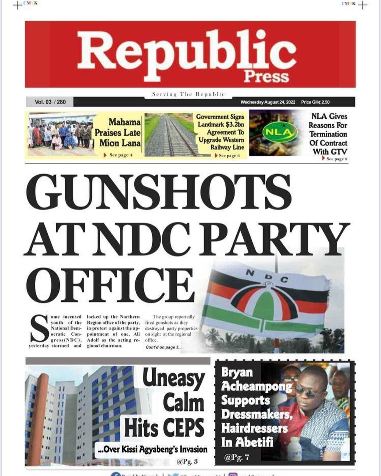 Newspapers headlines: Wednesday, August 24, 2022 Date: 24 August 2022 By Vincent Ashitey Category: general news Shares Share Tweet Email Share Here are the front pages of some of Ghana's newspapers today.