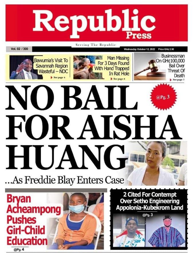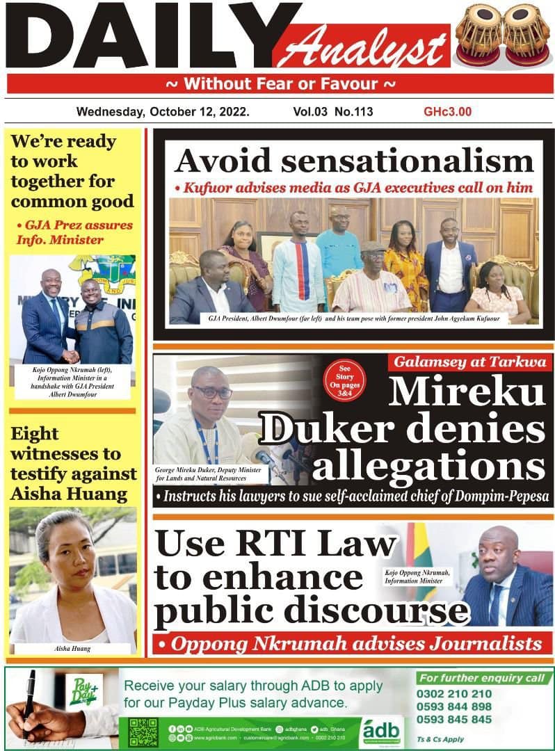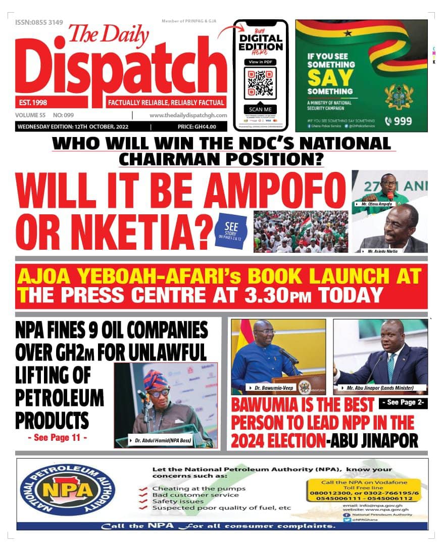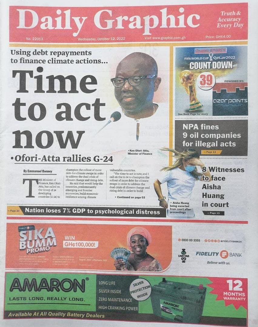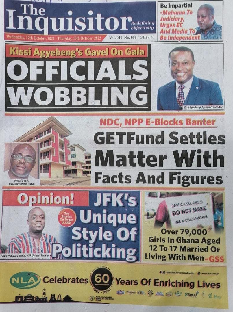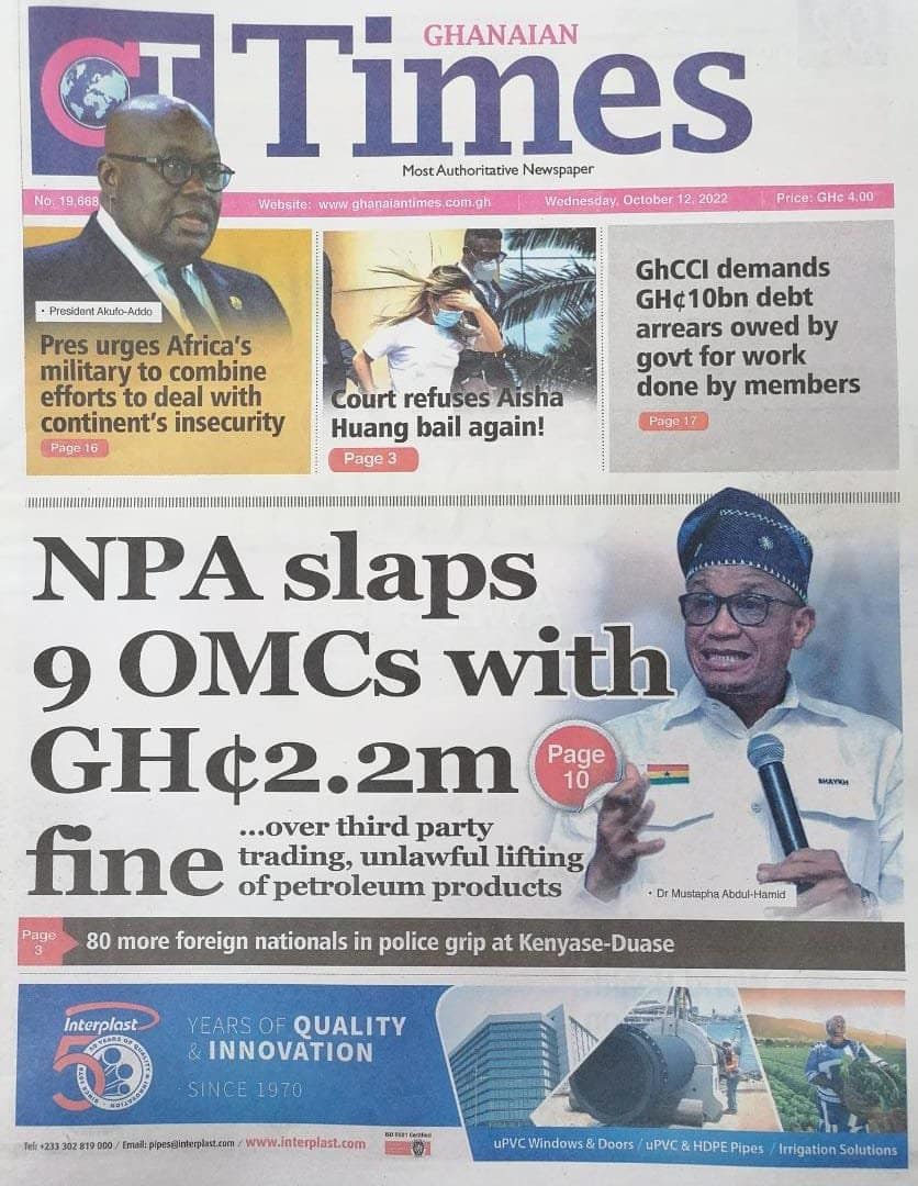 Newspapers headlines: Wednesday, October 12, 2022 Date: 12 October 2022 By Vincent Ashitey Category: general news Shares Share Tweet Email Share Here are the front pages of some of Ghana's newspapers today.