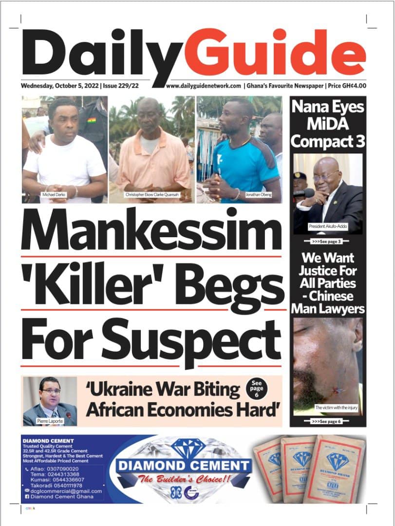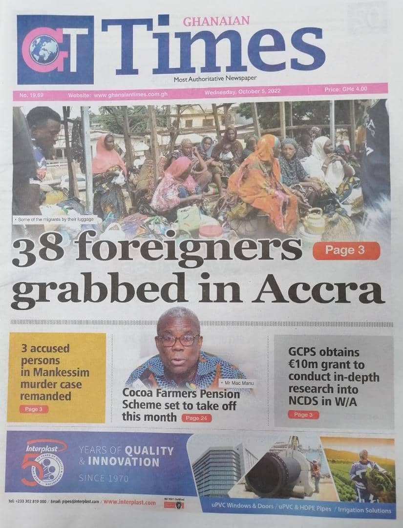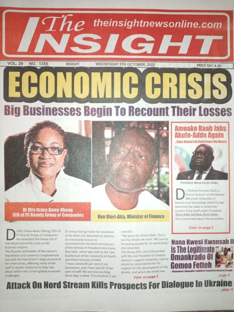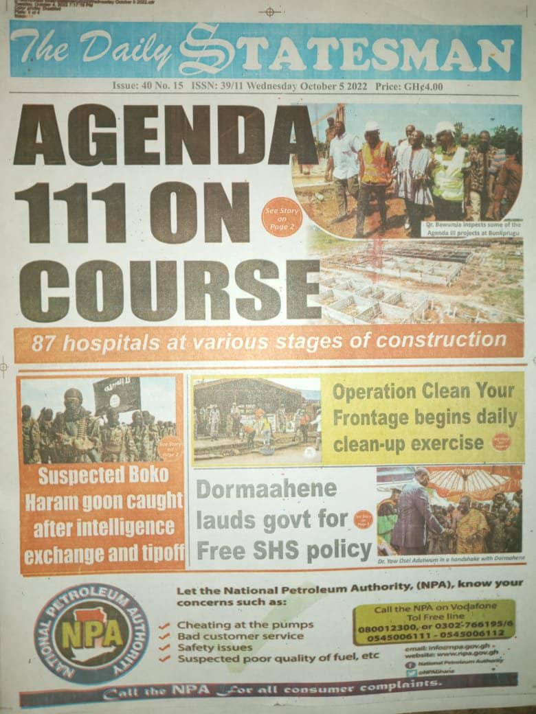Newspapers headlines: Wednesday, October 5, 2022 Date: 05 October 2022 By Vincent Ashitey Category: general news Shares Share Tweet Email Share Here are the front pages of some of Ghana's newspapers today.