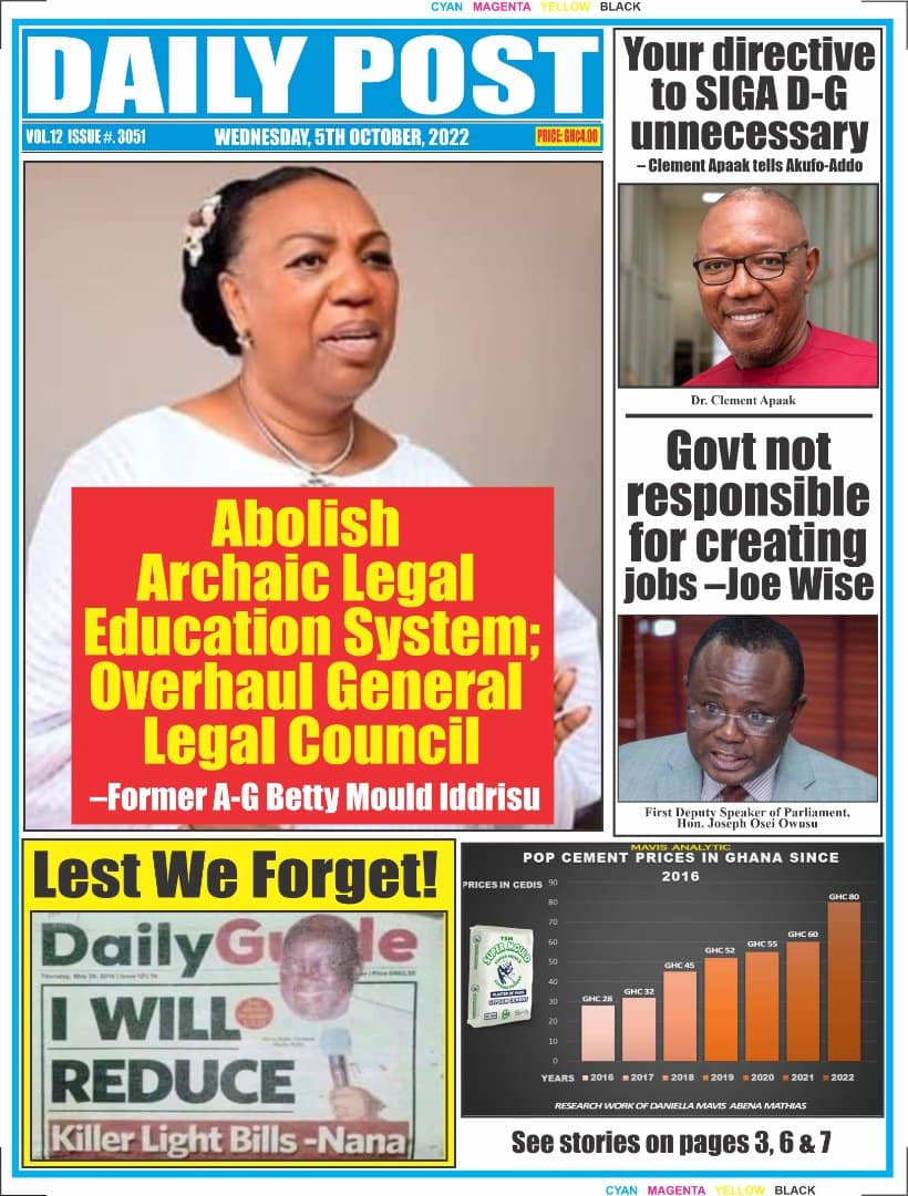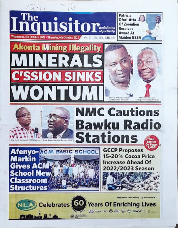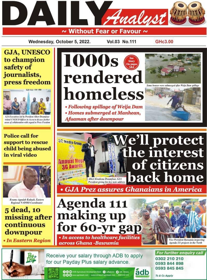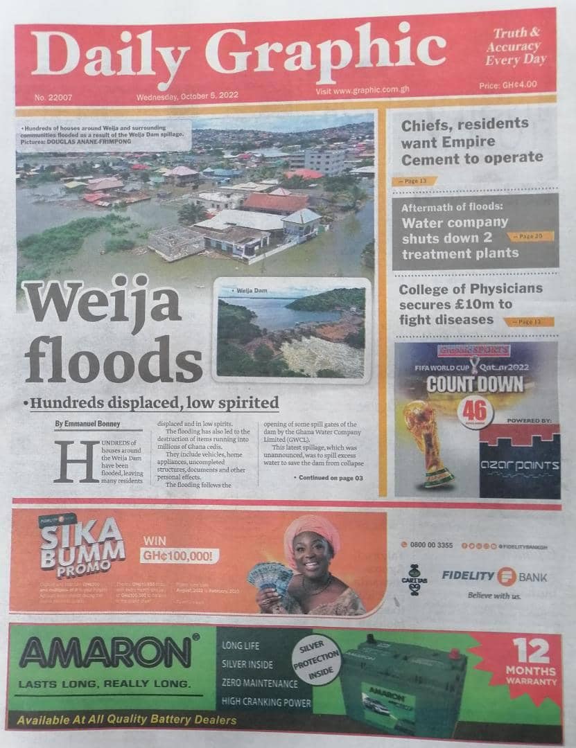 Newspapers headlines: Wednesday, October 5, 2022 Date: 05 October 2022 By Vincent Ashitey Category: general news Shares Share Tweet Email Share Here are the front pages of some of Ghana's newspapers today.