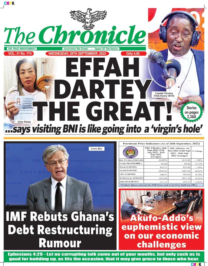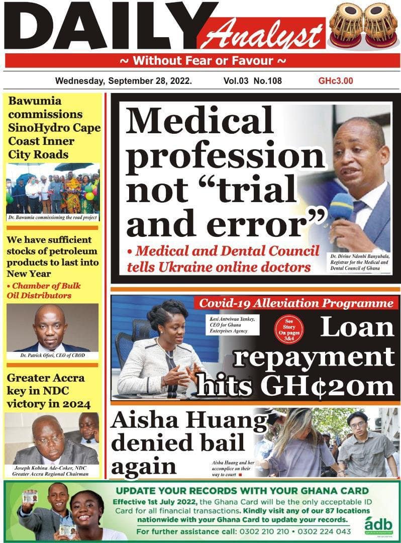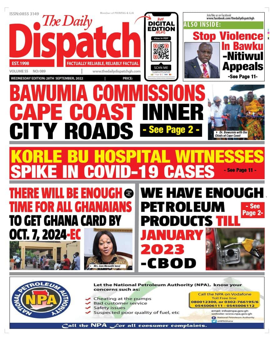 Newspapers headlines: Wednesday, September 28, 2022 Date: 28 September 2022 By Vincent Ashitey Category: general news Shares Share Tweet Email Share Here are the front pages of some of Ghana's newspapers today.