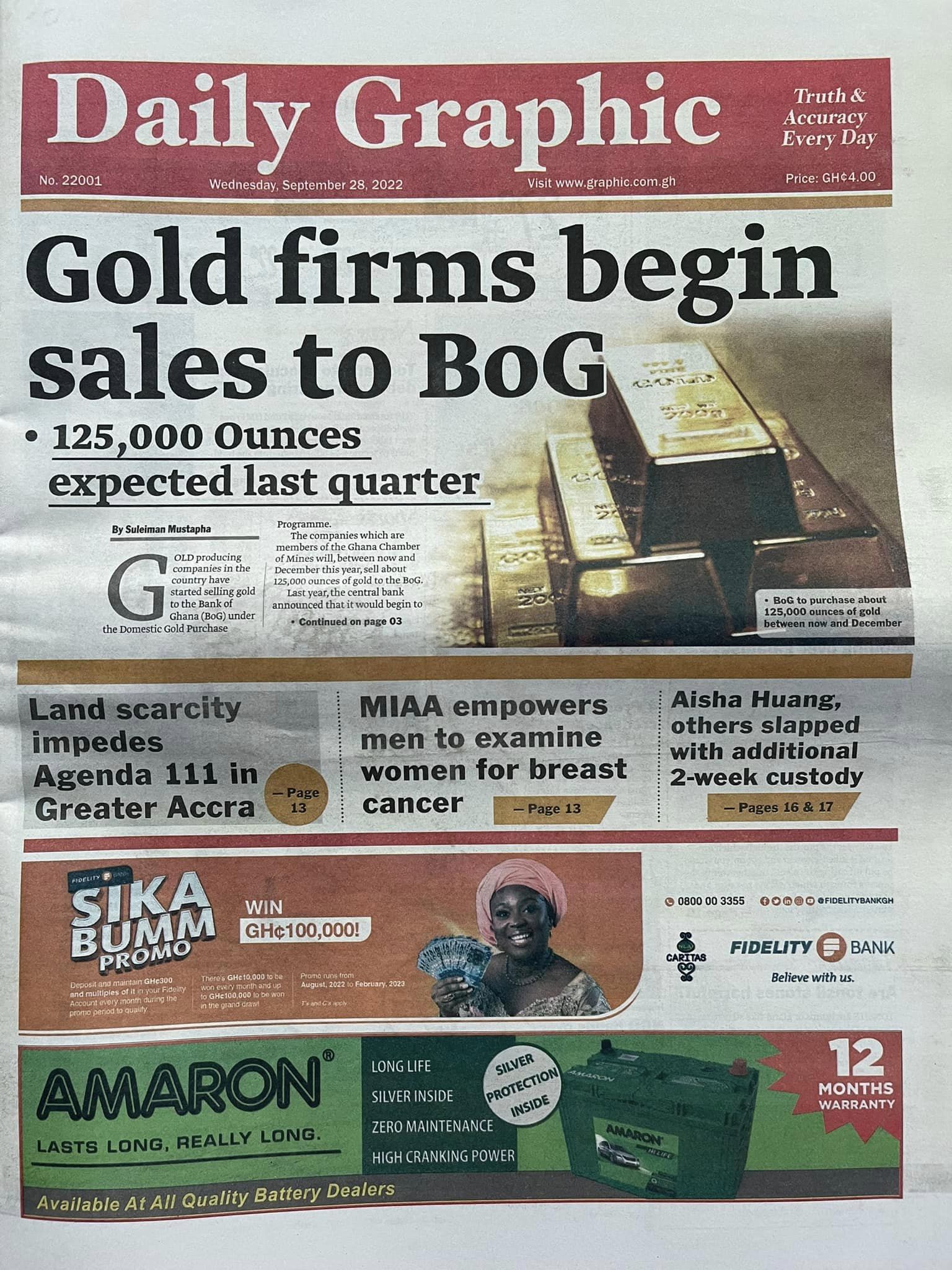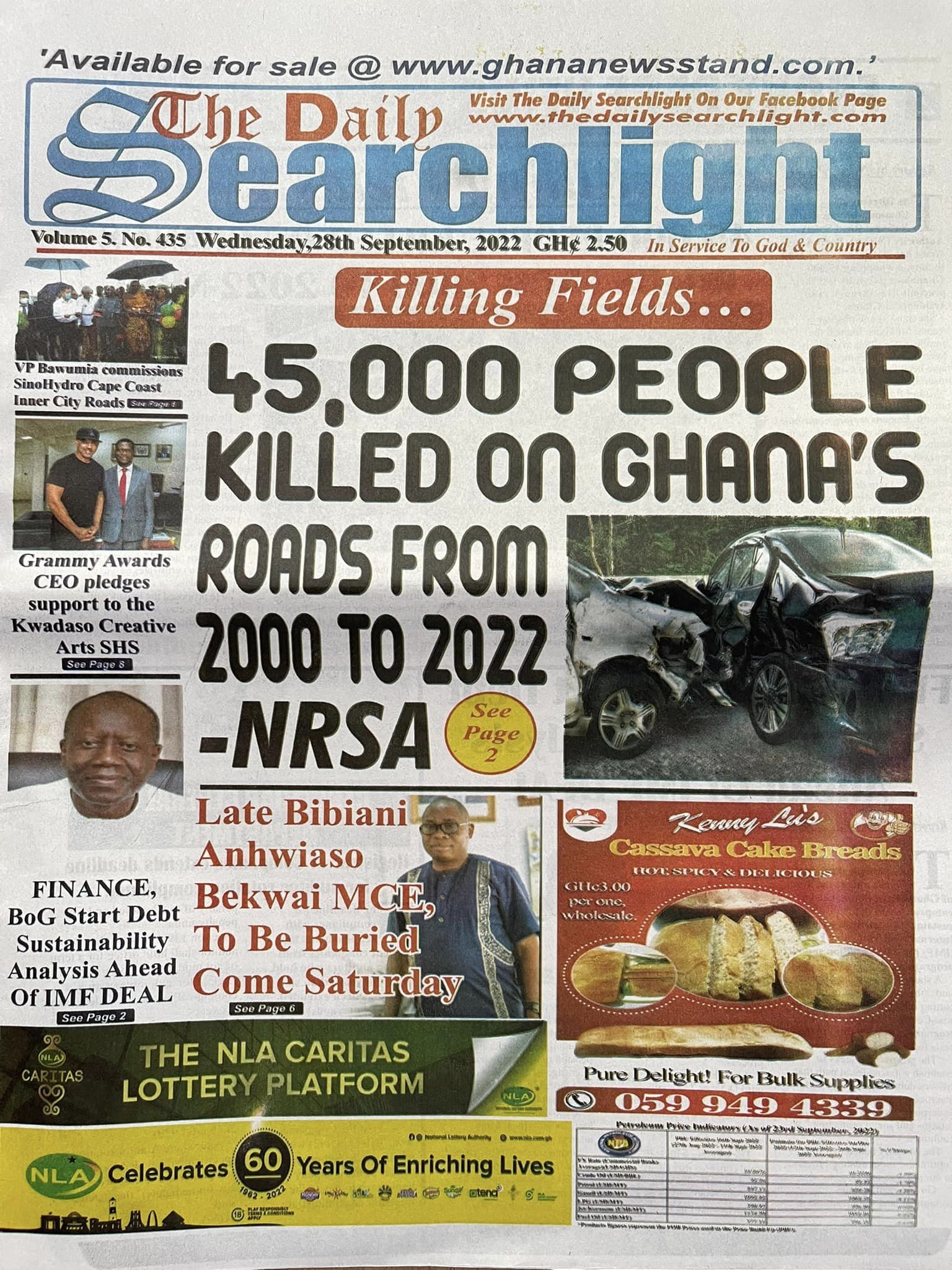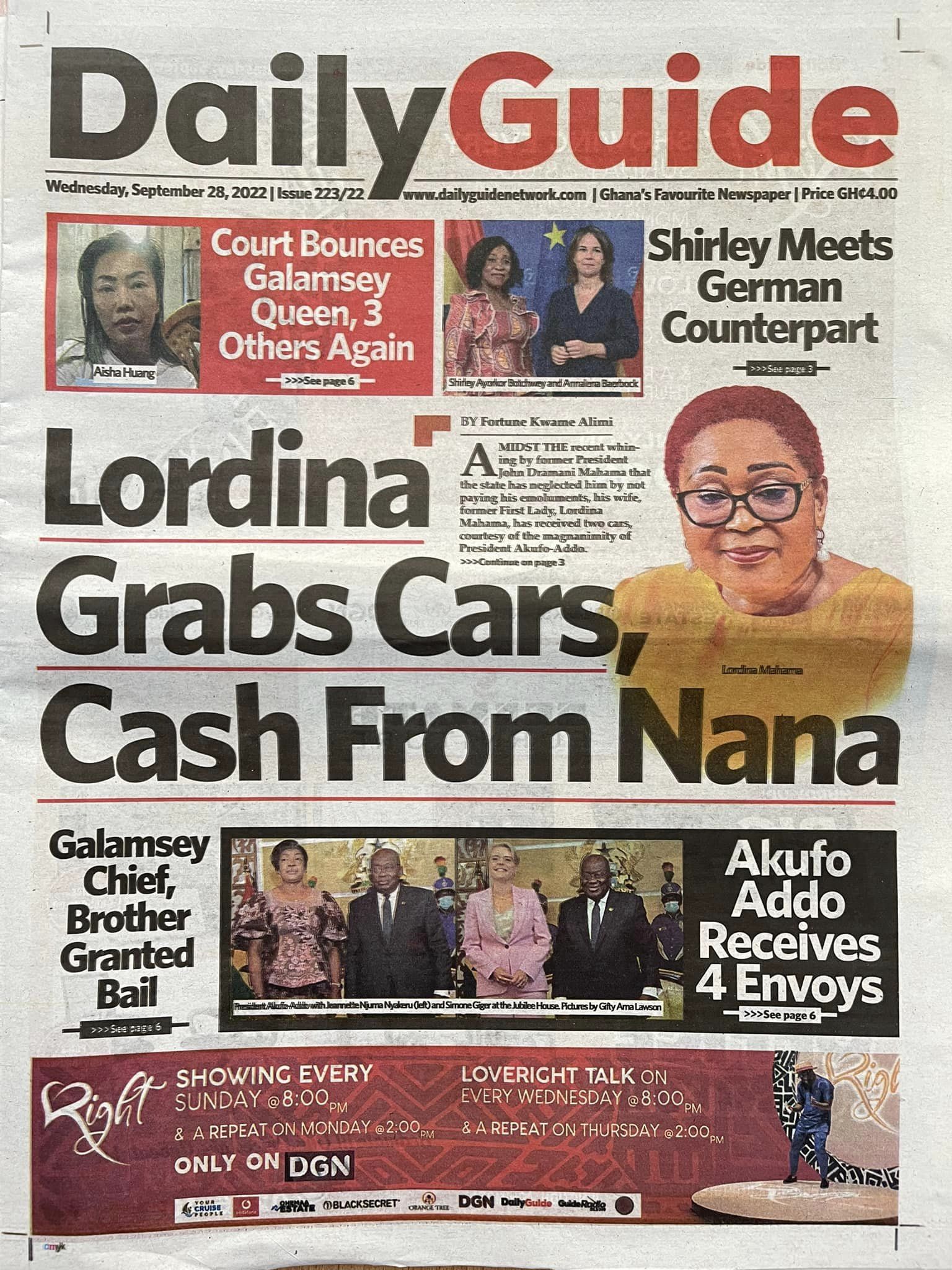 Newspapers headlines: Wednesday, September 28, 2022 Date: 28 September 2022 By Vincent Ashitey Category: general news Shares Share Tweet Email Share Here are the front pages of some of Ghana's newspapers today.