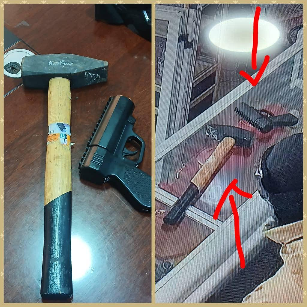These included a hammer, black face mask, toy pistol, gold detector, gold weighing scale, diamond detector, backpack, hand gloves, helmet, and two motorbikes.