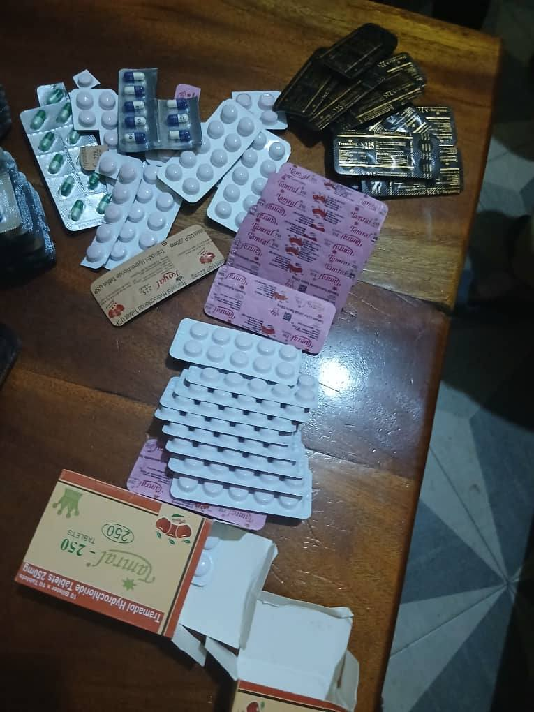 Items retrieved include quantities of tramadol, wrappers of dried leaves and seeds suspected to be Indian hemp, a small crusher, six pairs of scissors, a green tricycle popularly known asĀ pragya, two boxes of matches and a box of cigarettes.