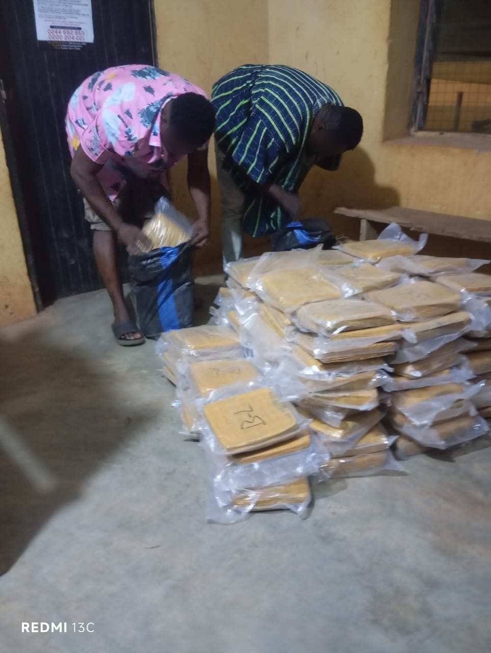 On April 3, 2026, a police patrol team intercepted a taxi, a Toyota Corolla, at Eremon in the Lawra District, leading to the discovery of 140 compressed slabs of the suspected substance.
