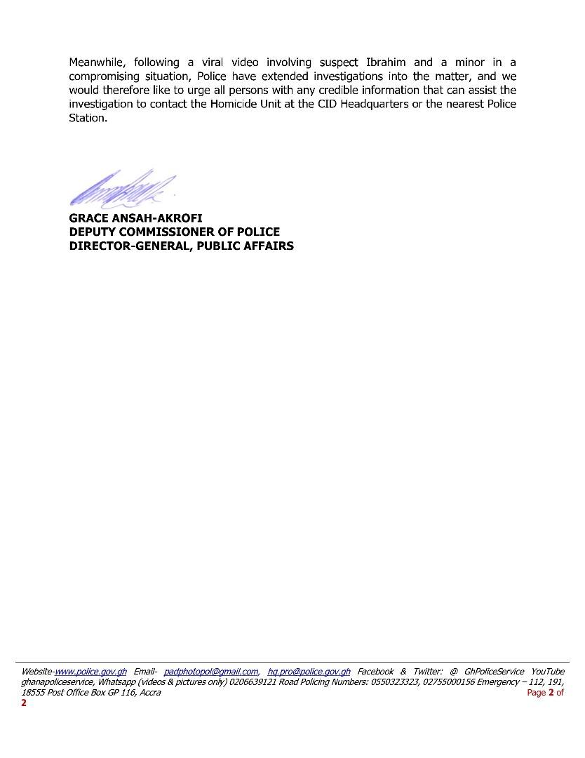 The case was subsequently taken over by the Homicide Unit at the CID Headquarters, where suspect Anyass Ibrahim was invited for questioning. He was interrogated, his statement taken, and was later granted bail while investigations continue.