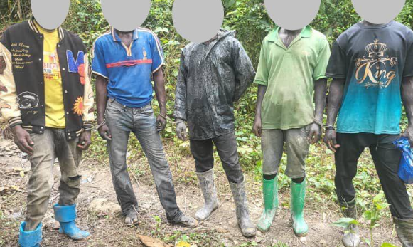 The Western North Regional Police Command has arrested six individuals engaging in illegal mining activities at Sefwi Mrewa in the Bibiani-Anhwiaso-Bekwai Municipality of the Western North Region.
