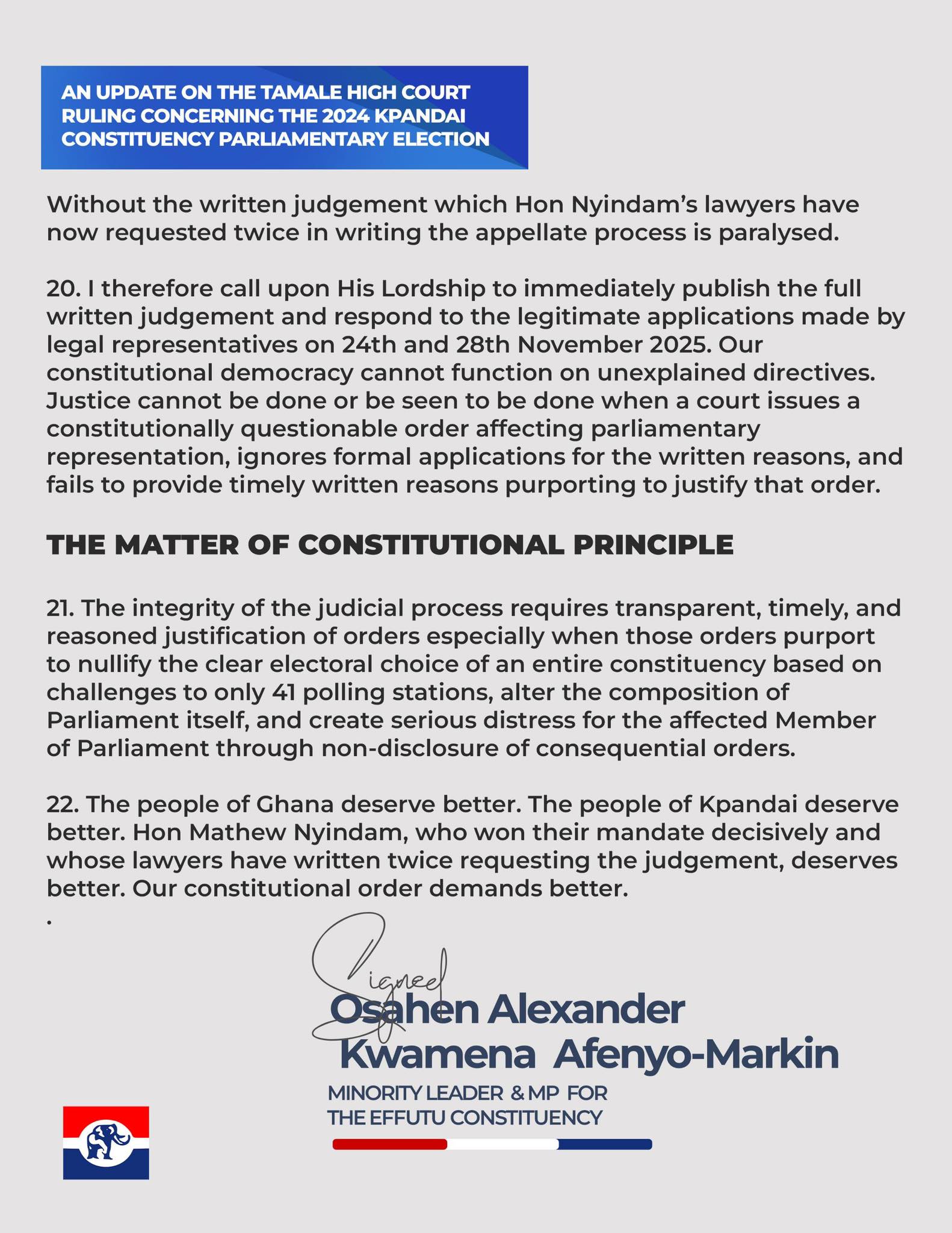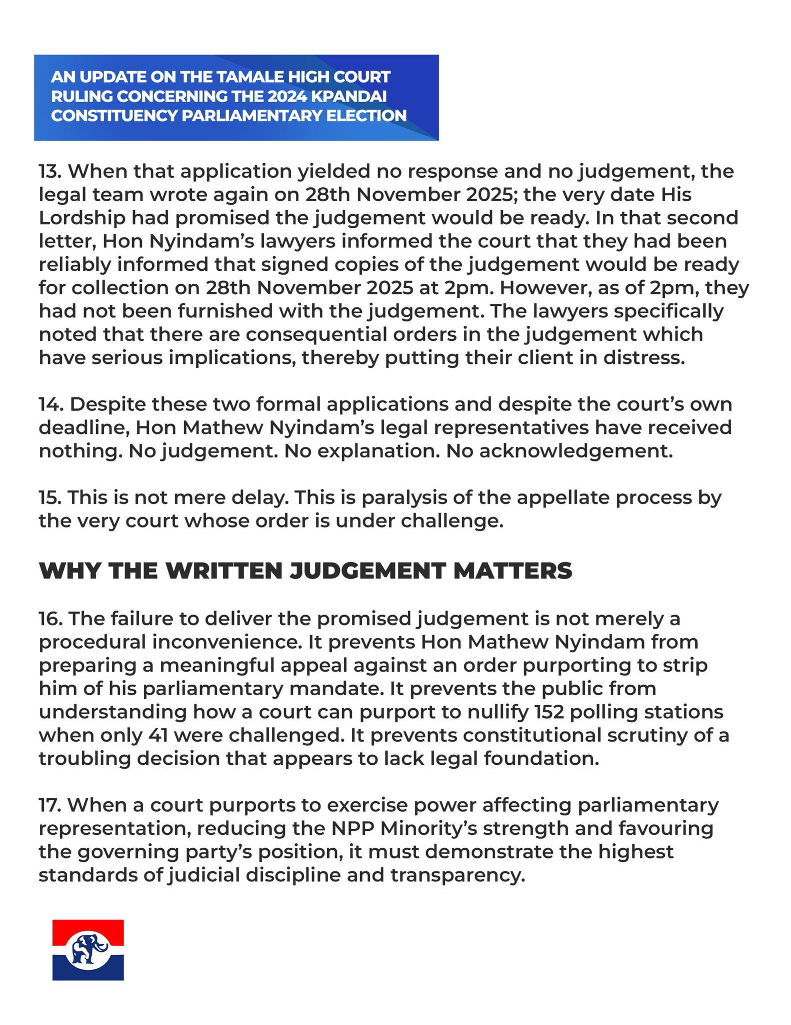He added that the people of Kpandai deserve clarity and that Hon Nyindam cannot be expected to challenge the ruling without access to the judge’s reasoning.