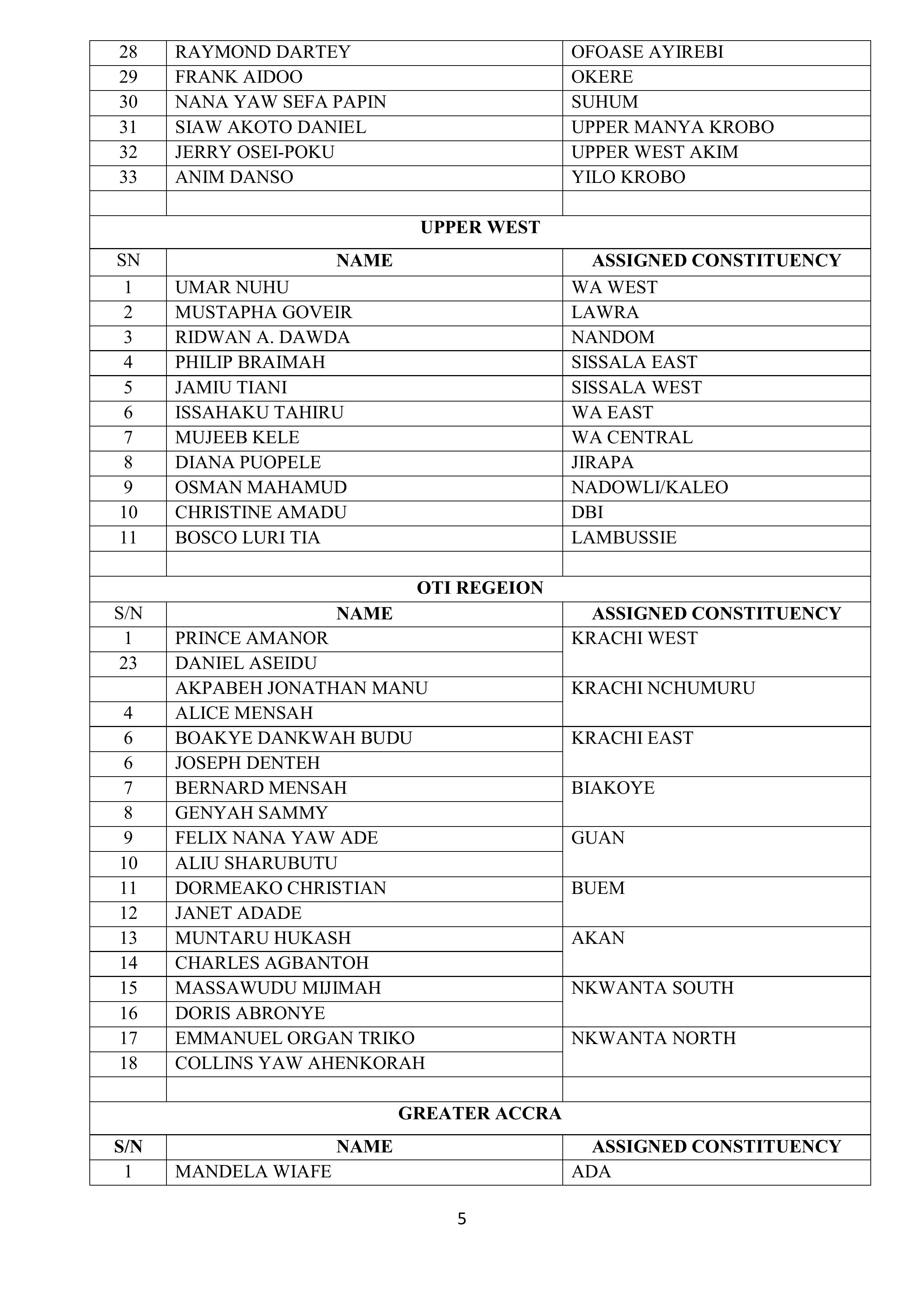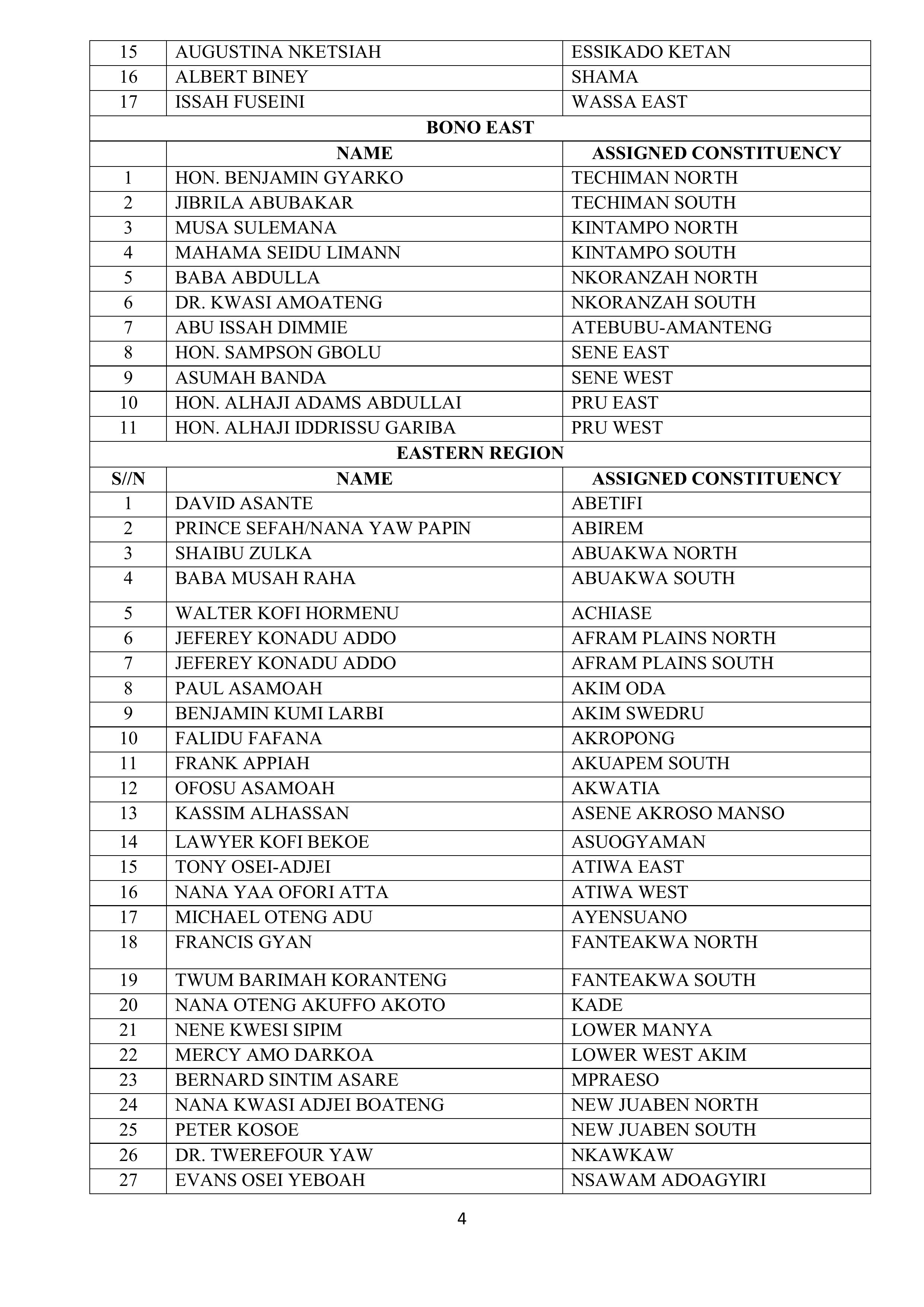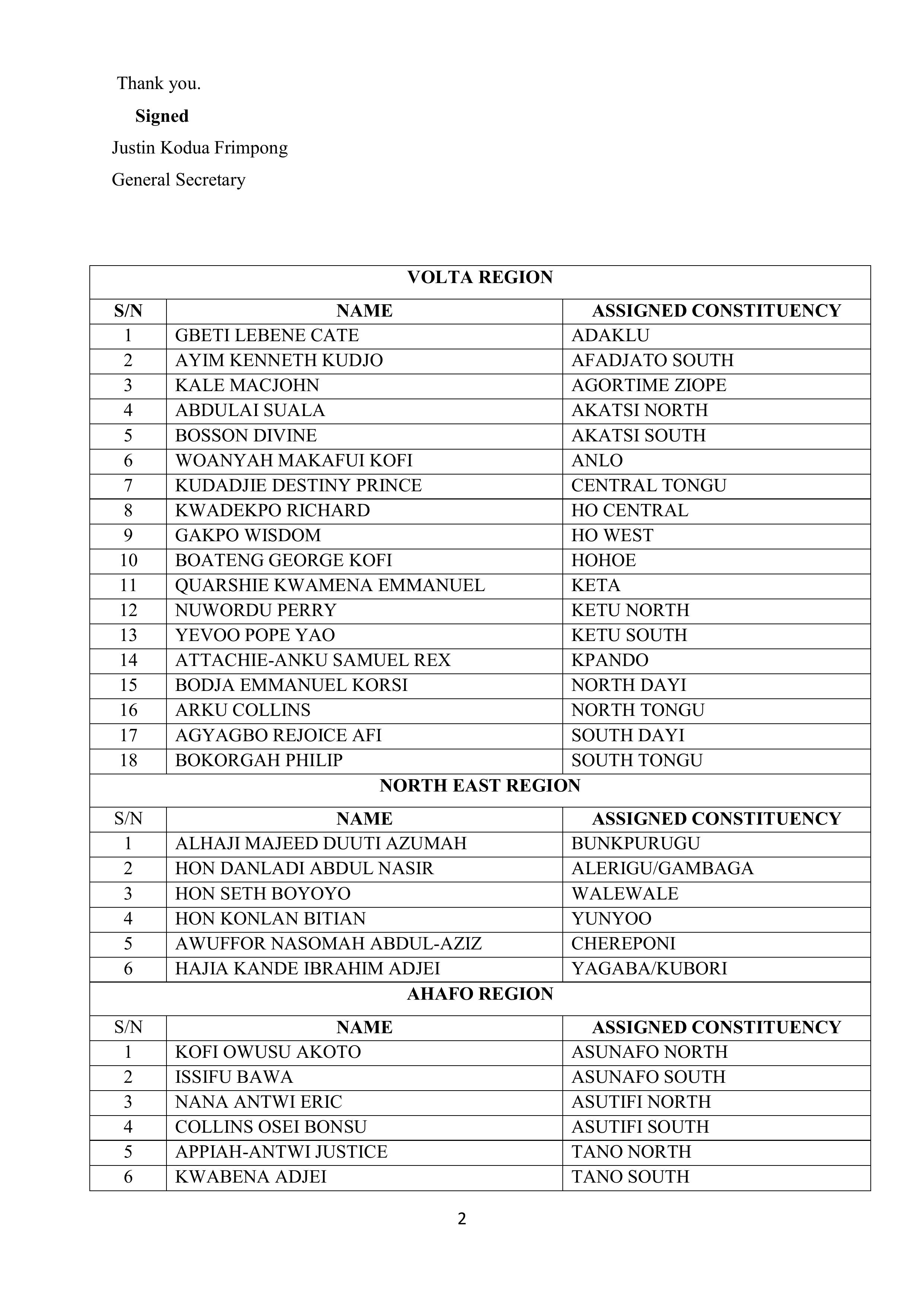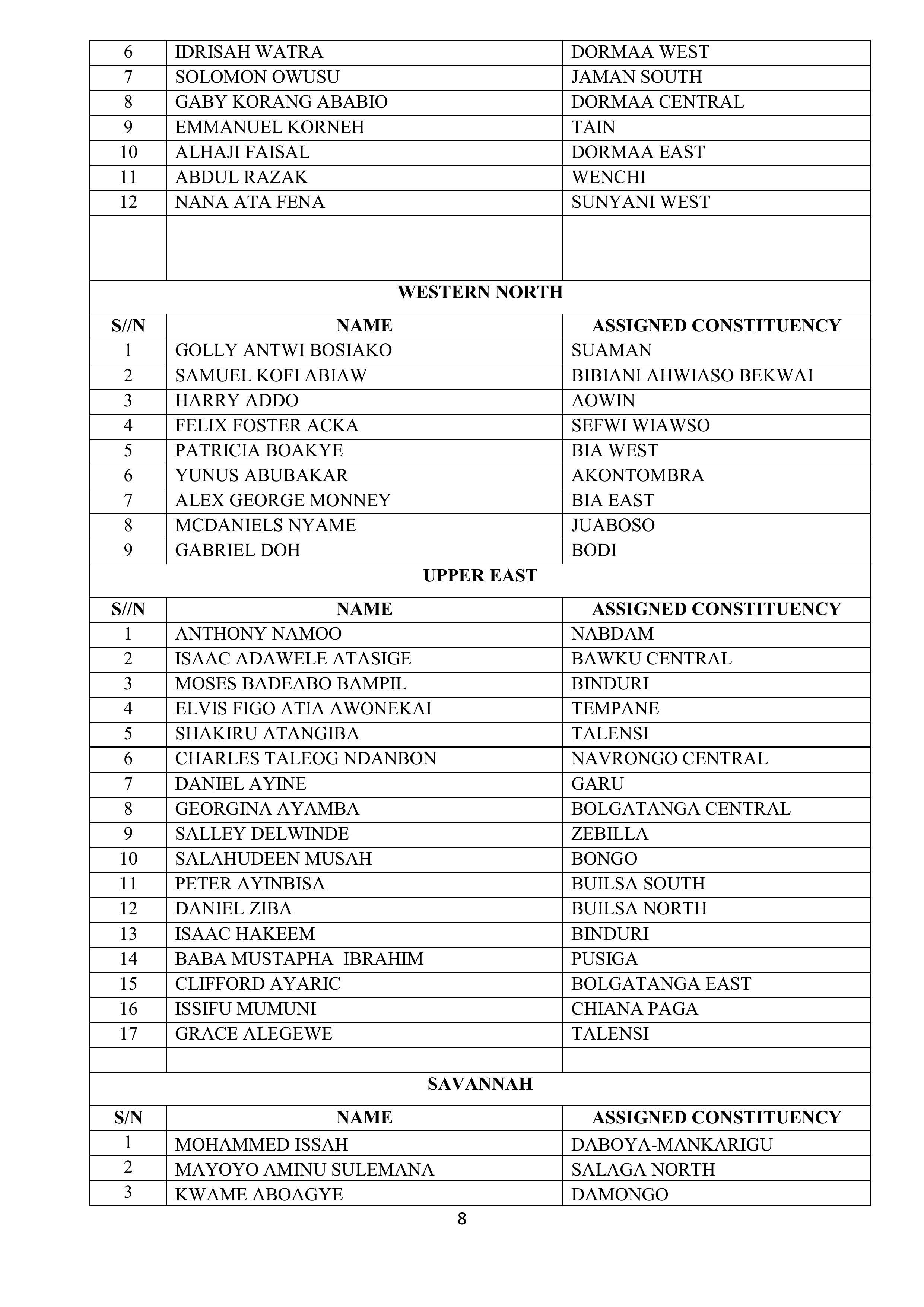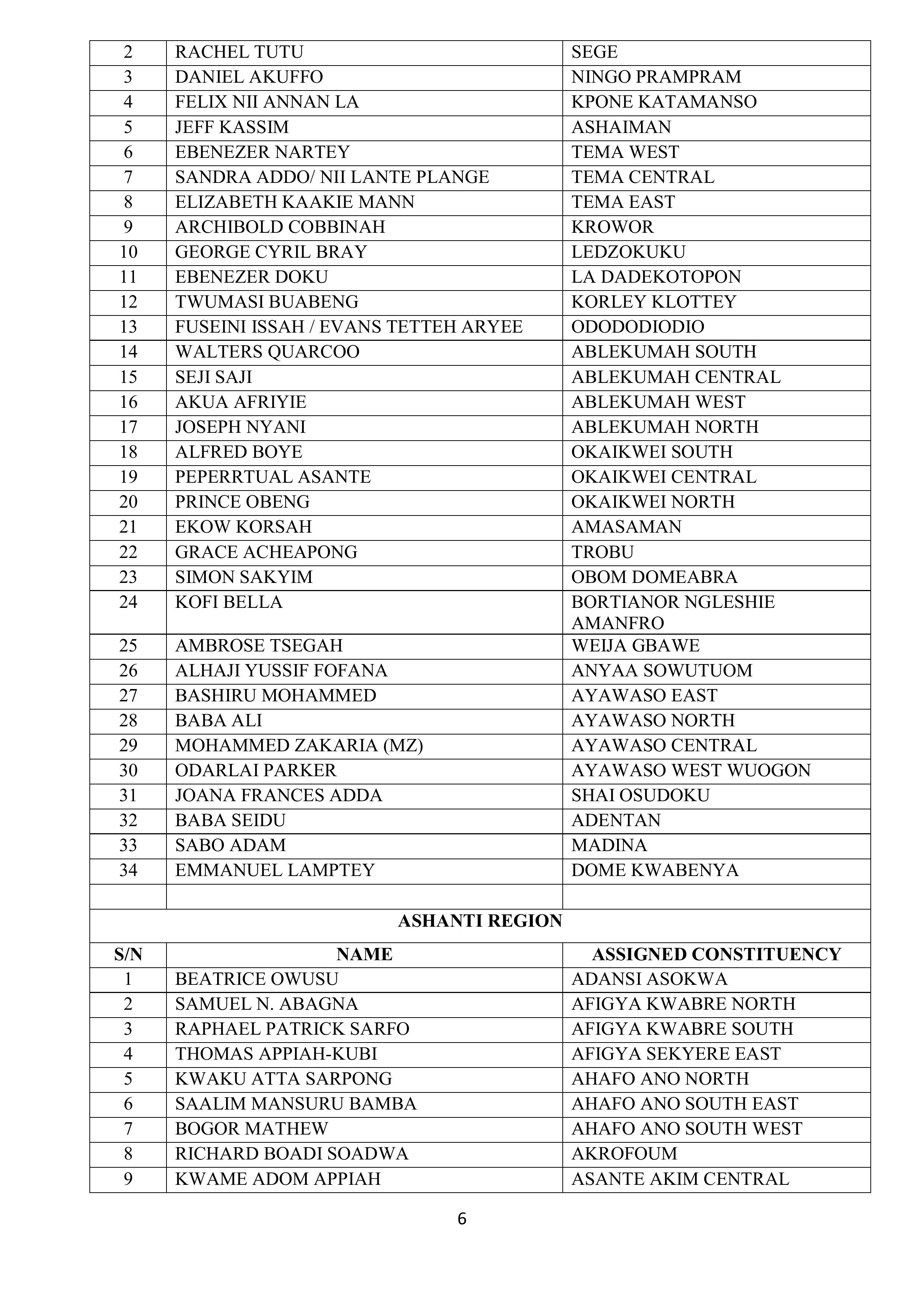 According to the Secretariat, each constituency executive committee has been formally notified of the Regional Representative assigned to its area. These representatives will work closely with constituency executives to facilitate a smooth electoral process.